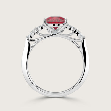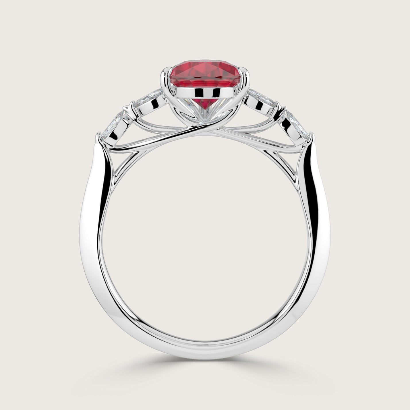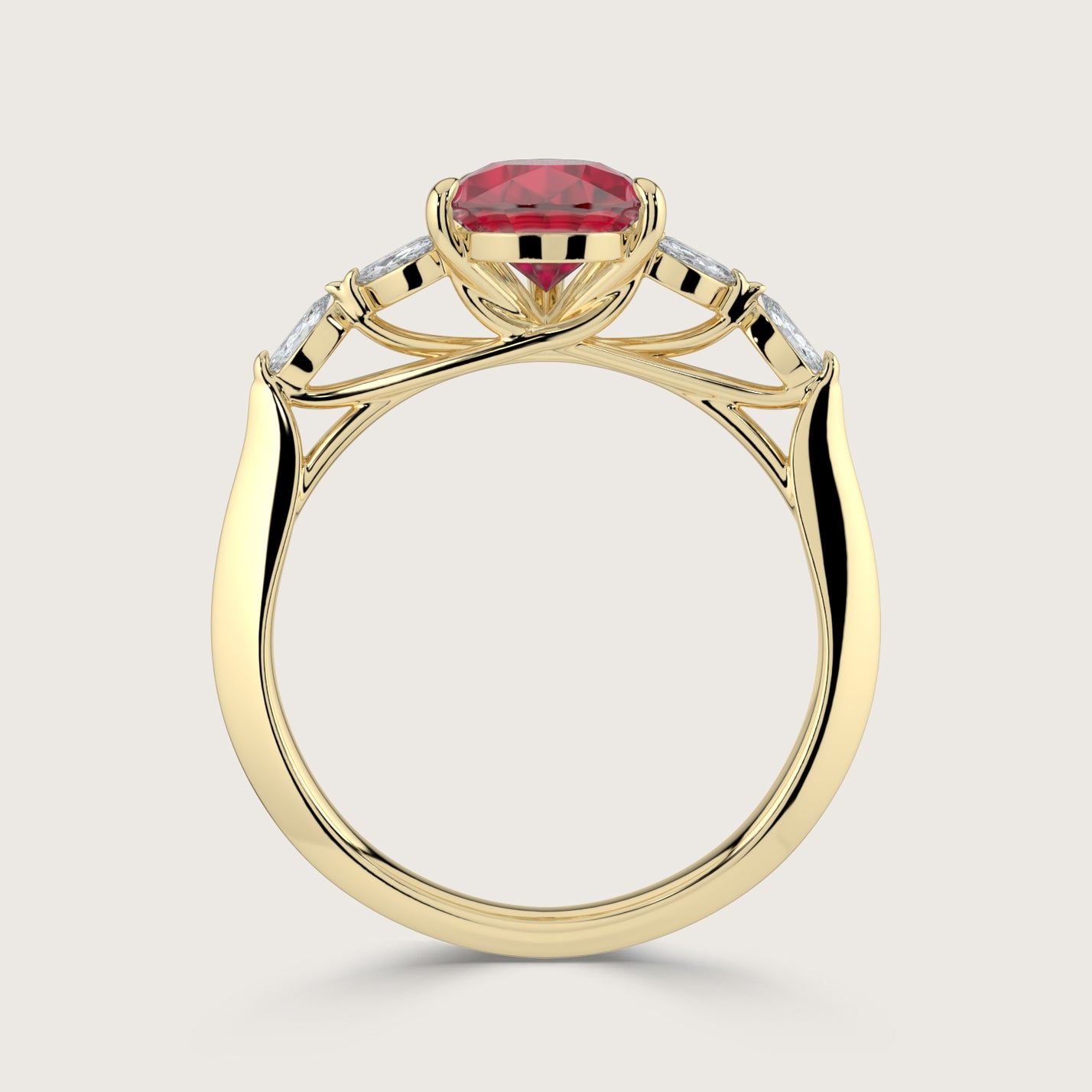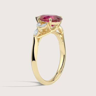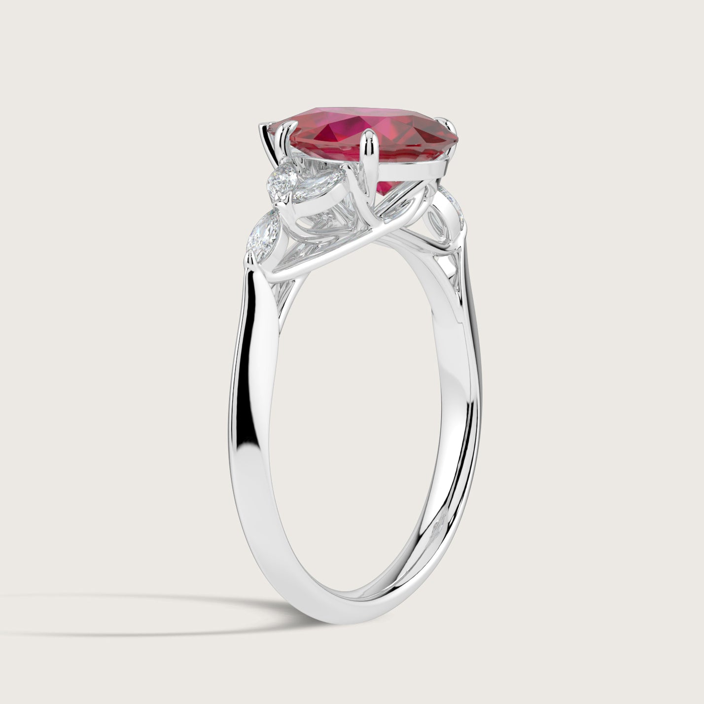 Blossom, Pear Cut Ruby Ring with Marquise Diamond Accents