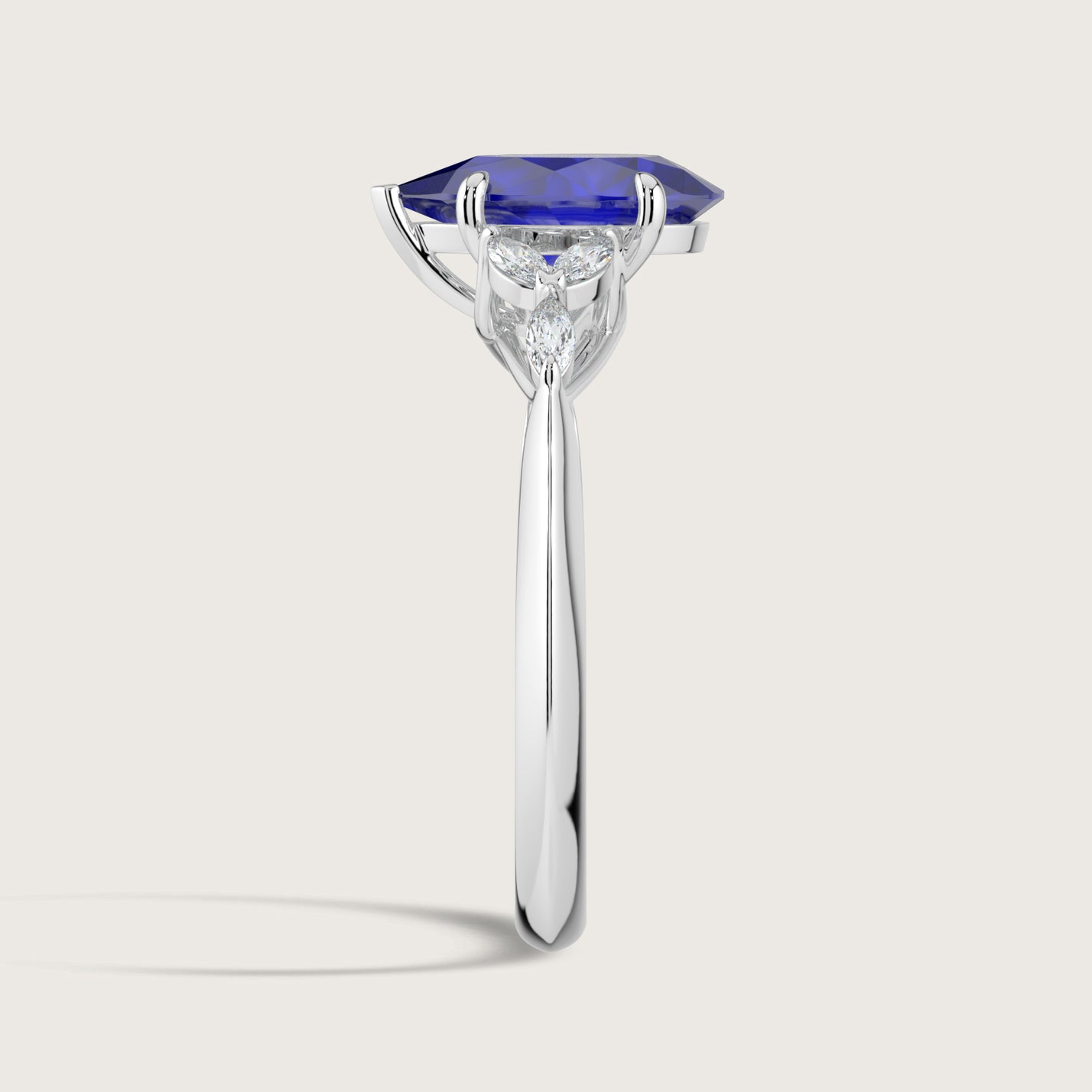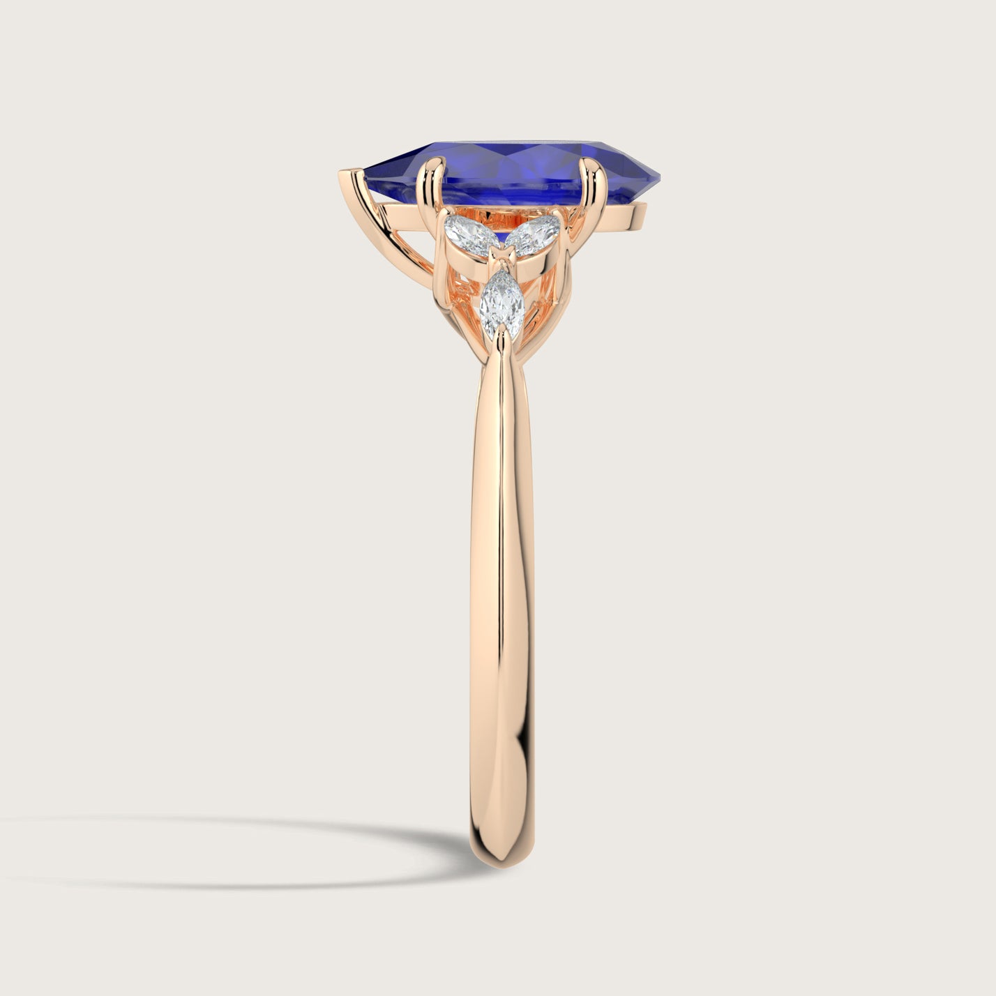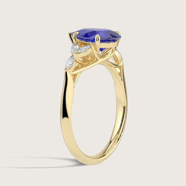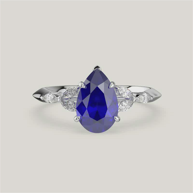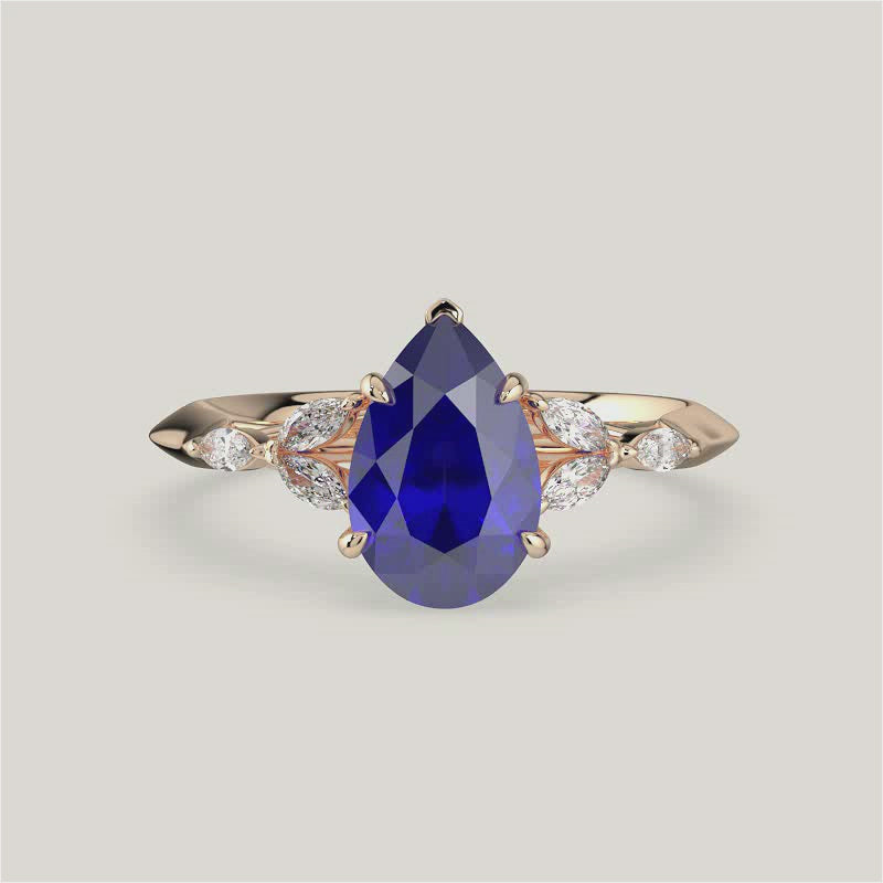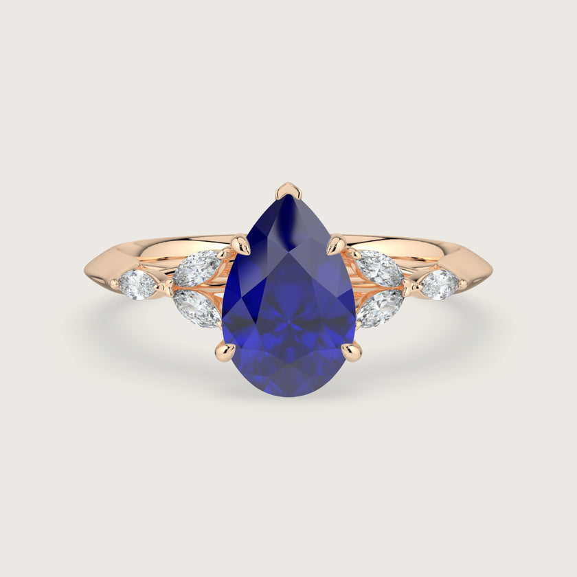 Blossom, Pear Cut Sapphire Ring with Marquise Diamond Accents