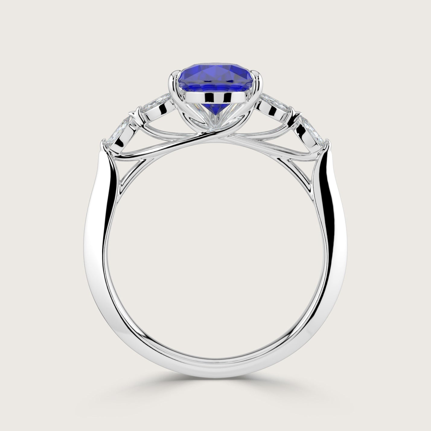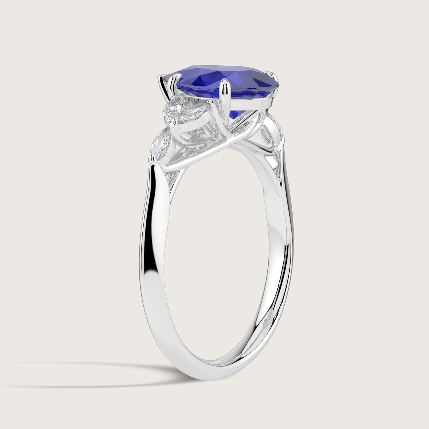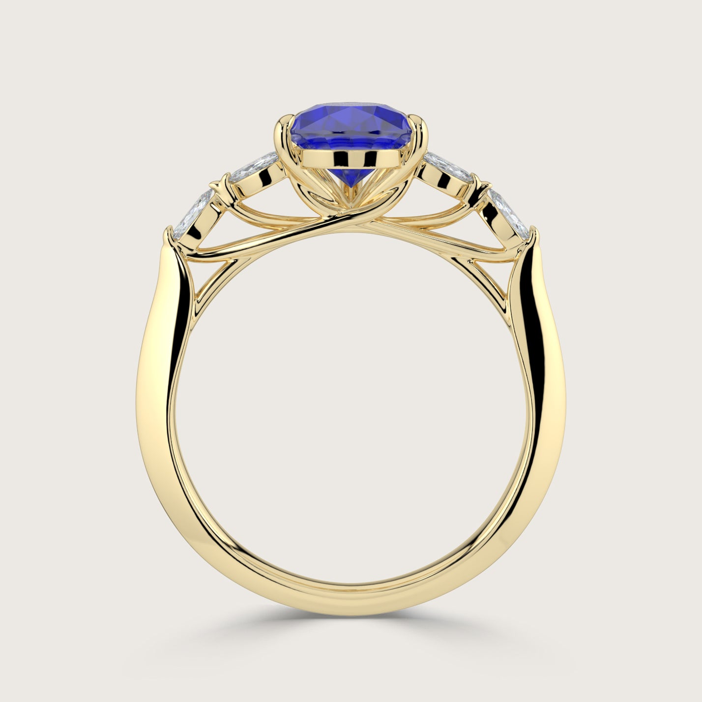 Blossom, Pear Cut Sapphire Ring with Marquise Diamond Accents
