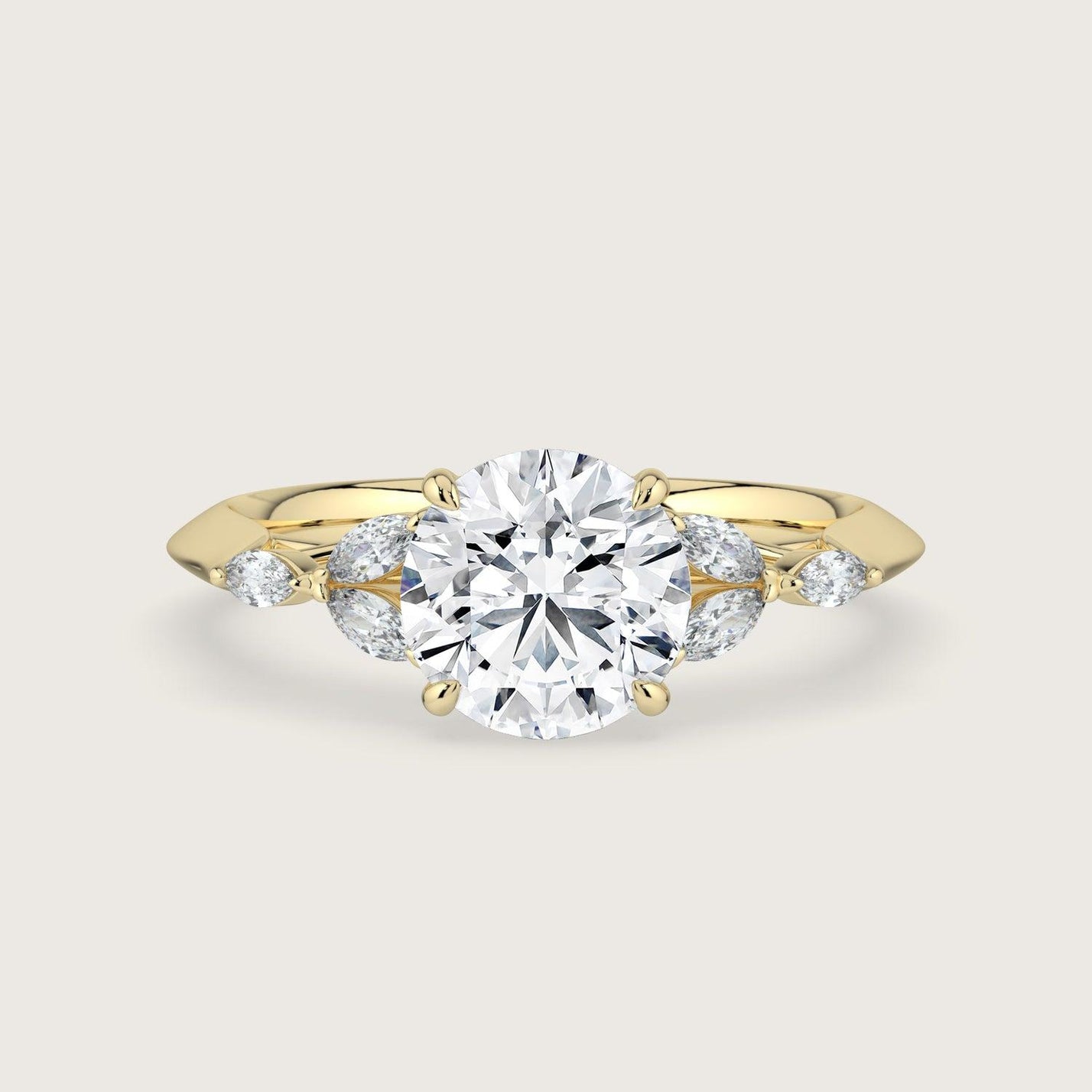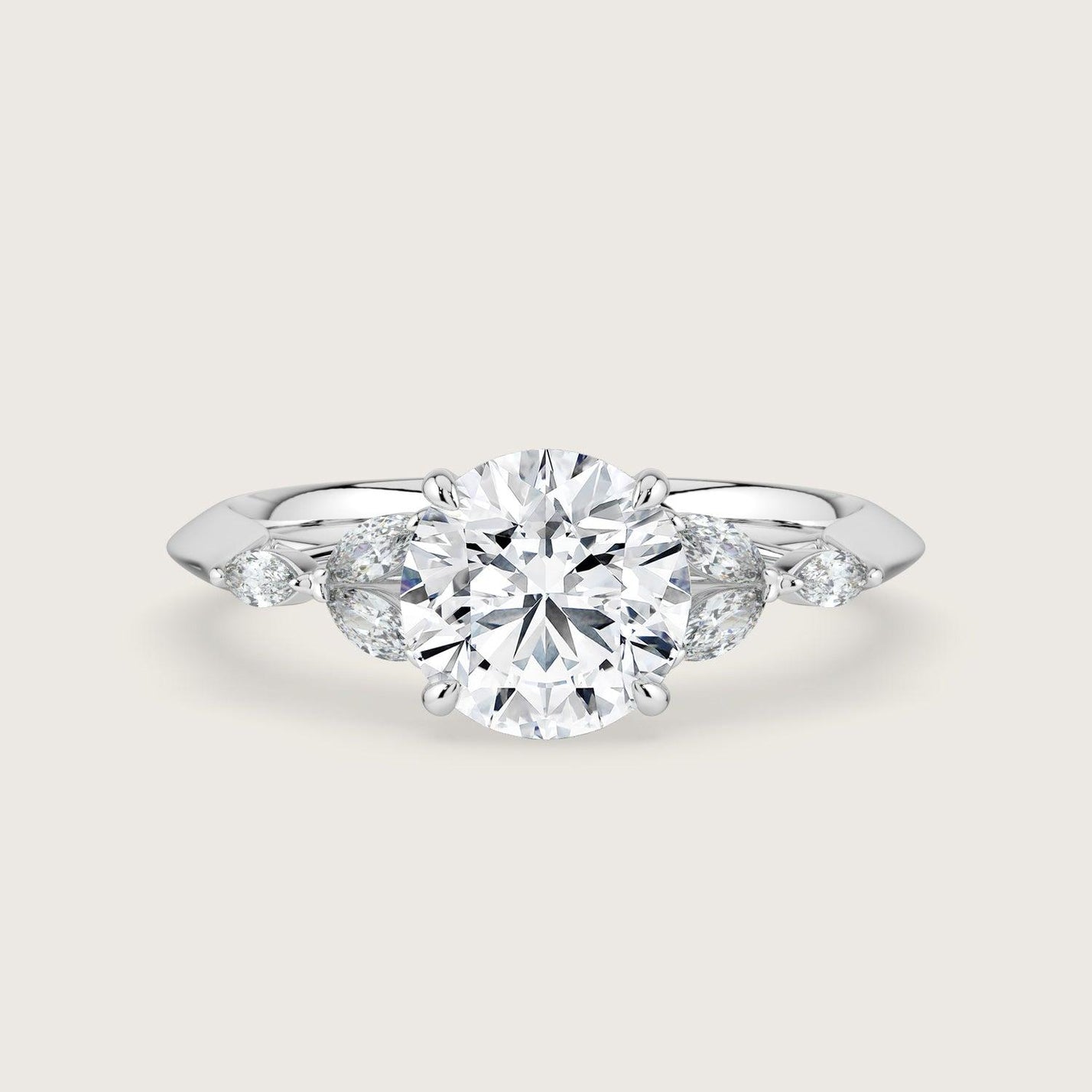 Blossom, Round Brilliant Diamond Ring with Marquise Diamond Accents