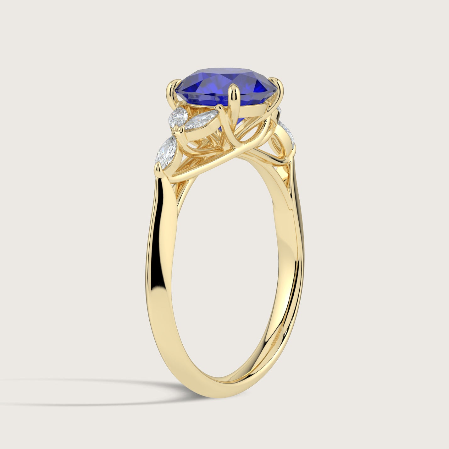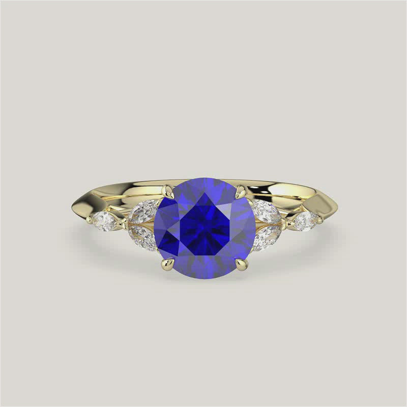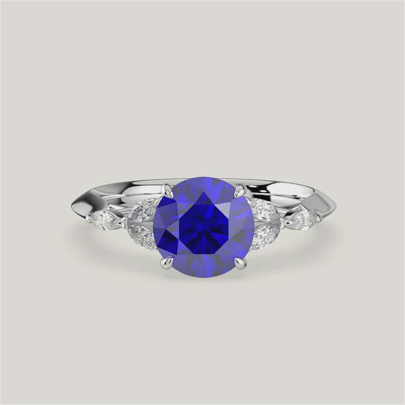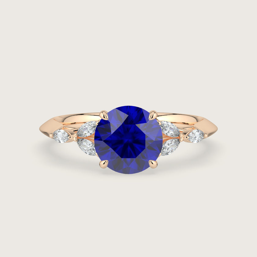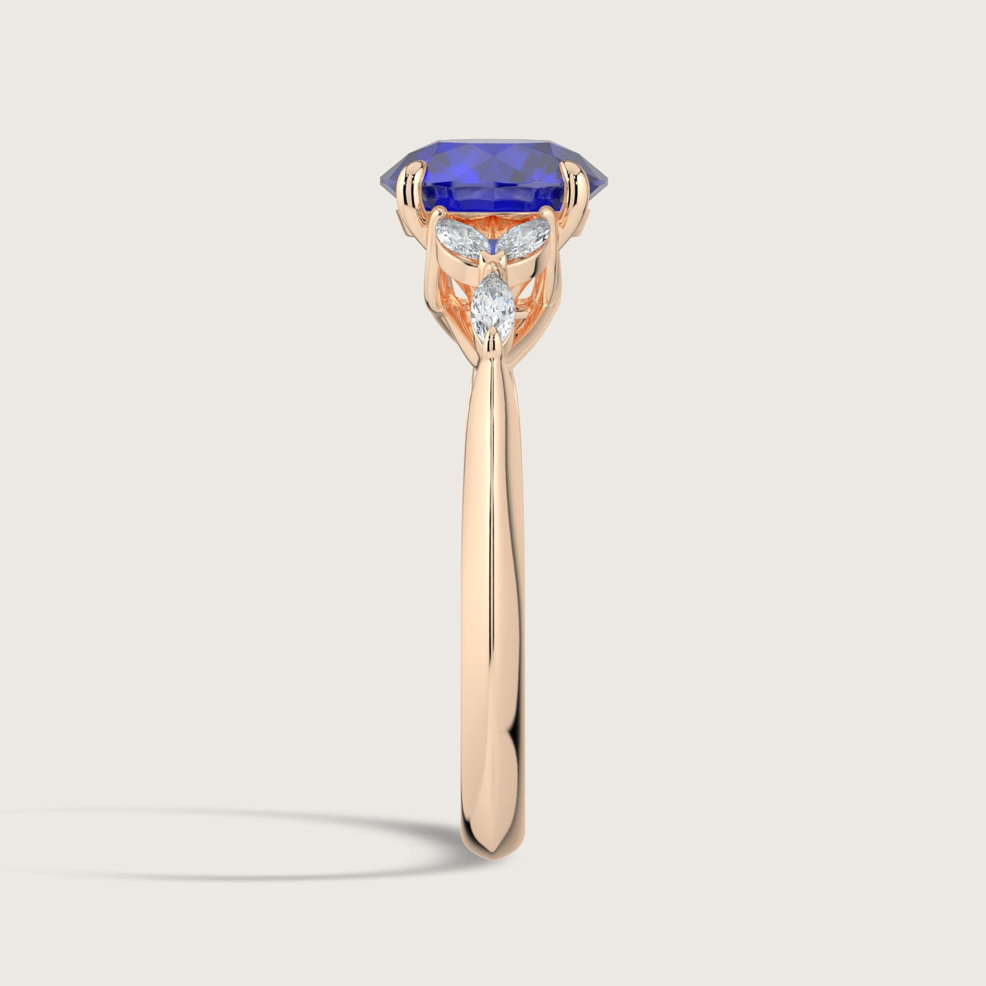 Blossom, Round Brilliant Sapphire Ring with Marquise Diamond Accents