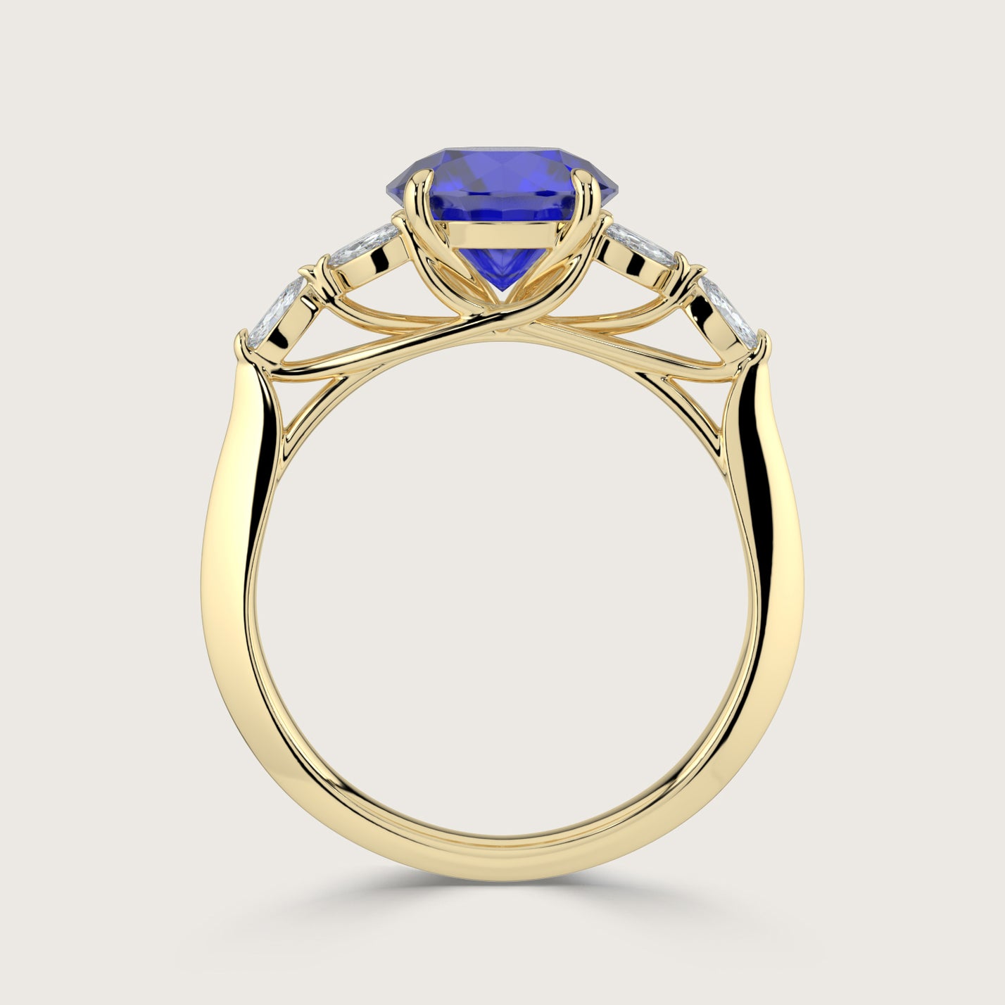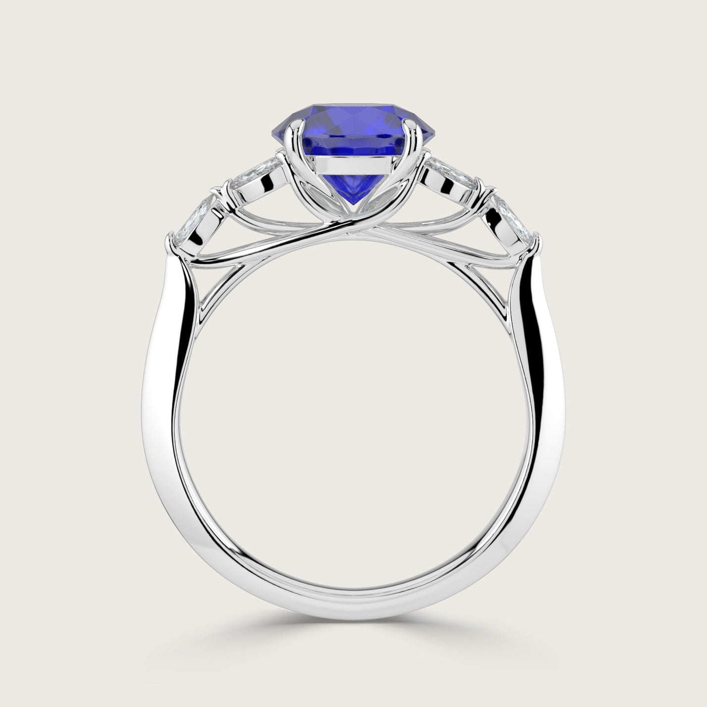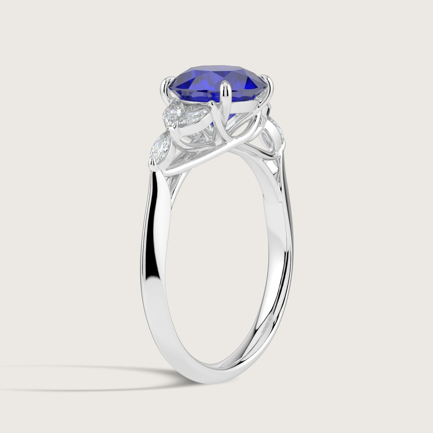 Blossom, Round Brilliant Sapphire Ring with Marquise Diamond Accents