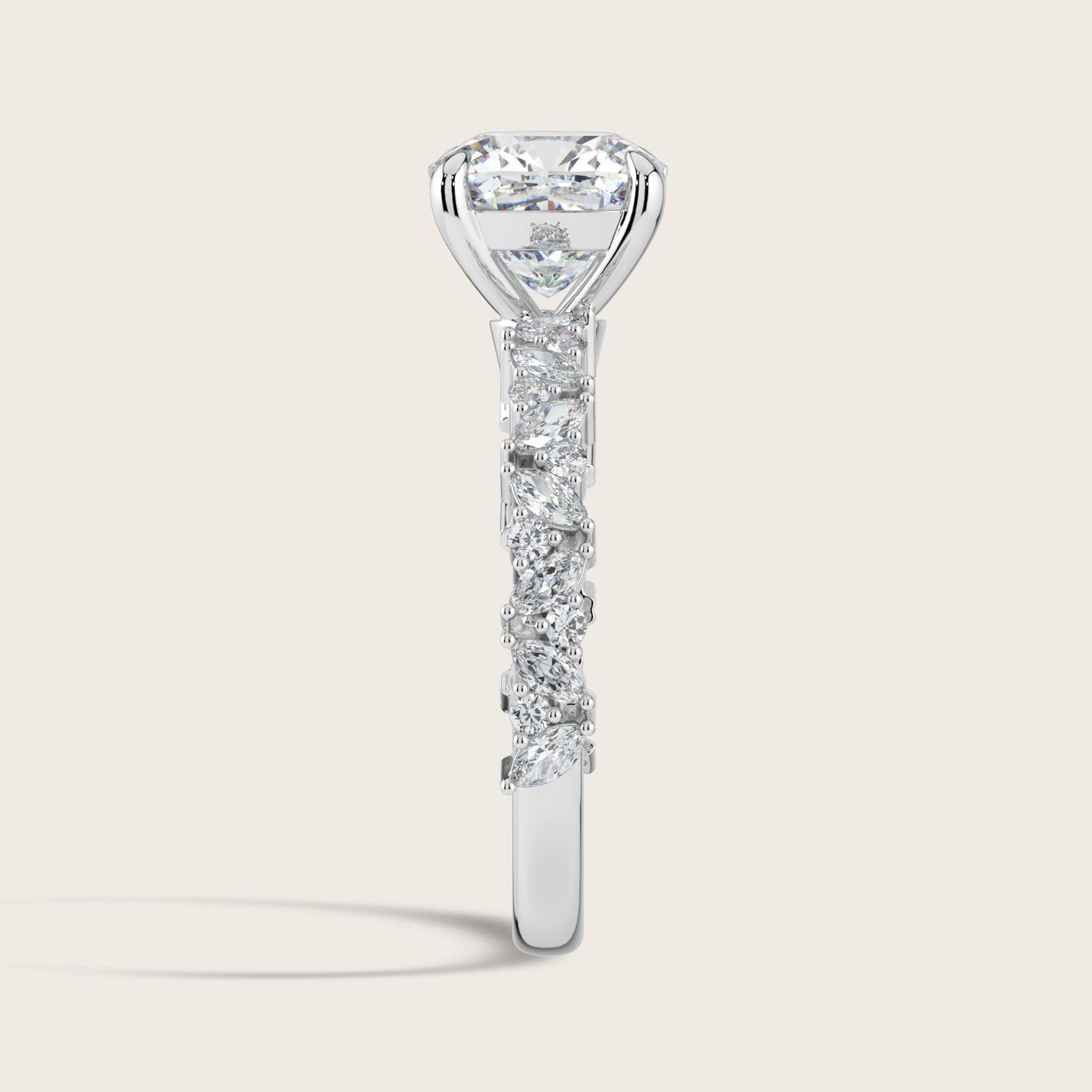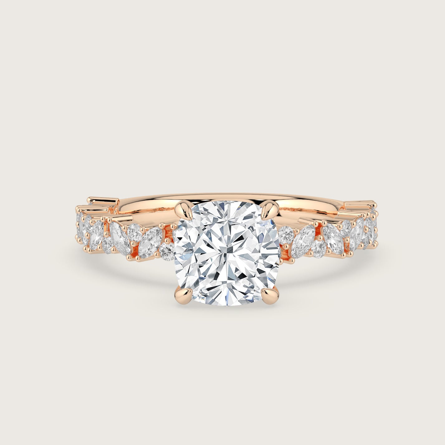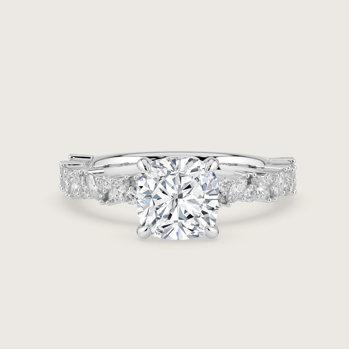 Blythe, Cushion Cut Diamond Marquise Pavé Ring