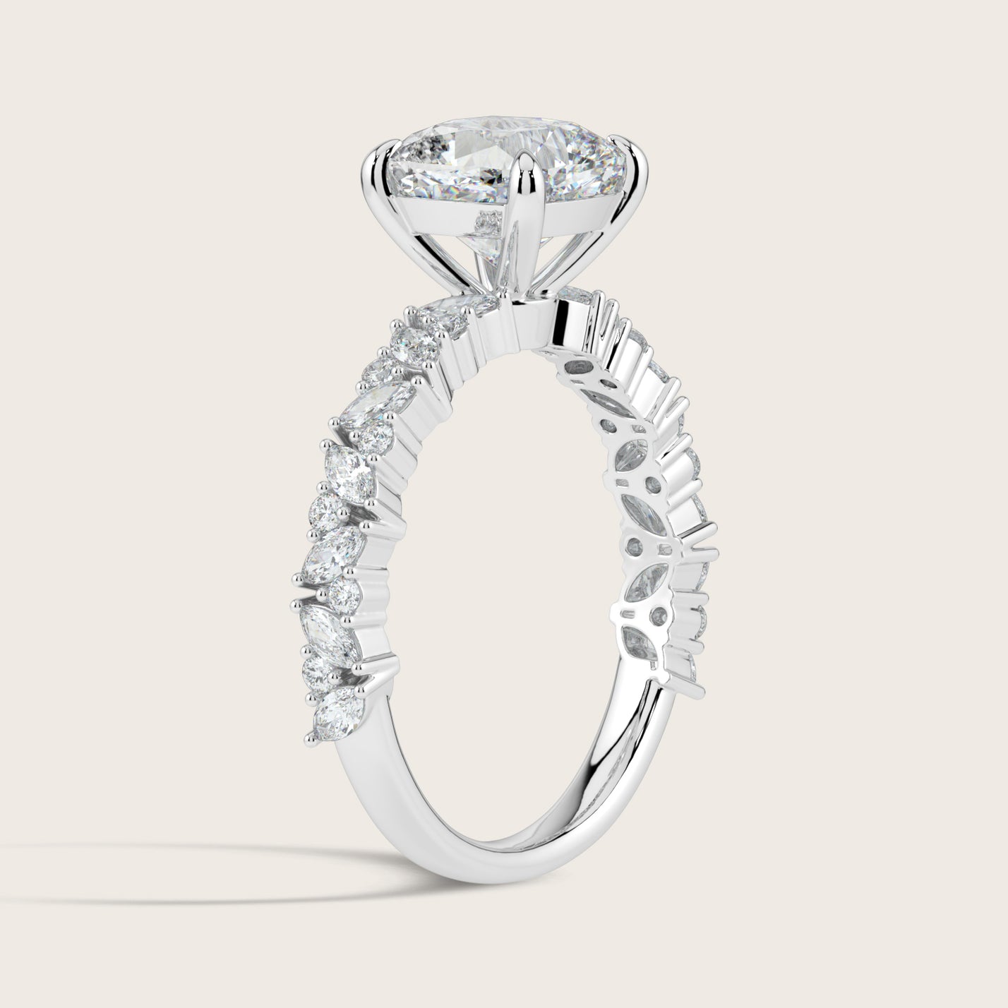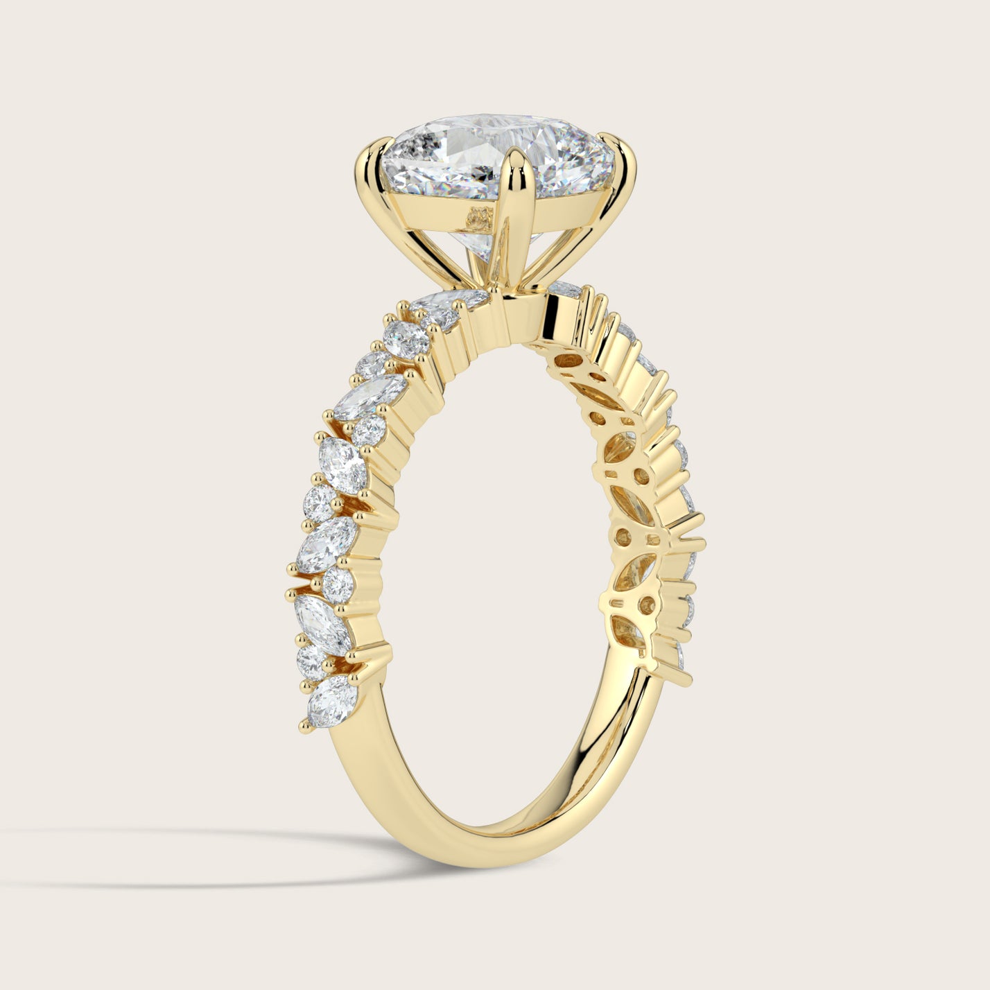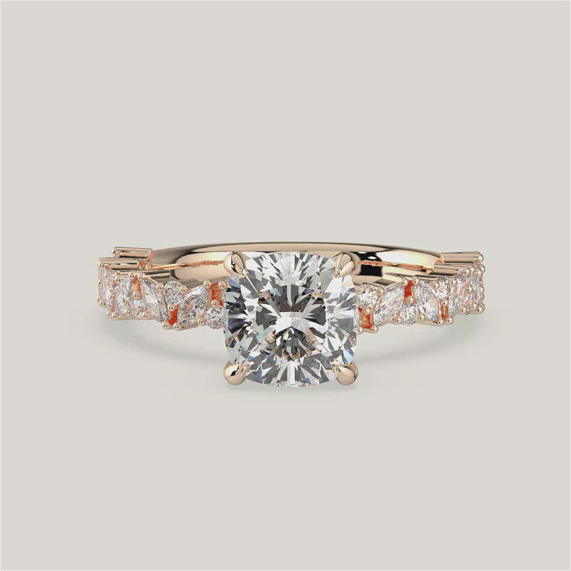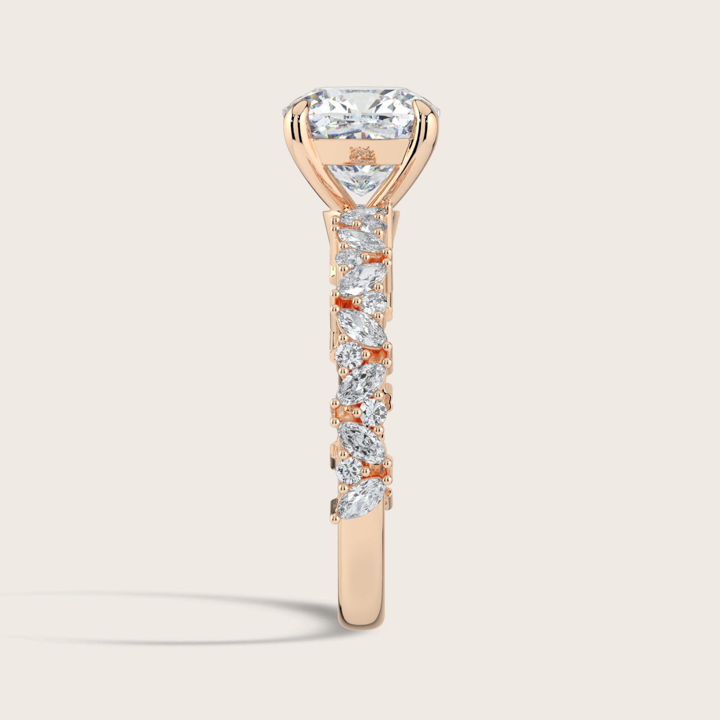 Blythe, Cushion Cut Diamond Marquise Pavé Ring