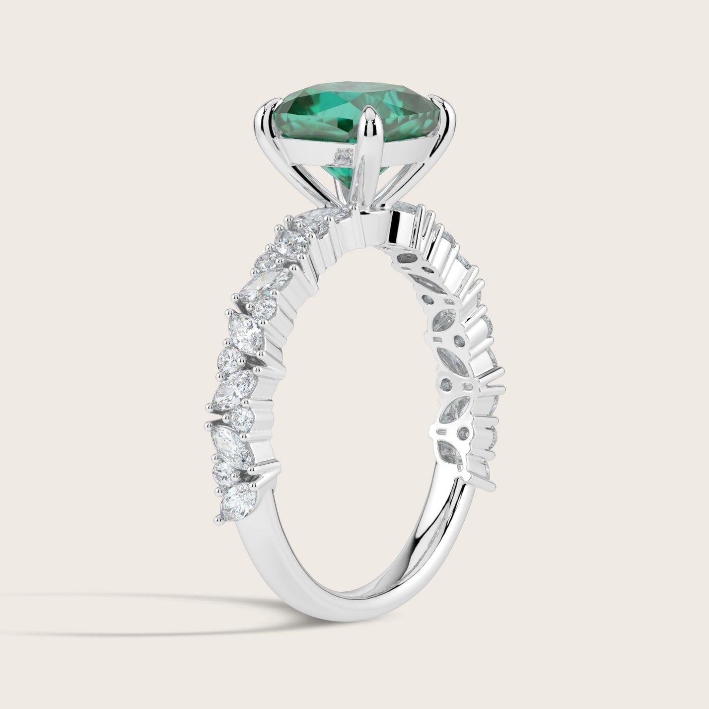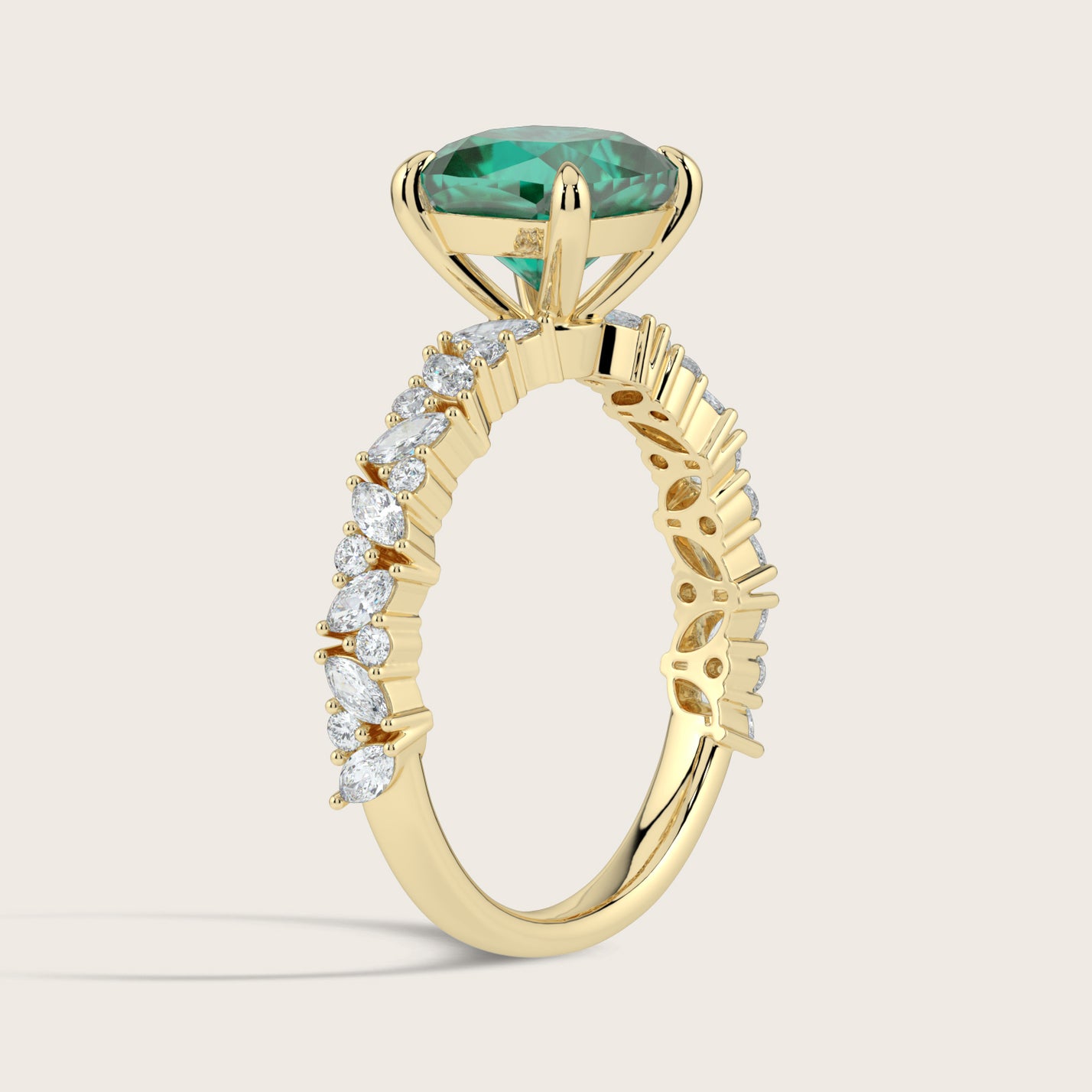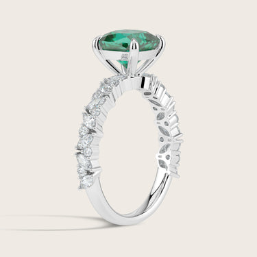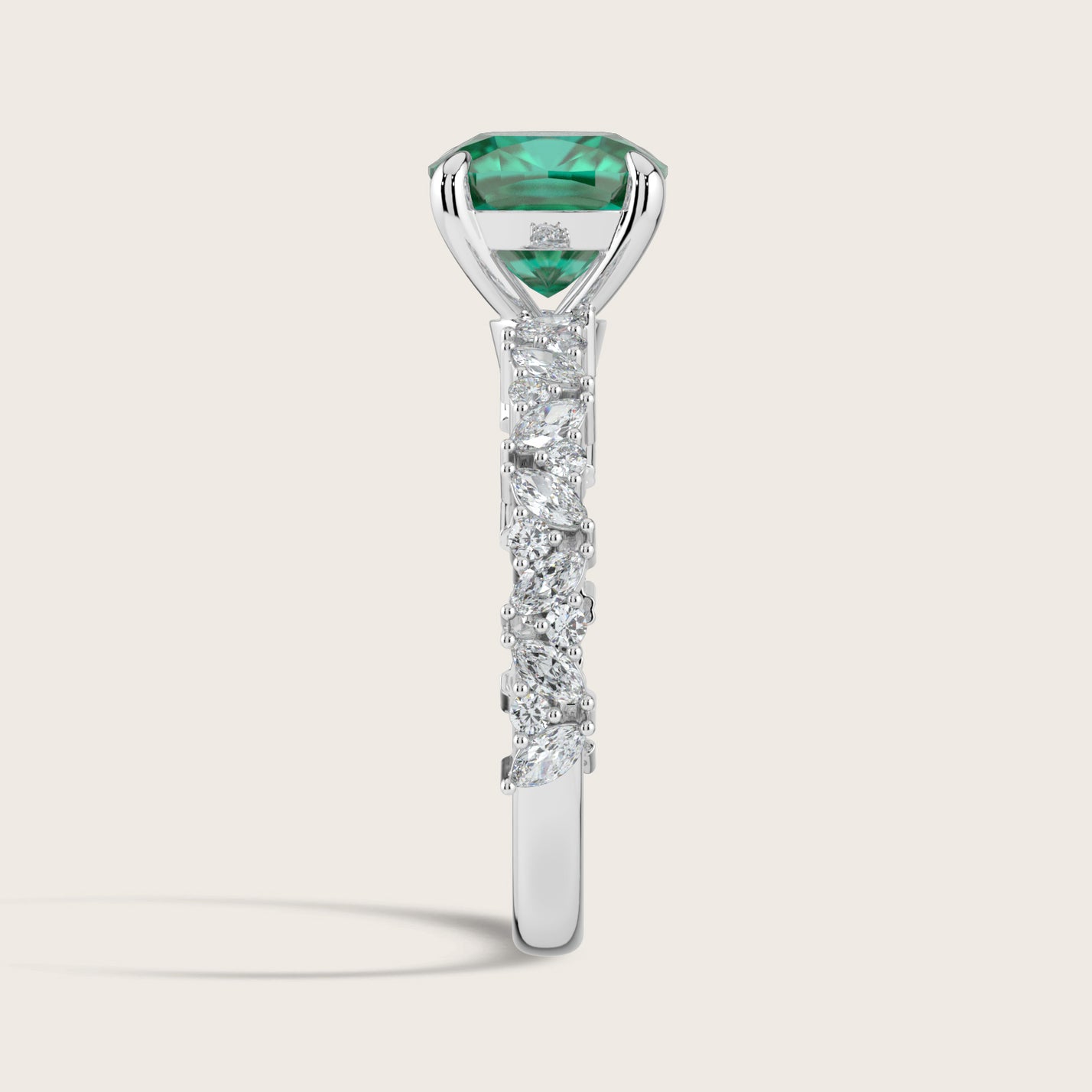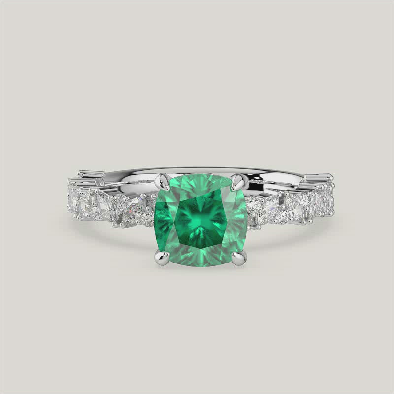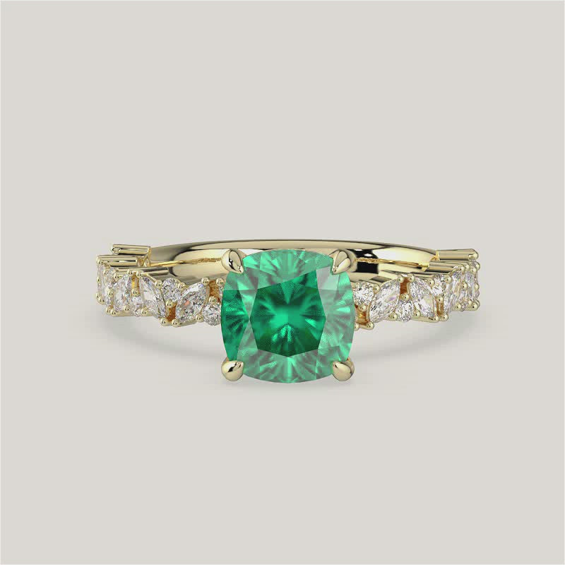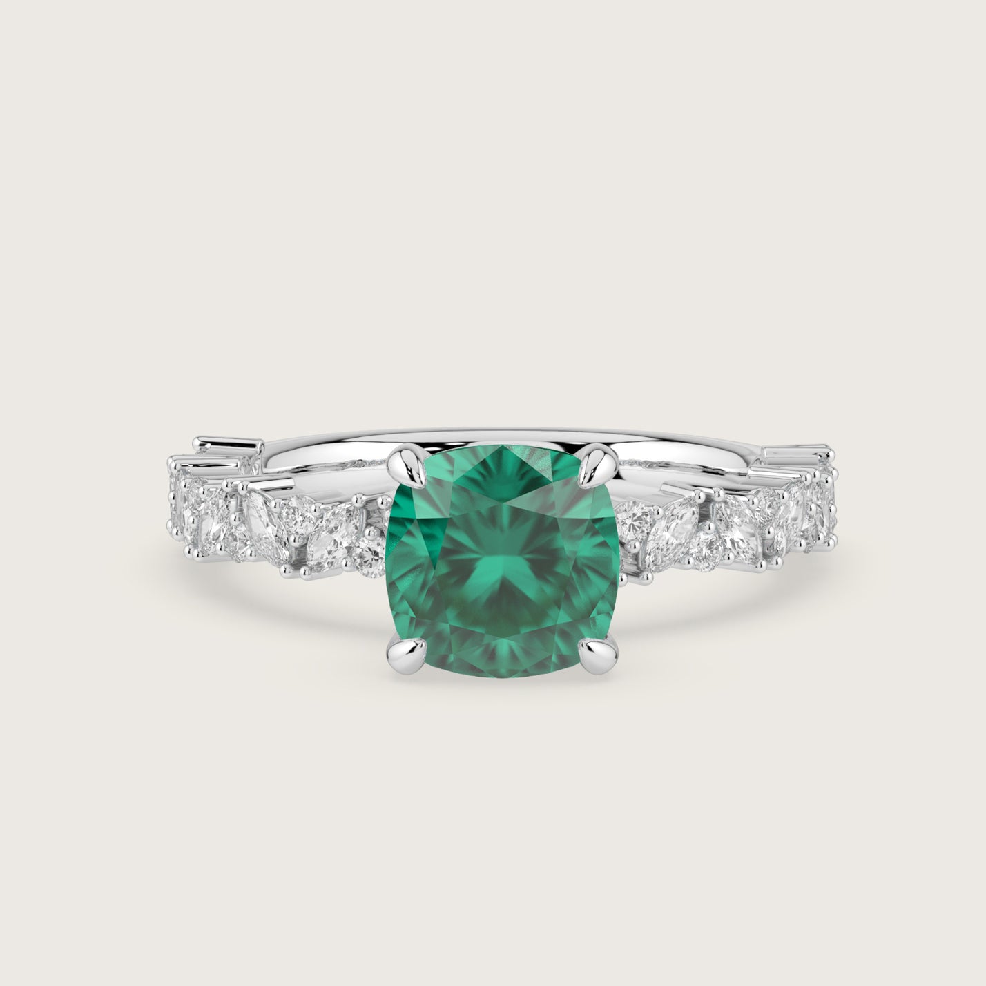 Blythe, Cushion Cut Emerald Marquise Pavé Ring