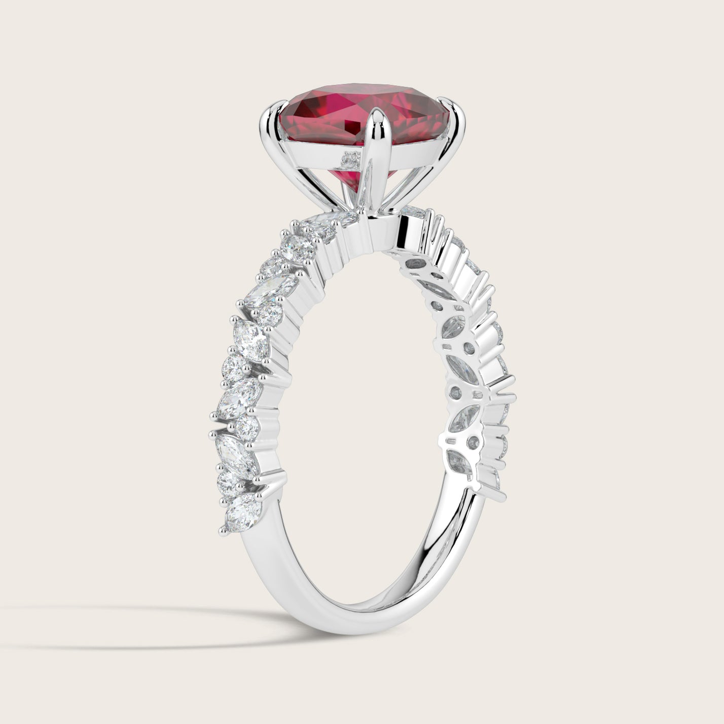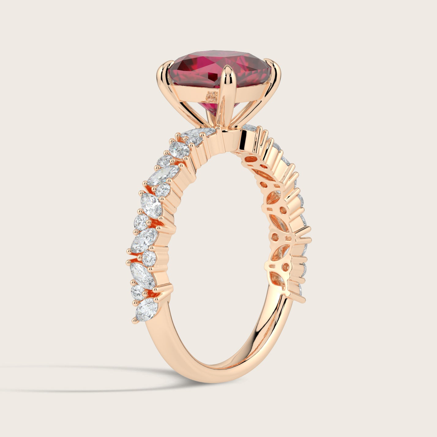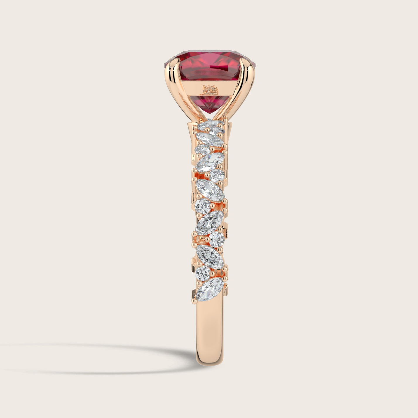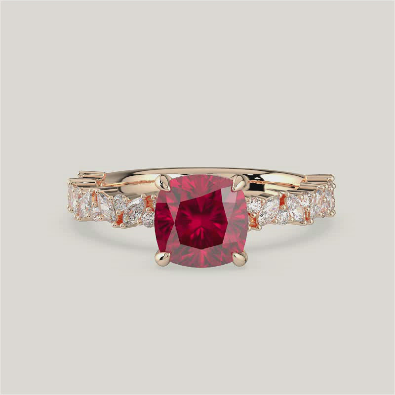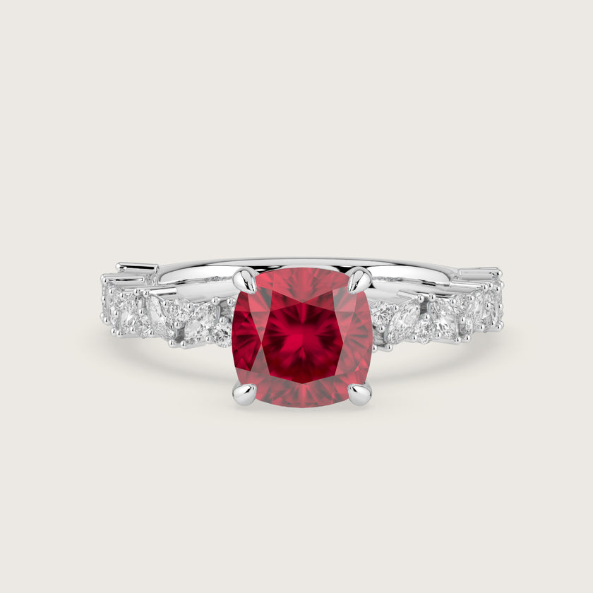 Blythe, Cushion Cut Ruby Marquise Pavé Ring