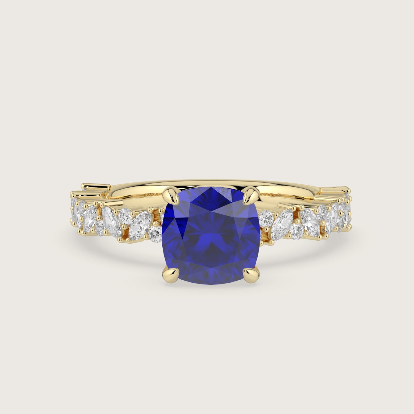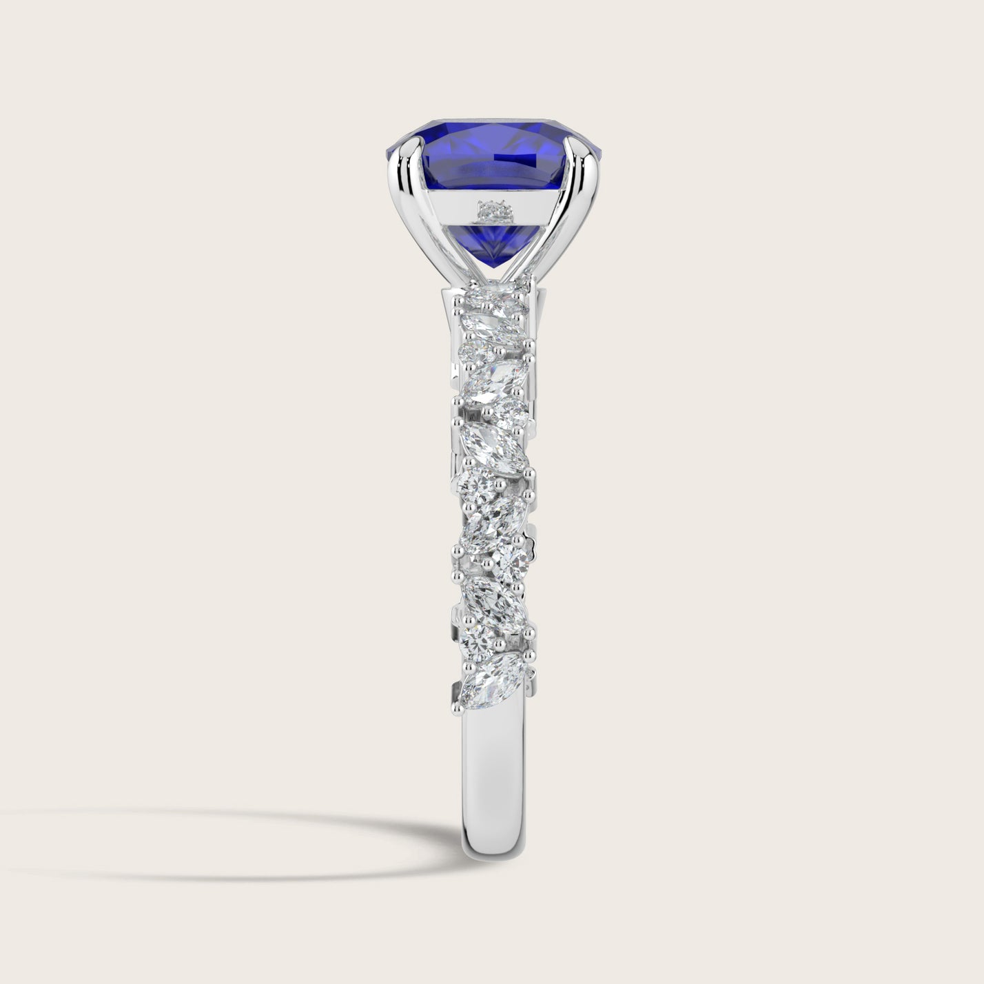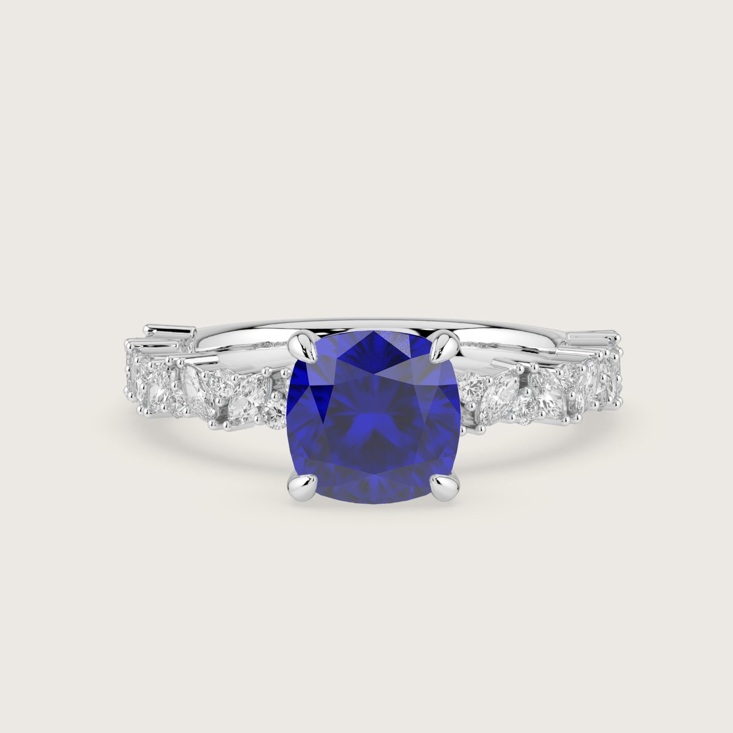 Blythe, Cushion Cut Sapphire Marquise Pavé Ring