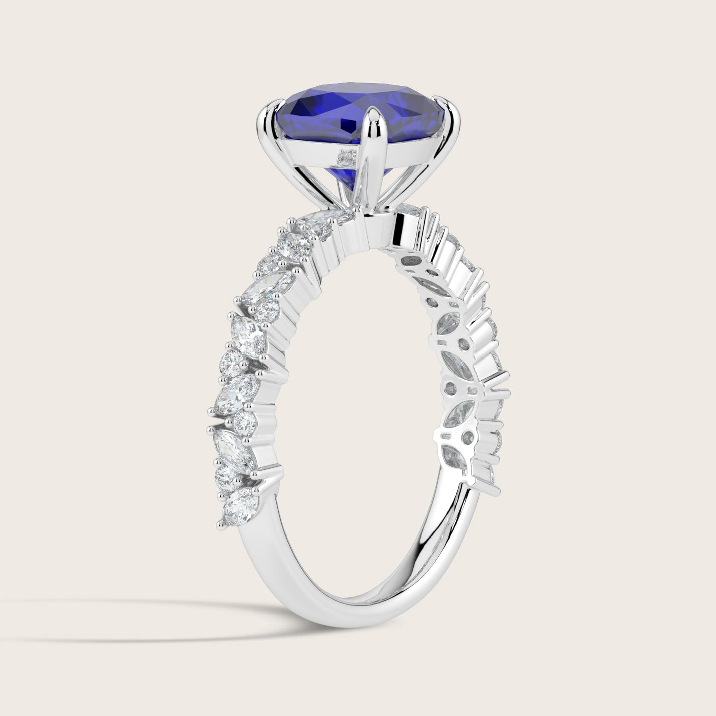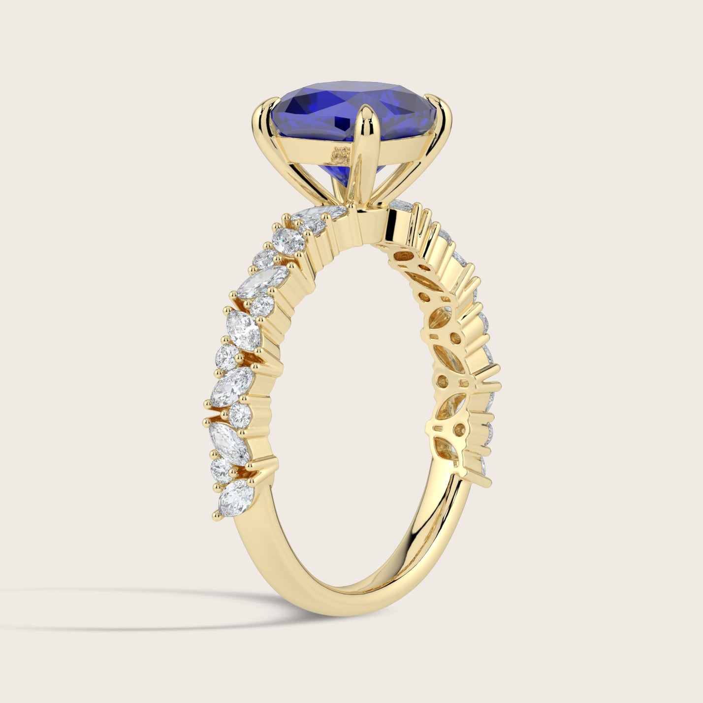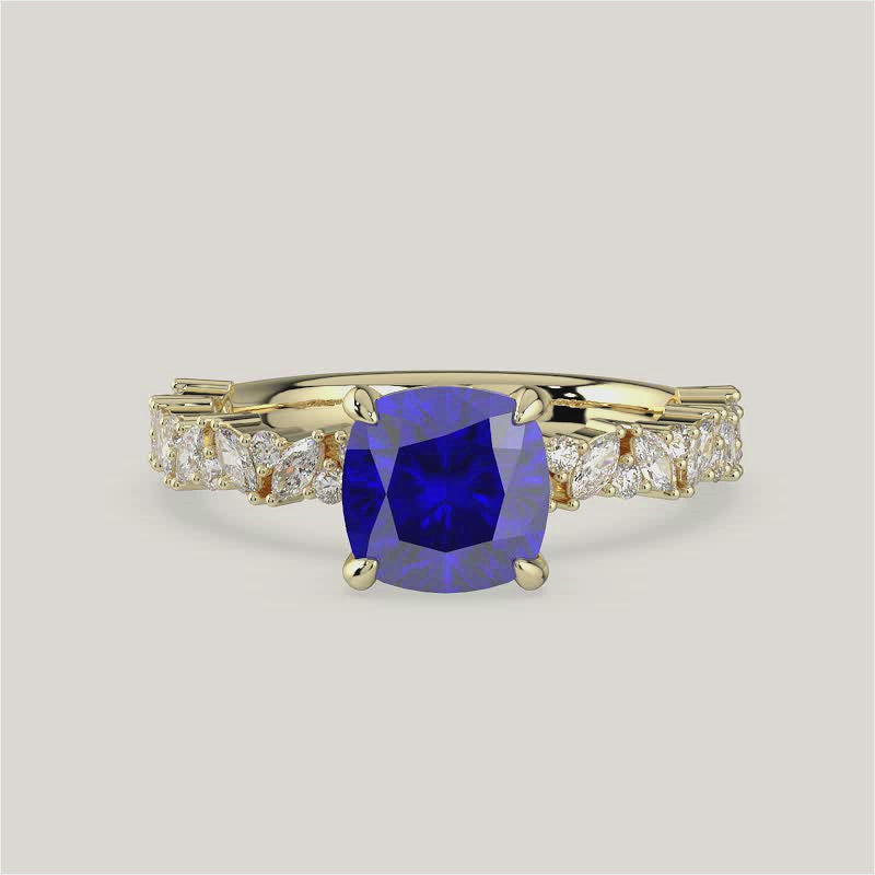 Blythe, Cushion Cut Sapphire Marquise Pavé Ring