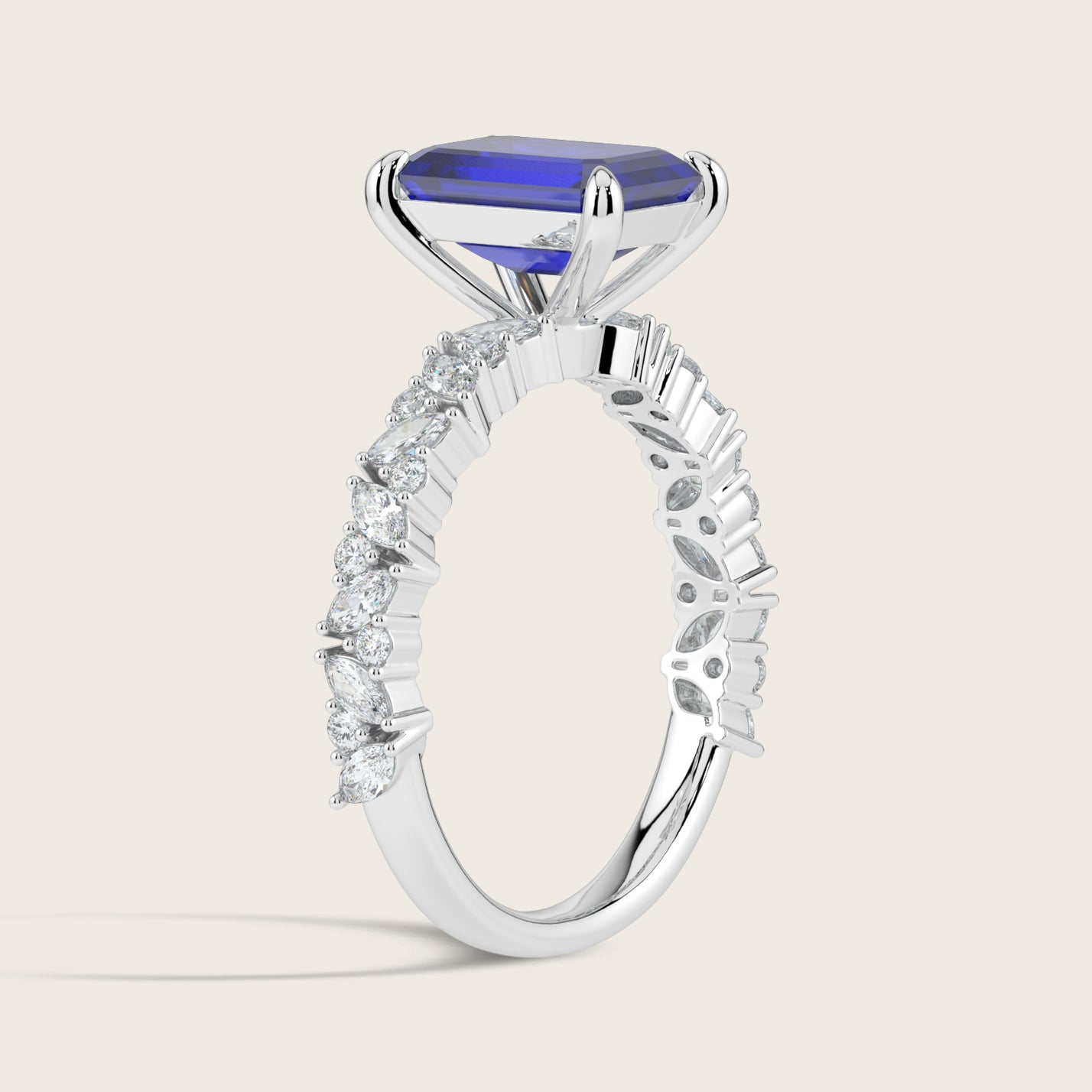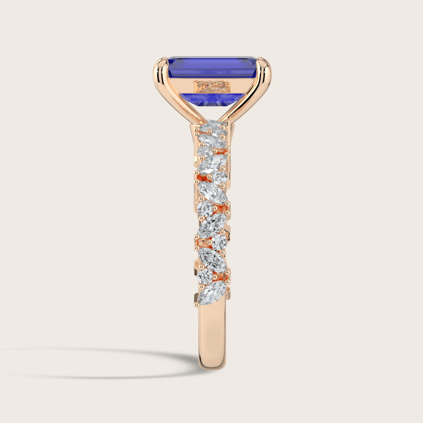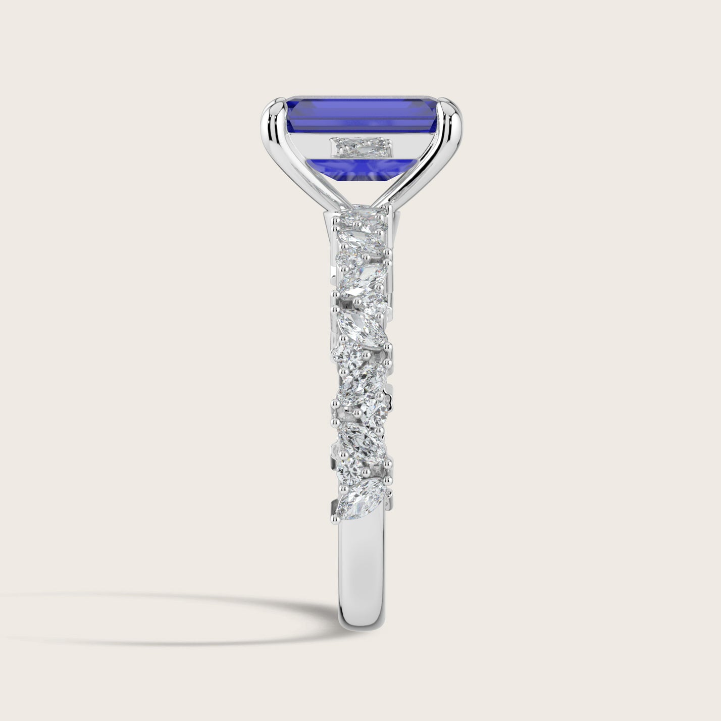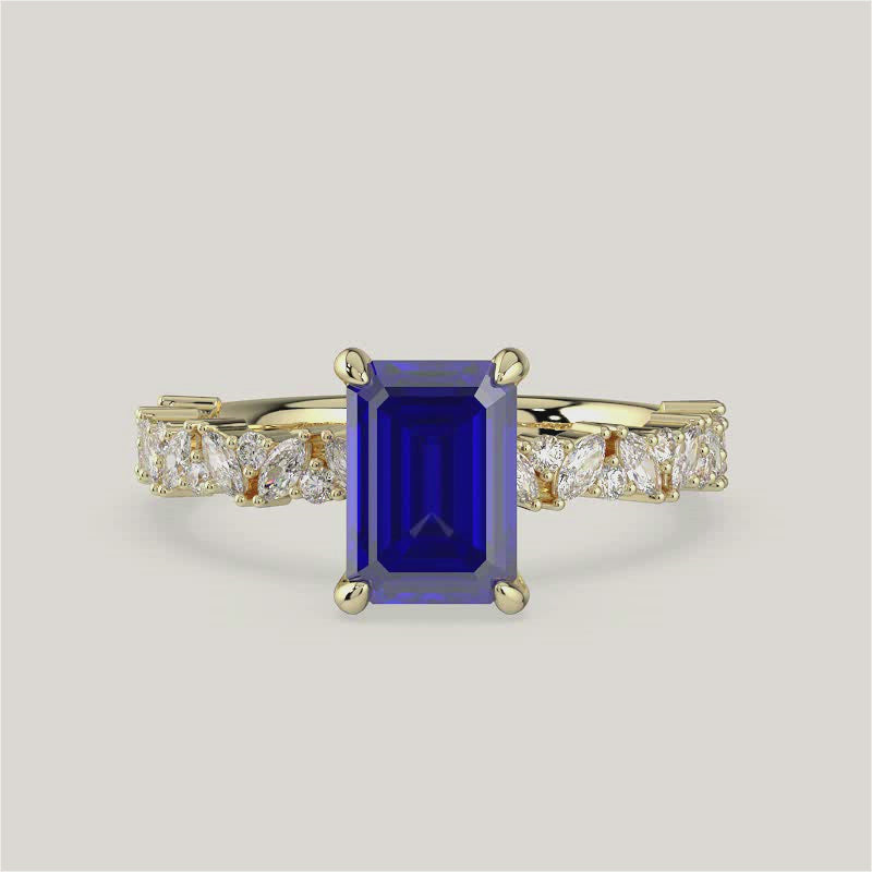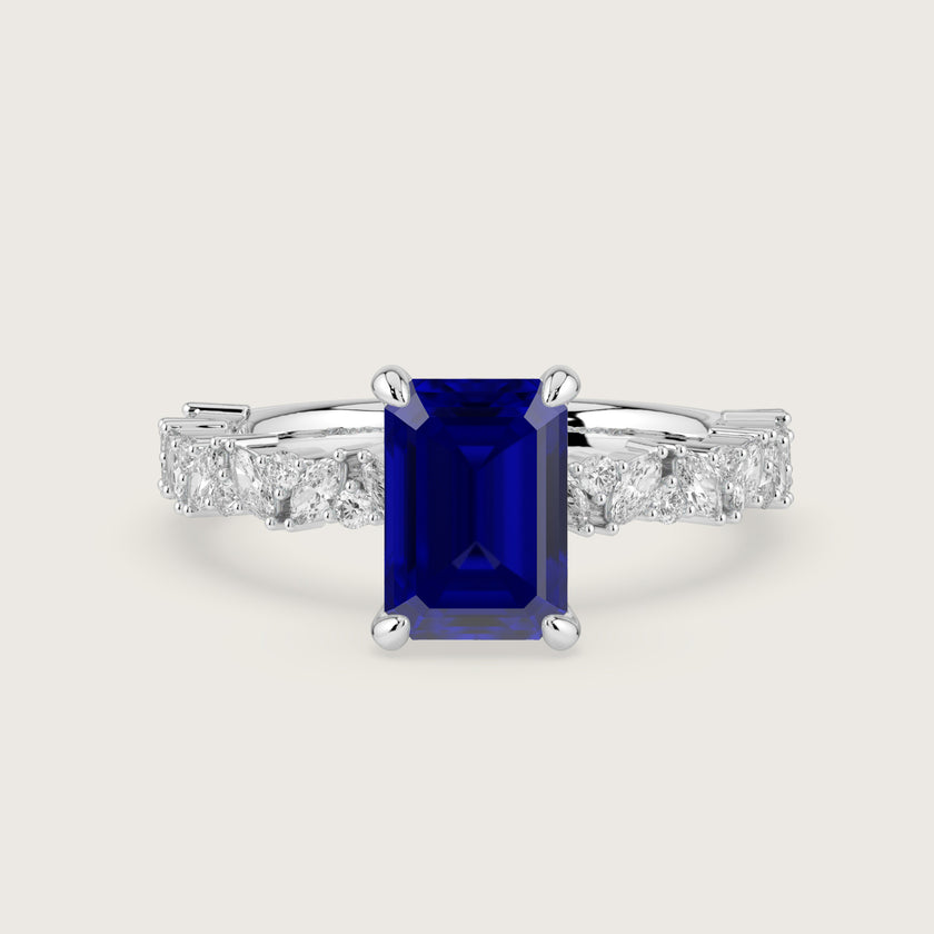 Blythe, Emerald Cut Sapphire Marquise Pavé Ring