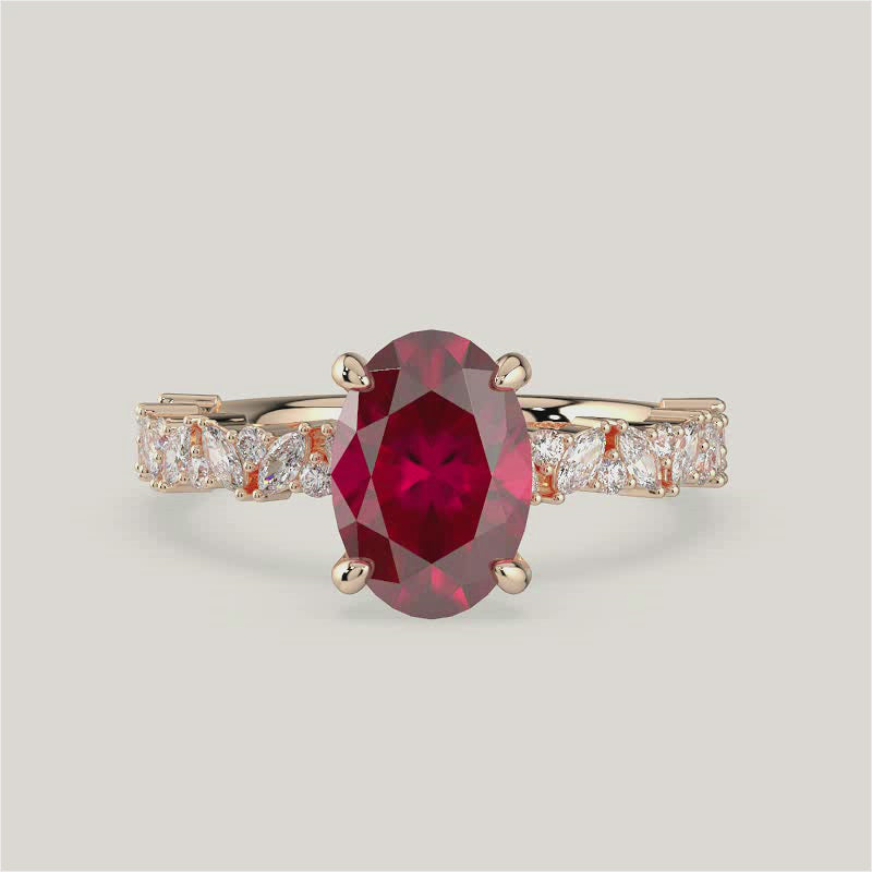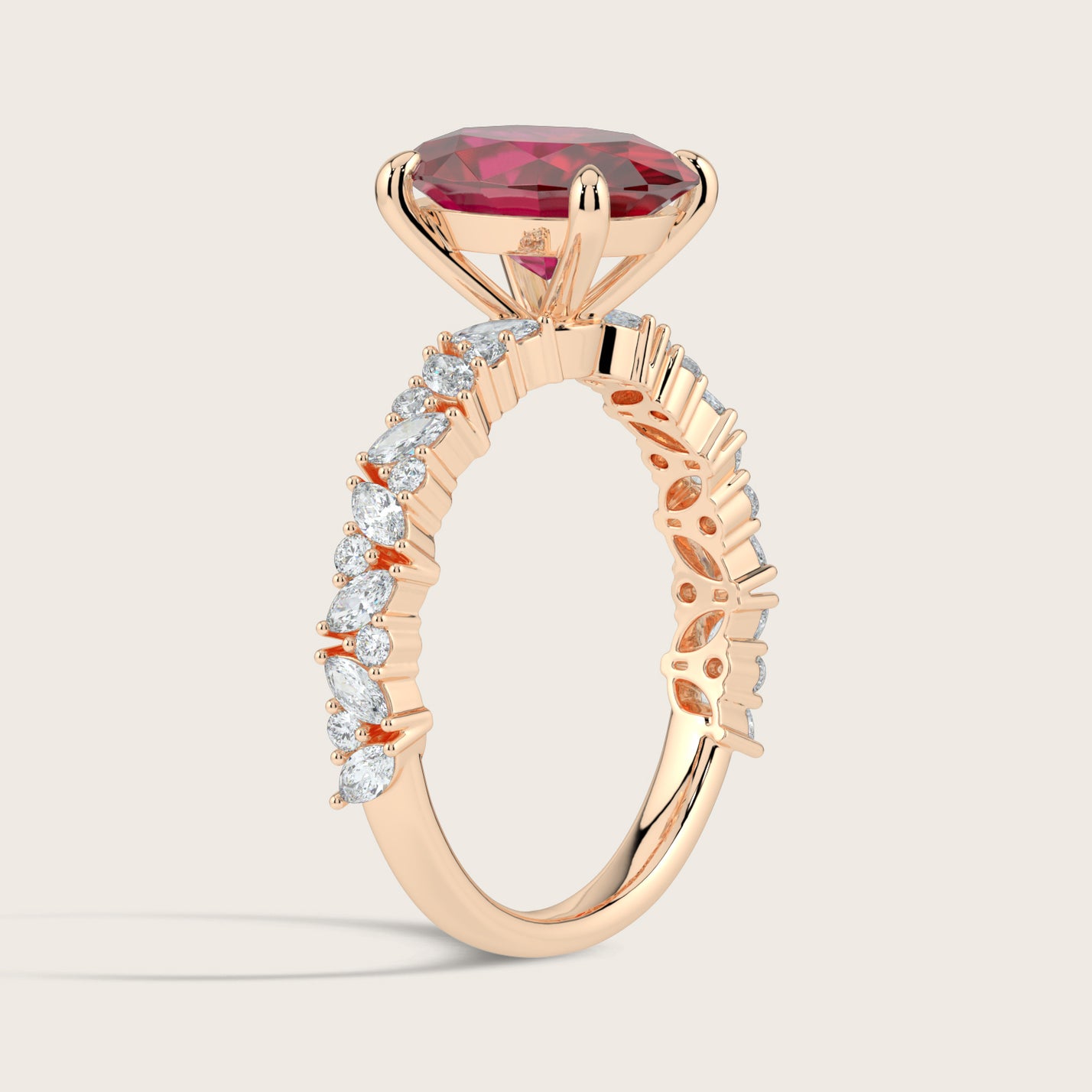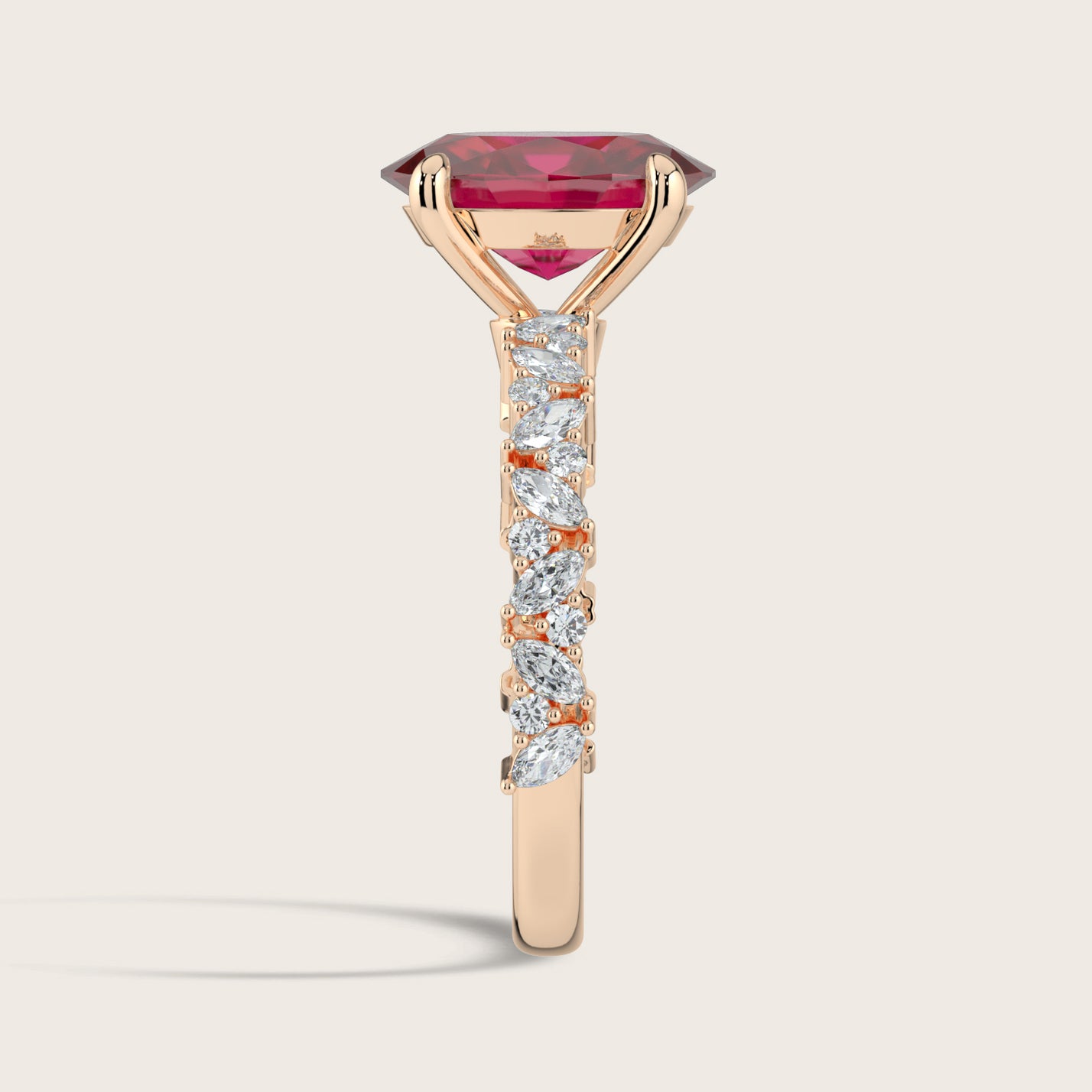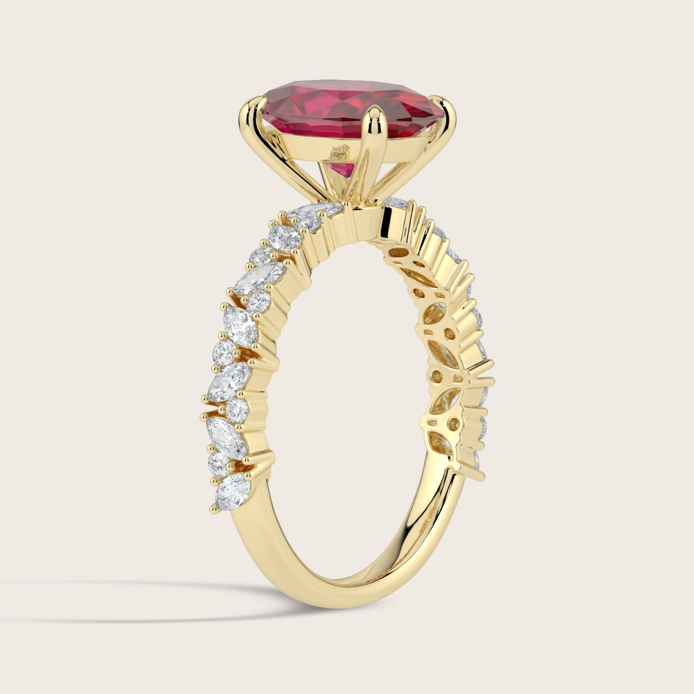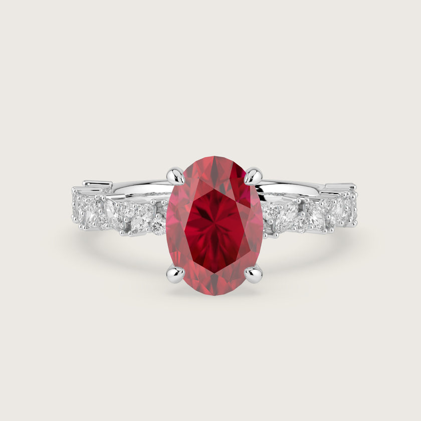 Blythe, Oval Cut Ruby Marquise Pavé Ring