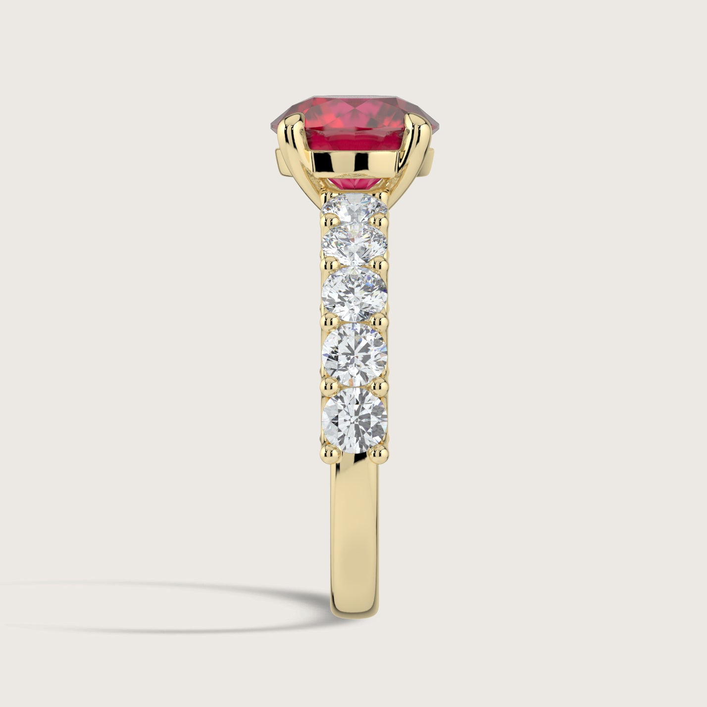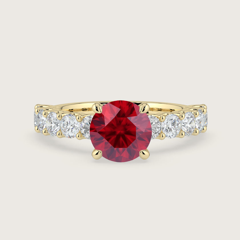 Celestine, Round Brilliant Ruby Luxe Band Ring