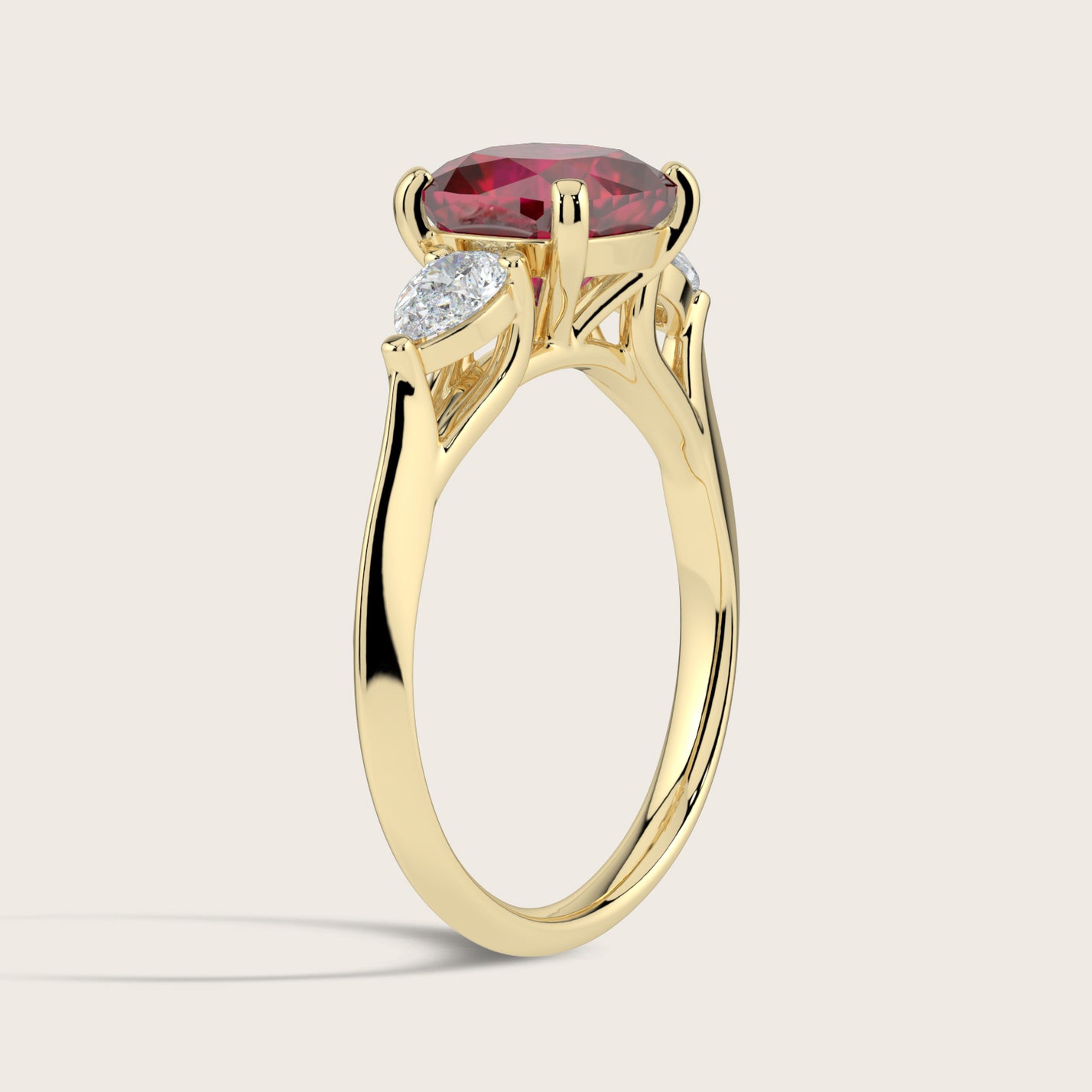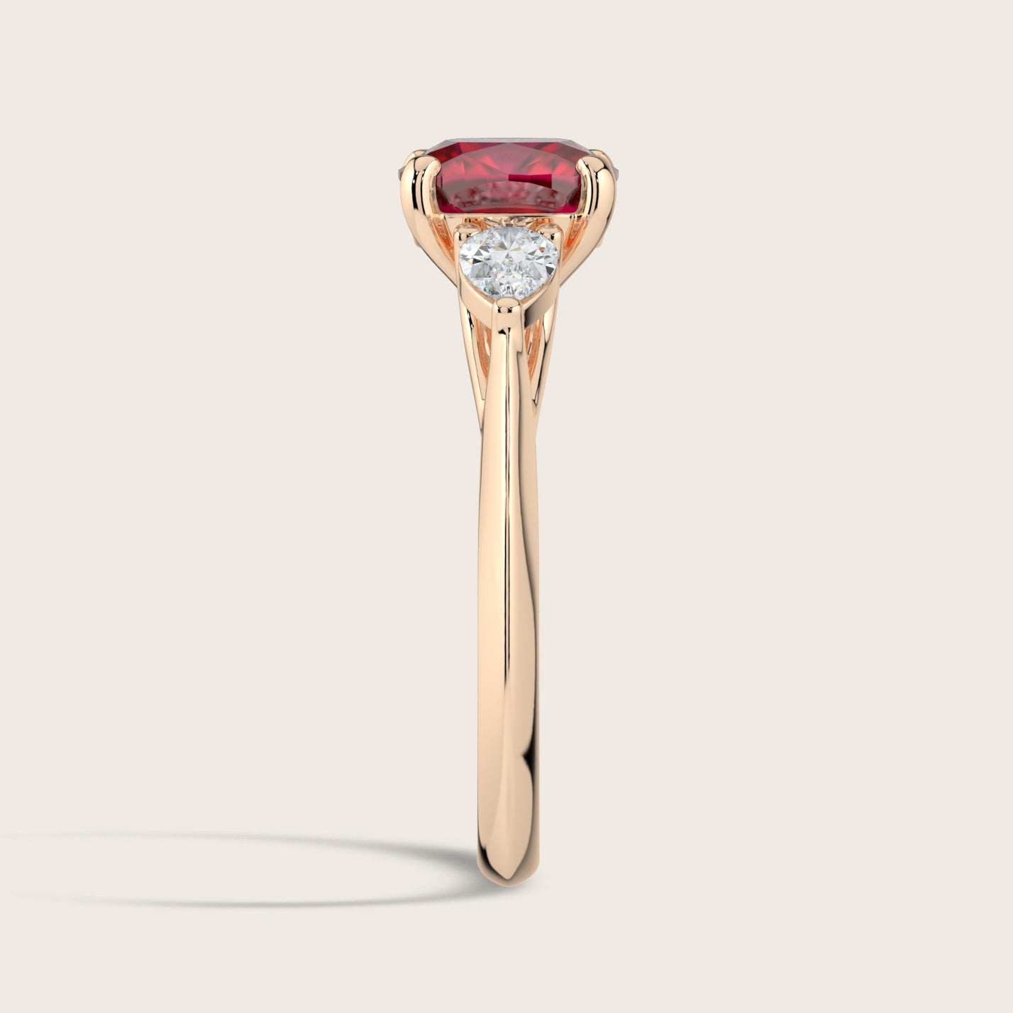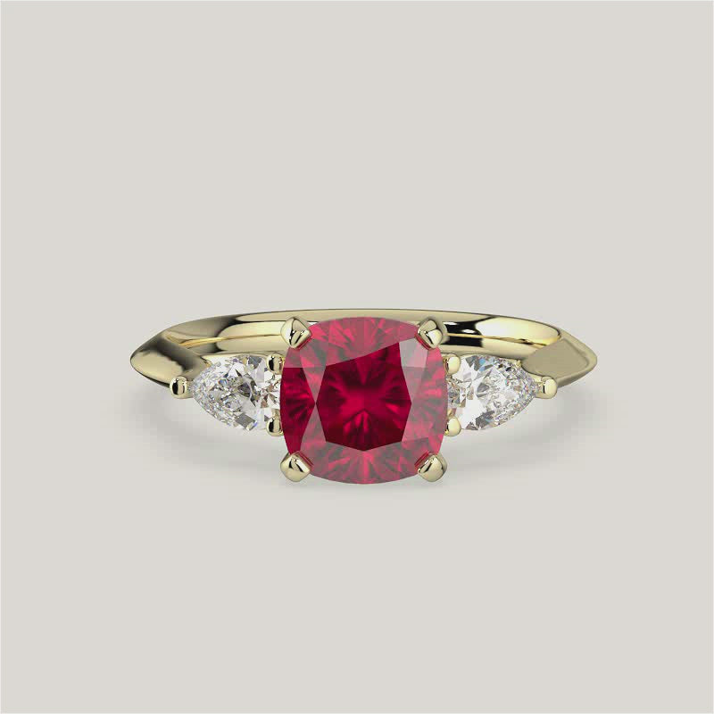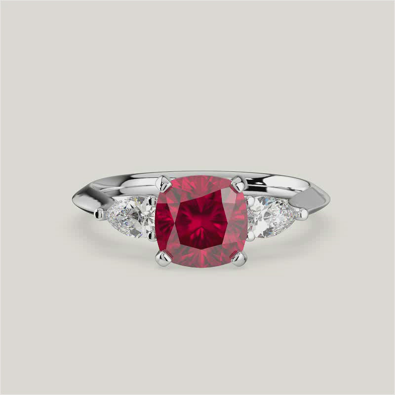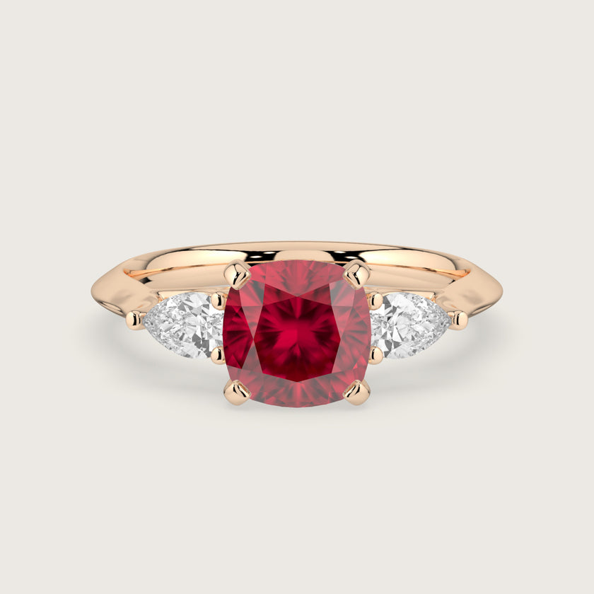 Charlotte, Cushion Cut Ruby Trilogy Ring