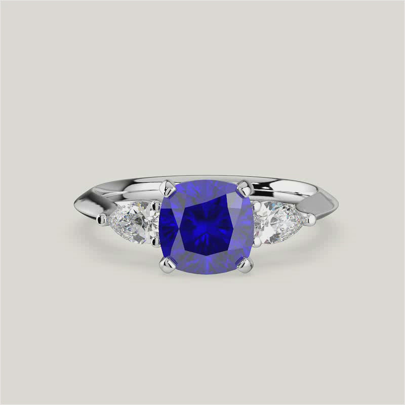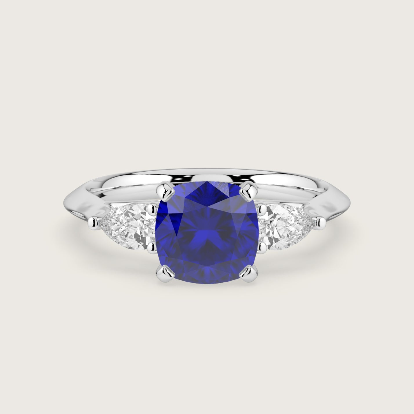 Charlotte, Cushion Cut Sapphire Trilogy Ring