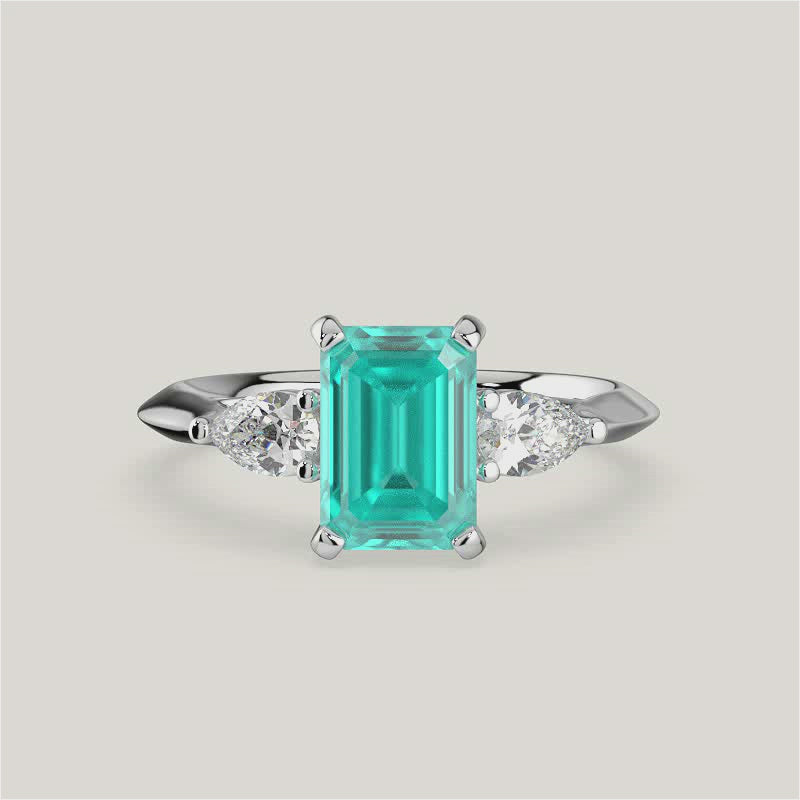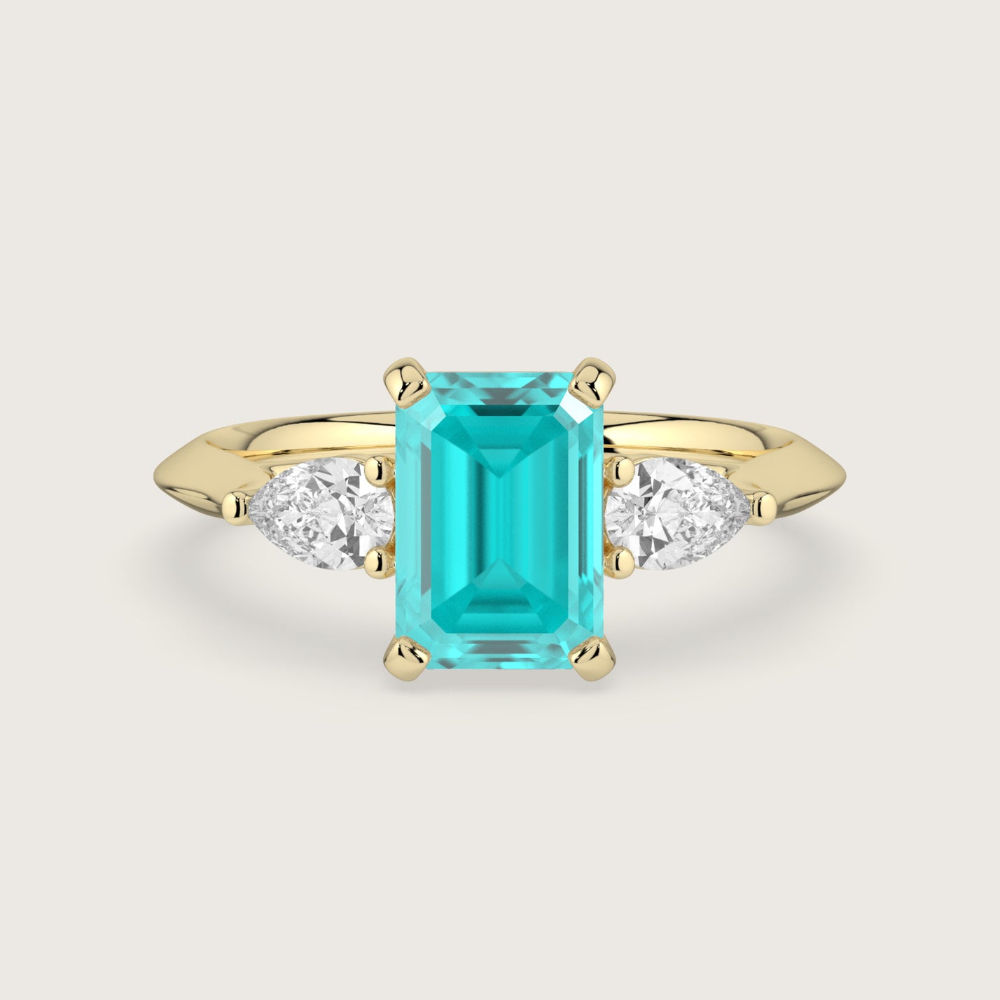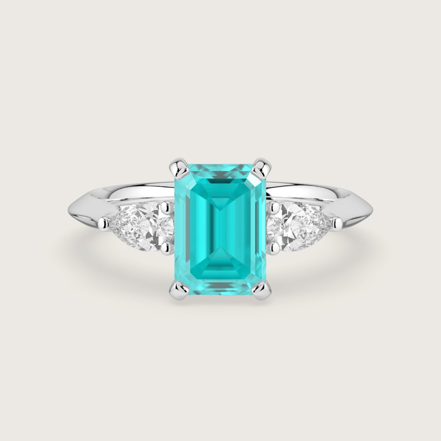 Charlotte, Emerald Cut Paraiba Trilogy Ring