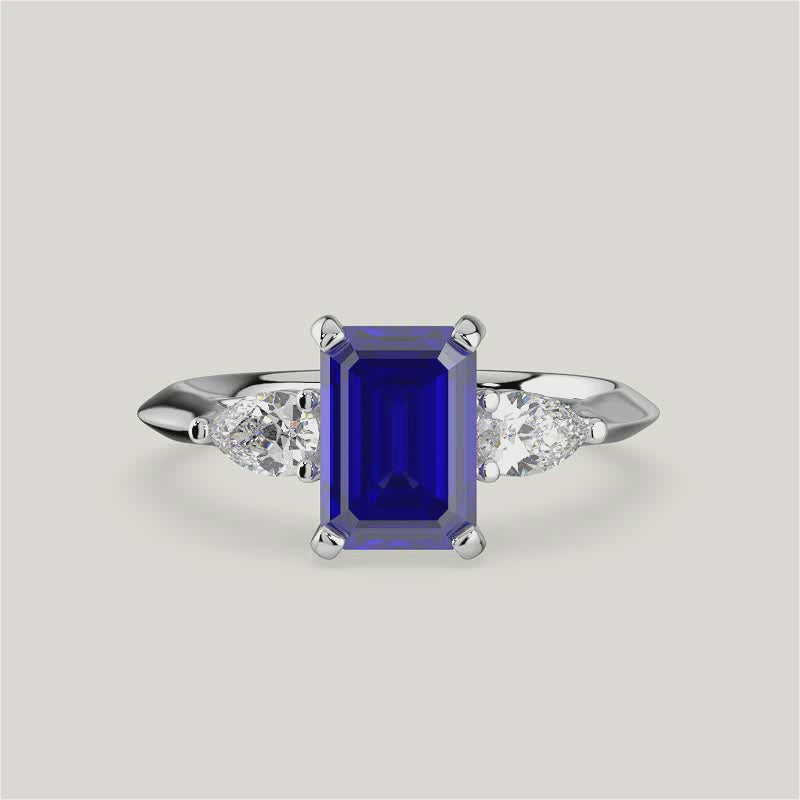 Charlotte, Emerald Cut Sapphire Trilogy Ring