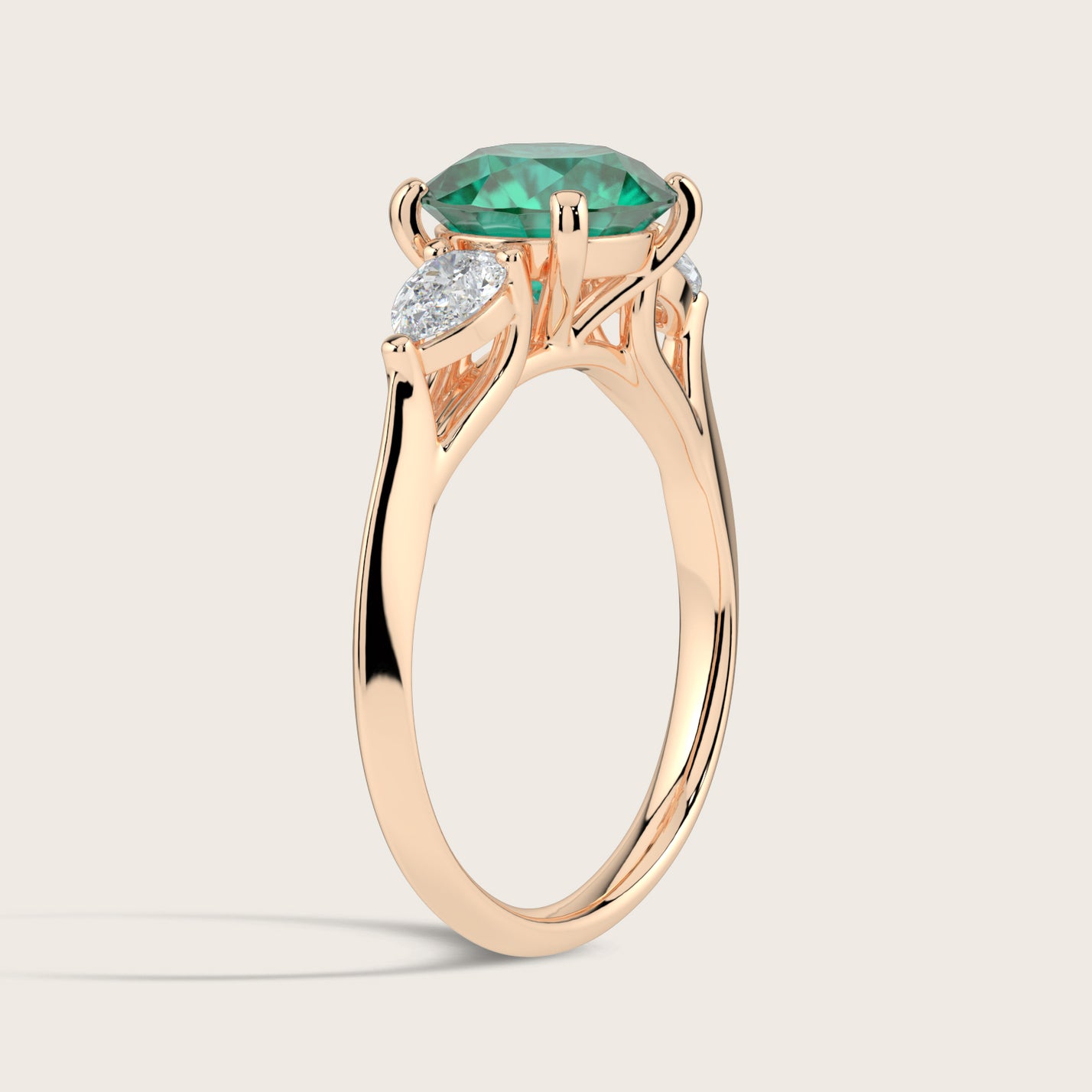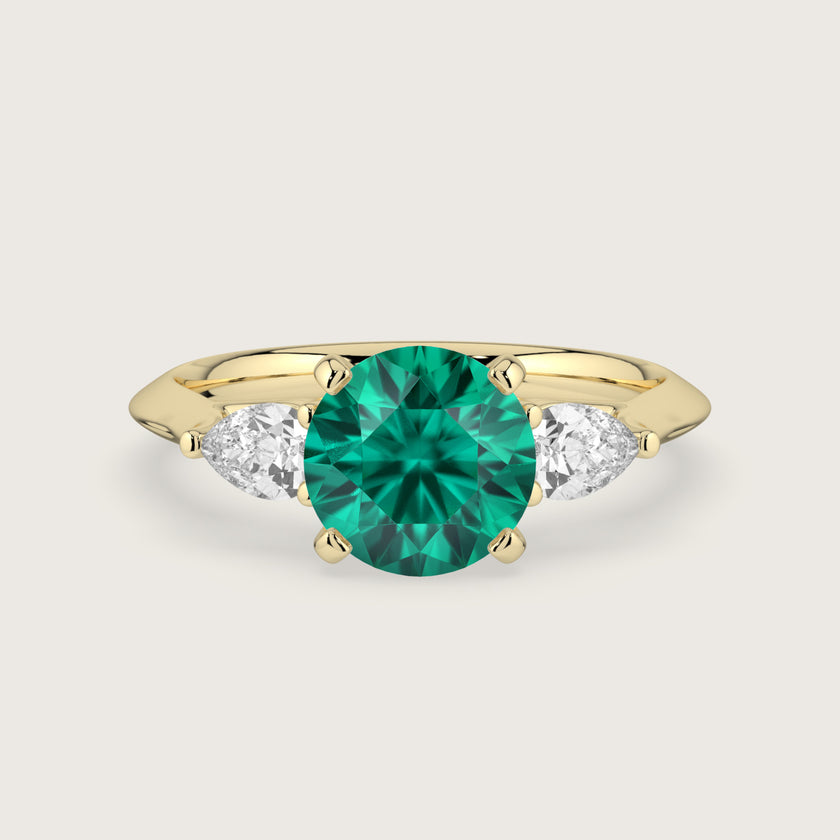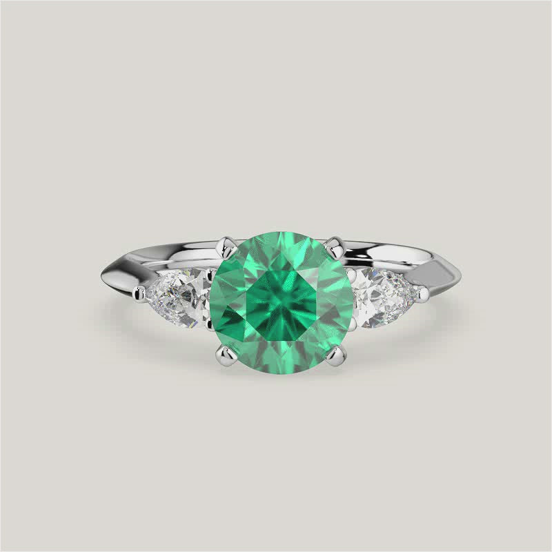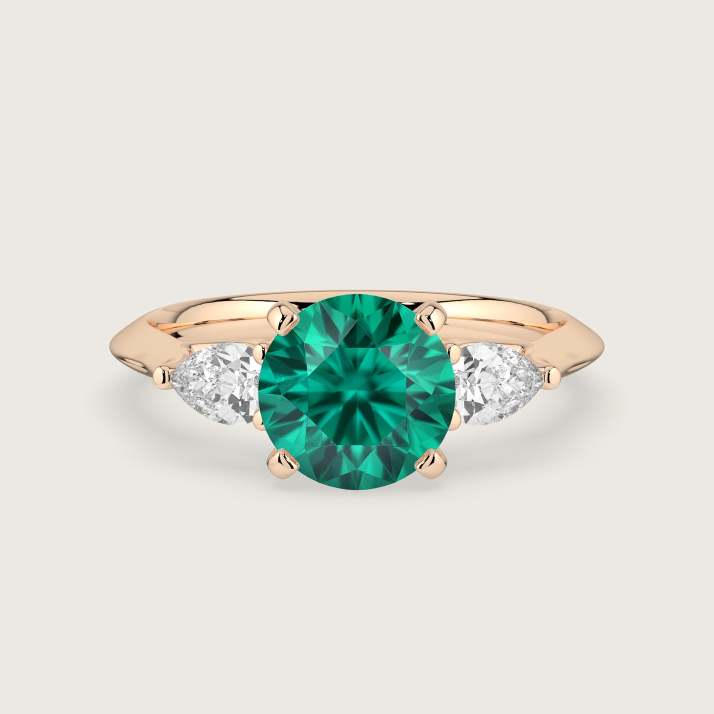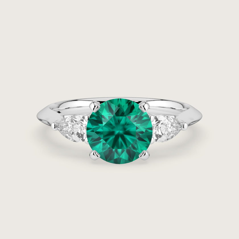 Charlotte, Round Brilliant Emerald Trilogy Ring