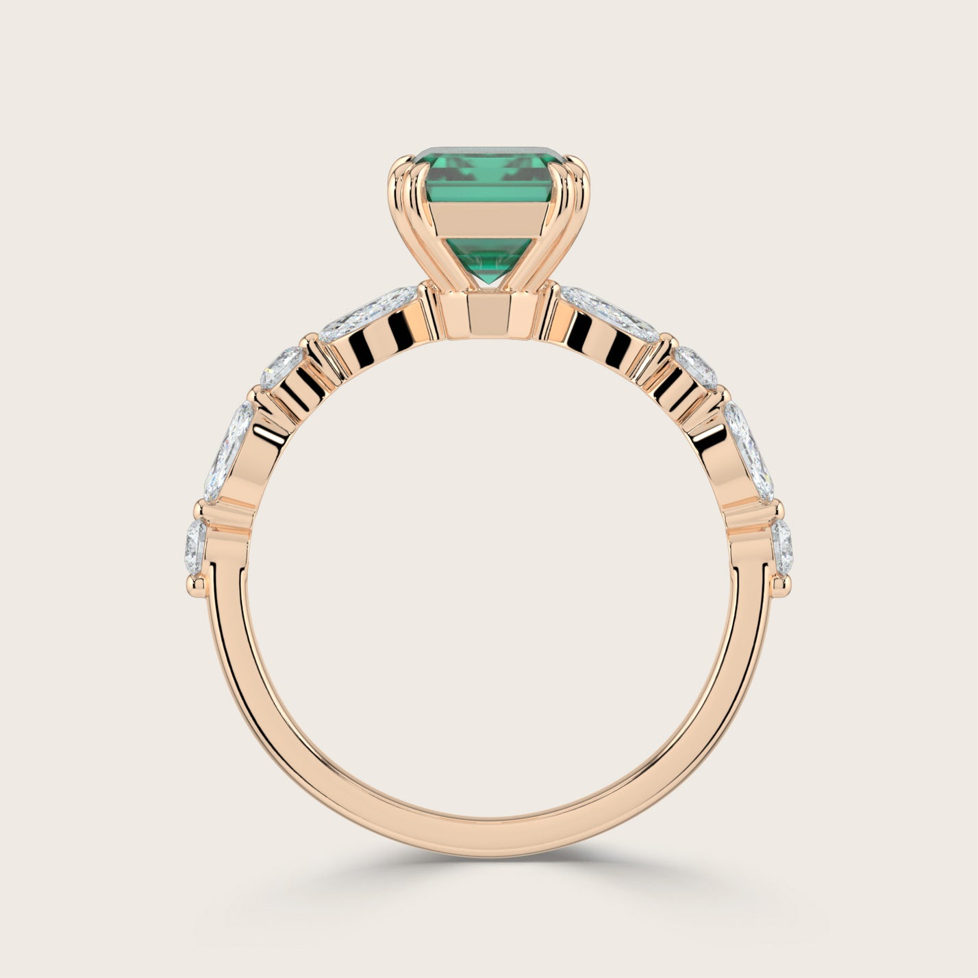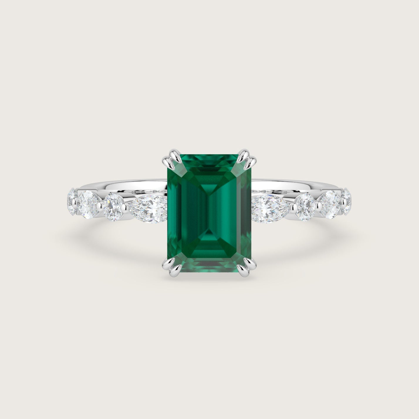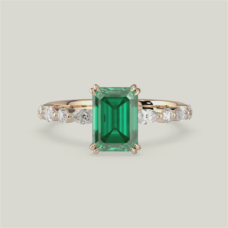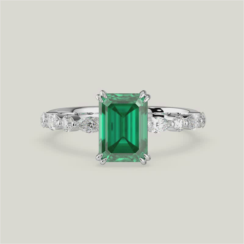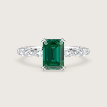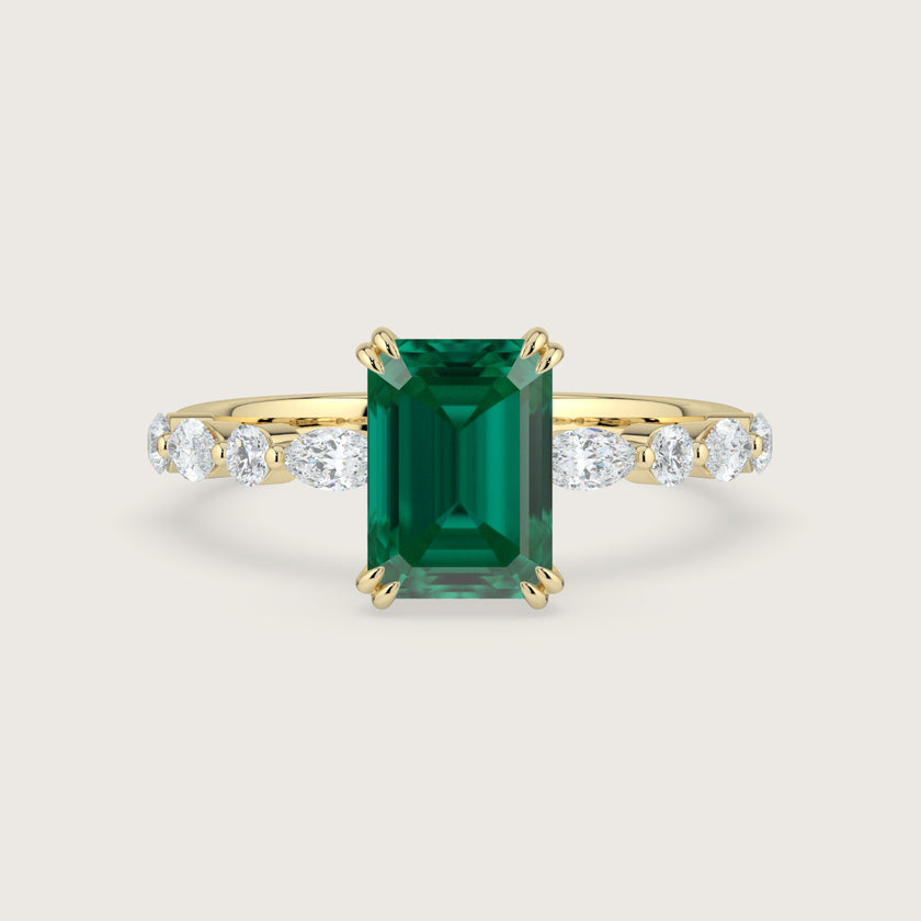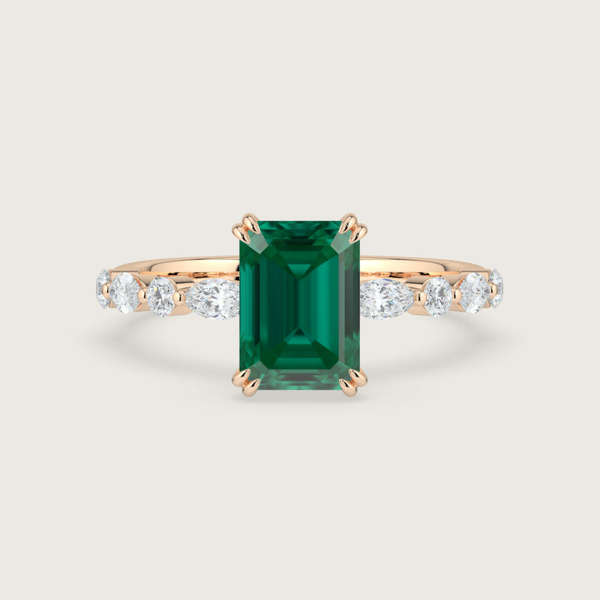 Chloe, Emerald Cut Emerald Pavé Ring
