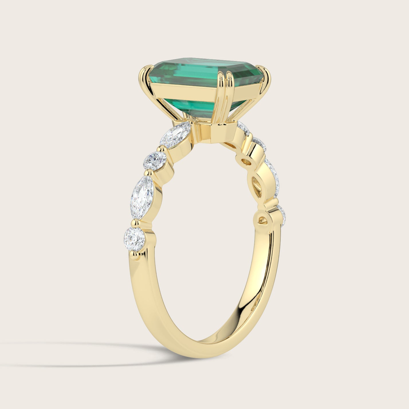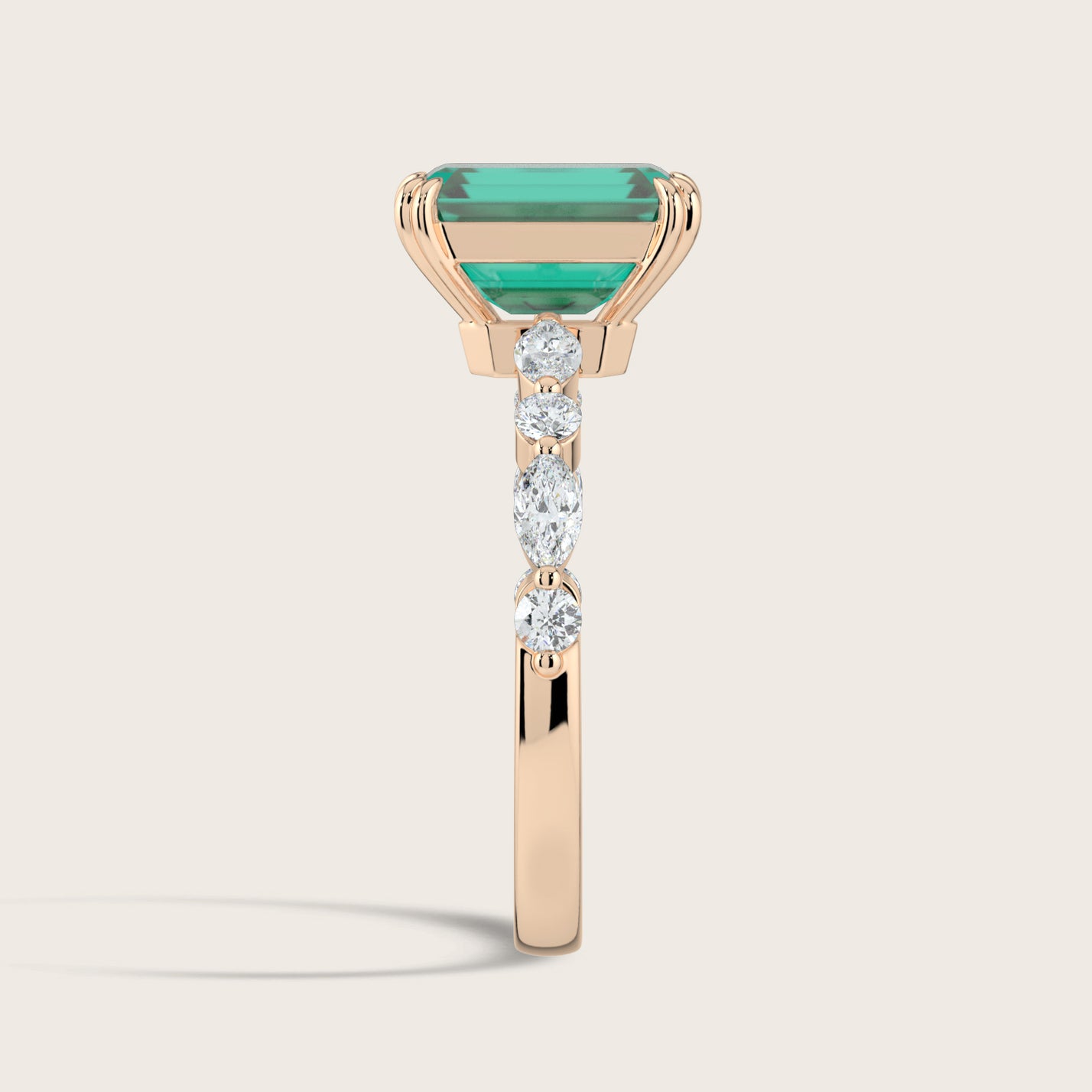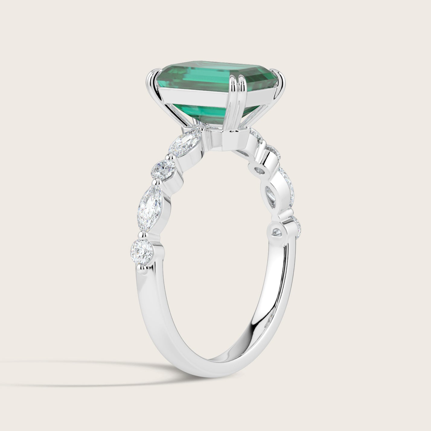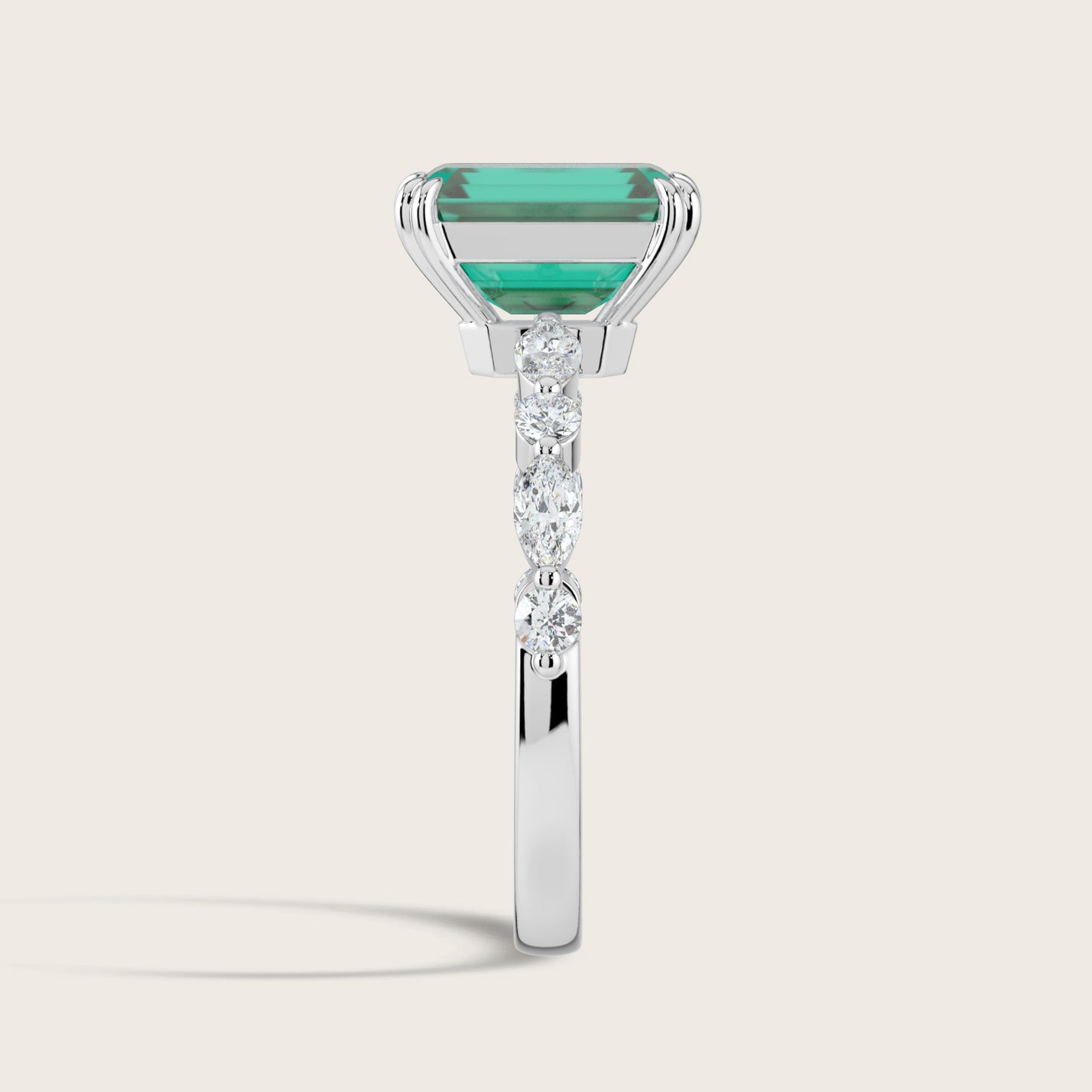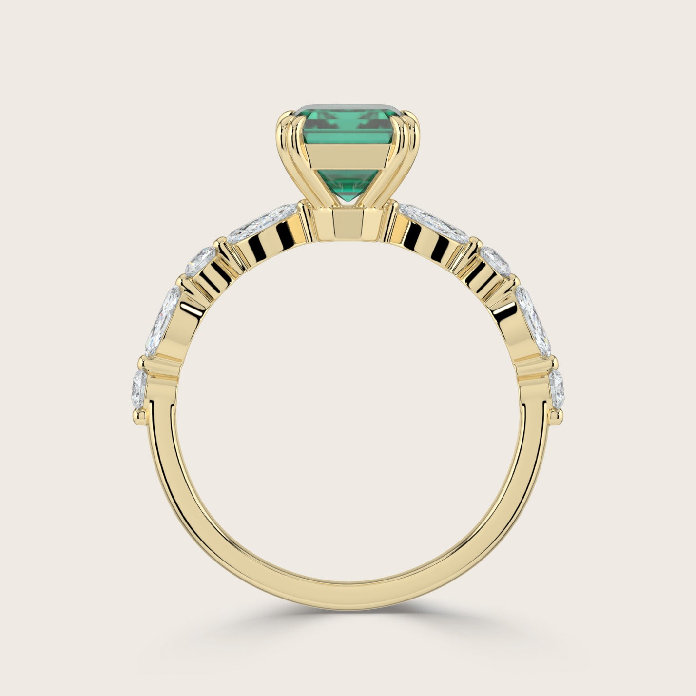 Chloe, Emerald Cut Emerald Pavé Ring