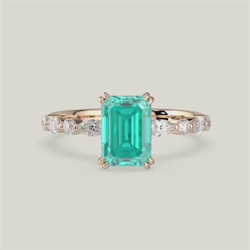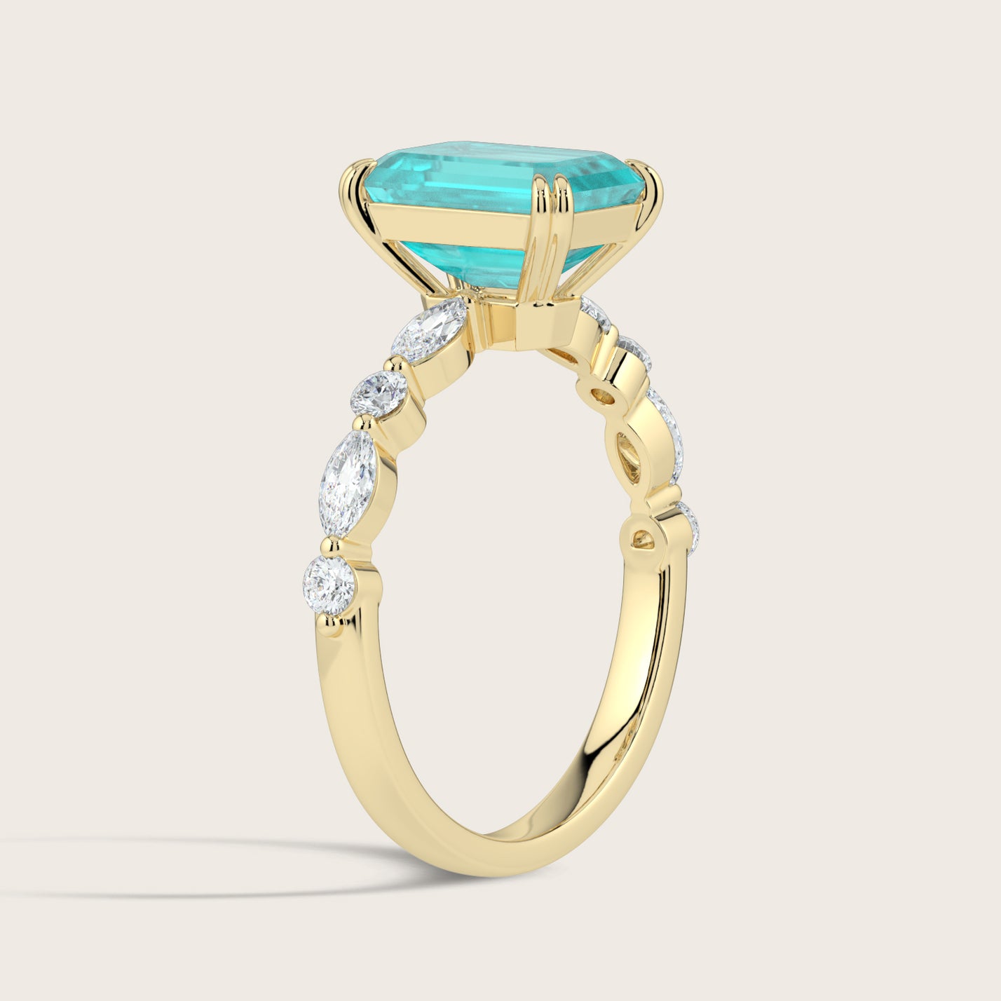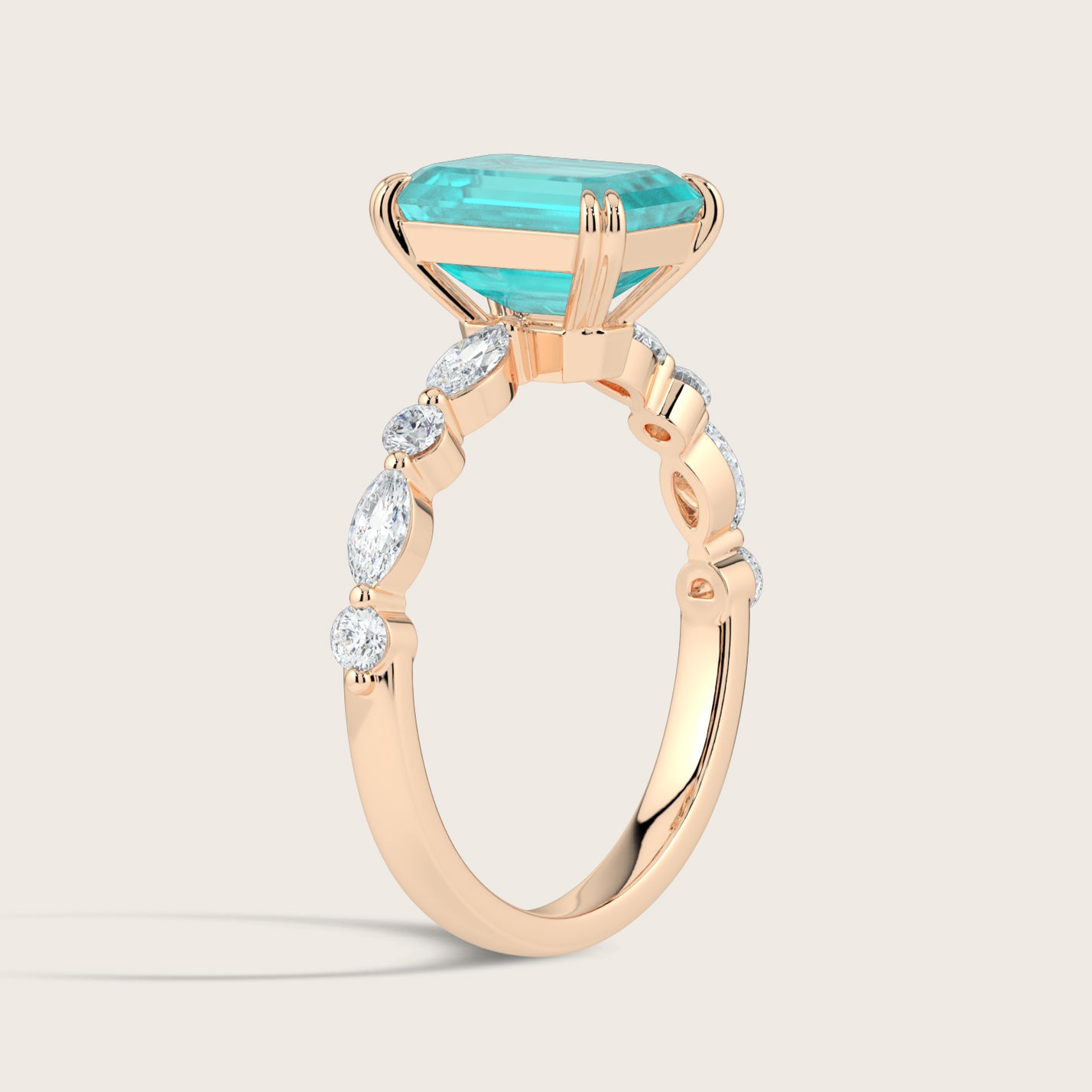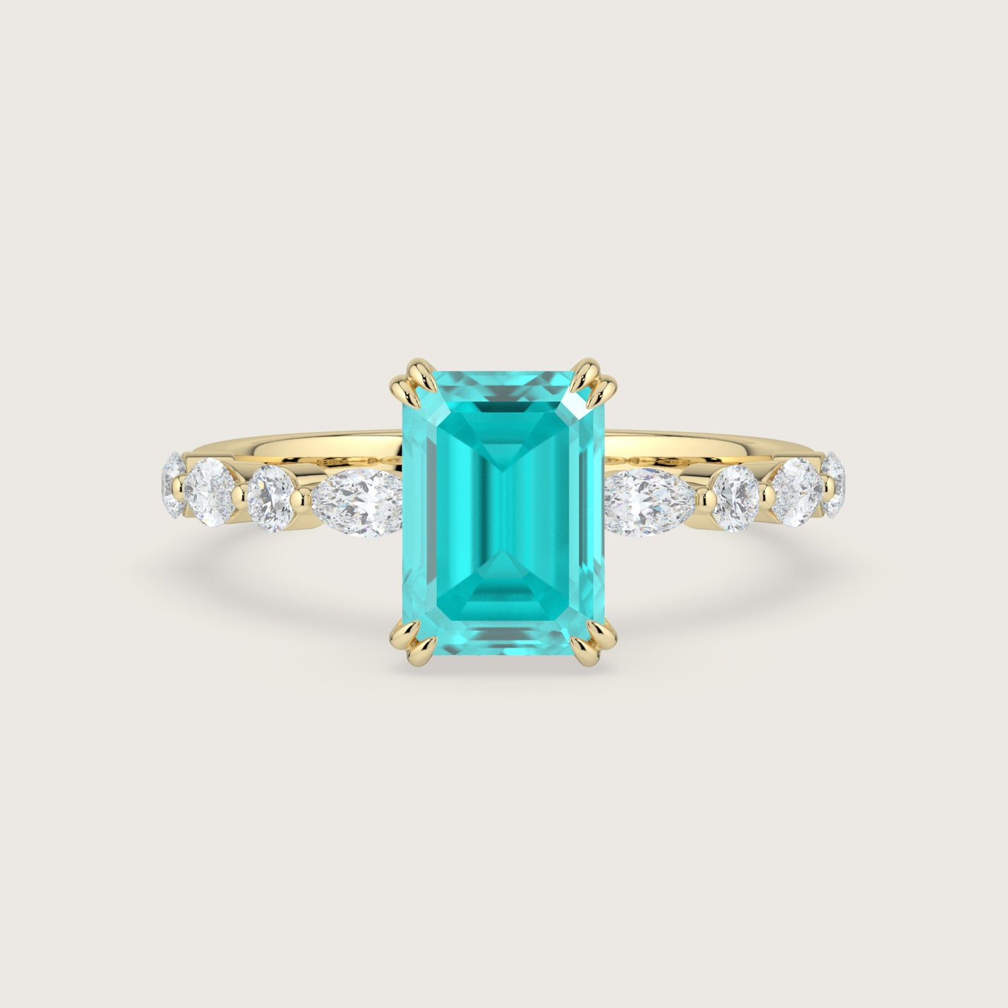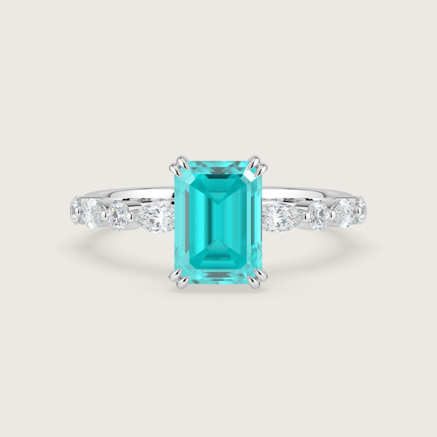 Chloe, Emerald Cut Paraiba Pavé Ring