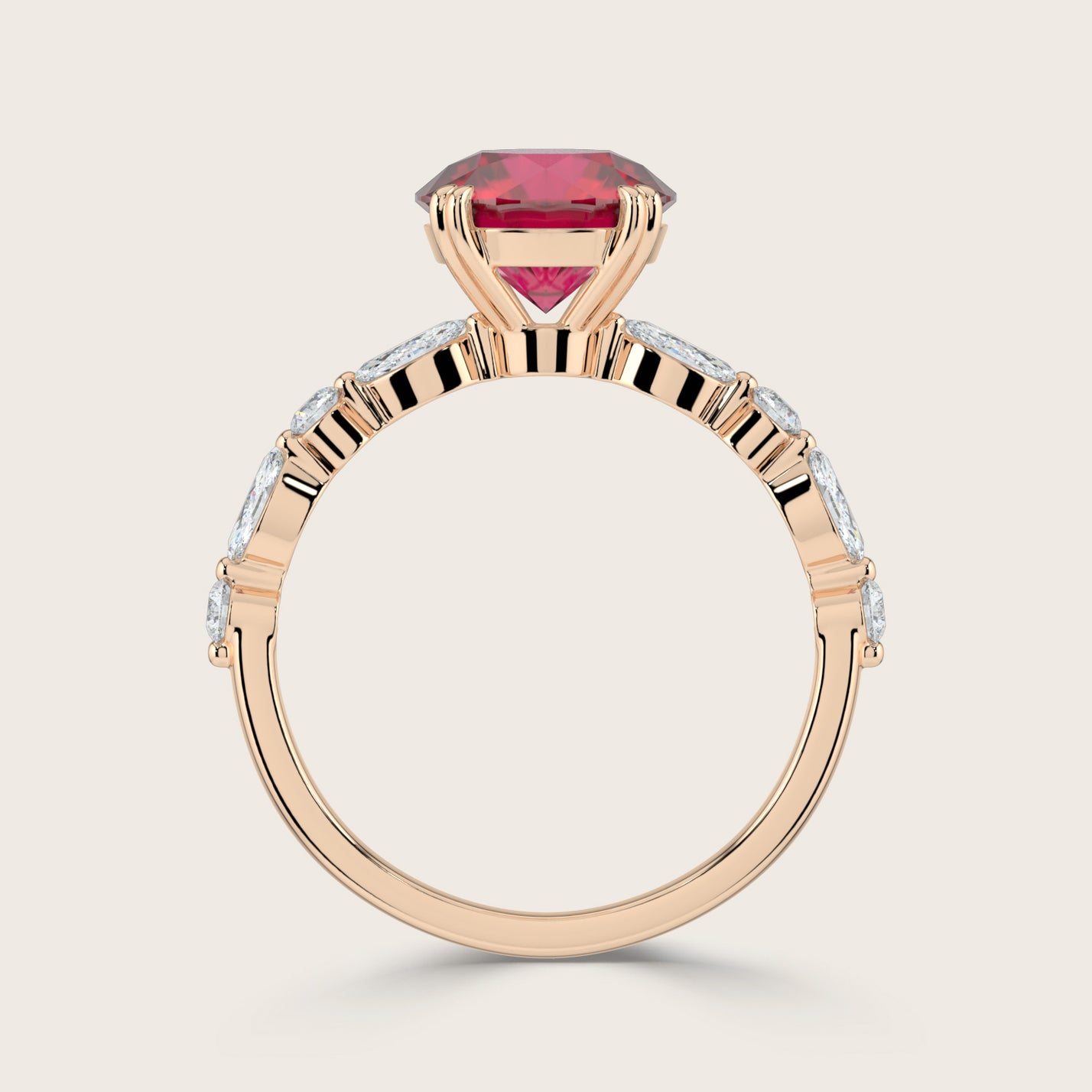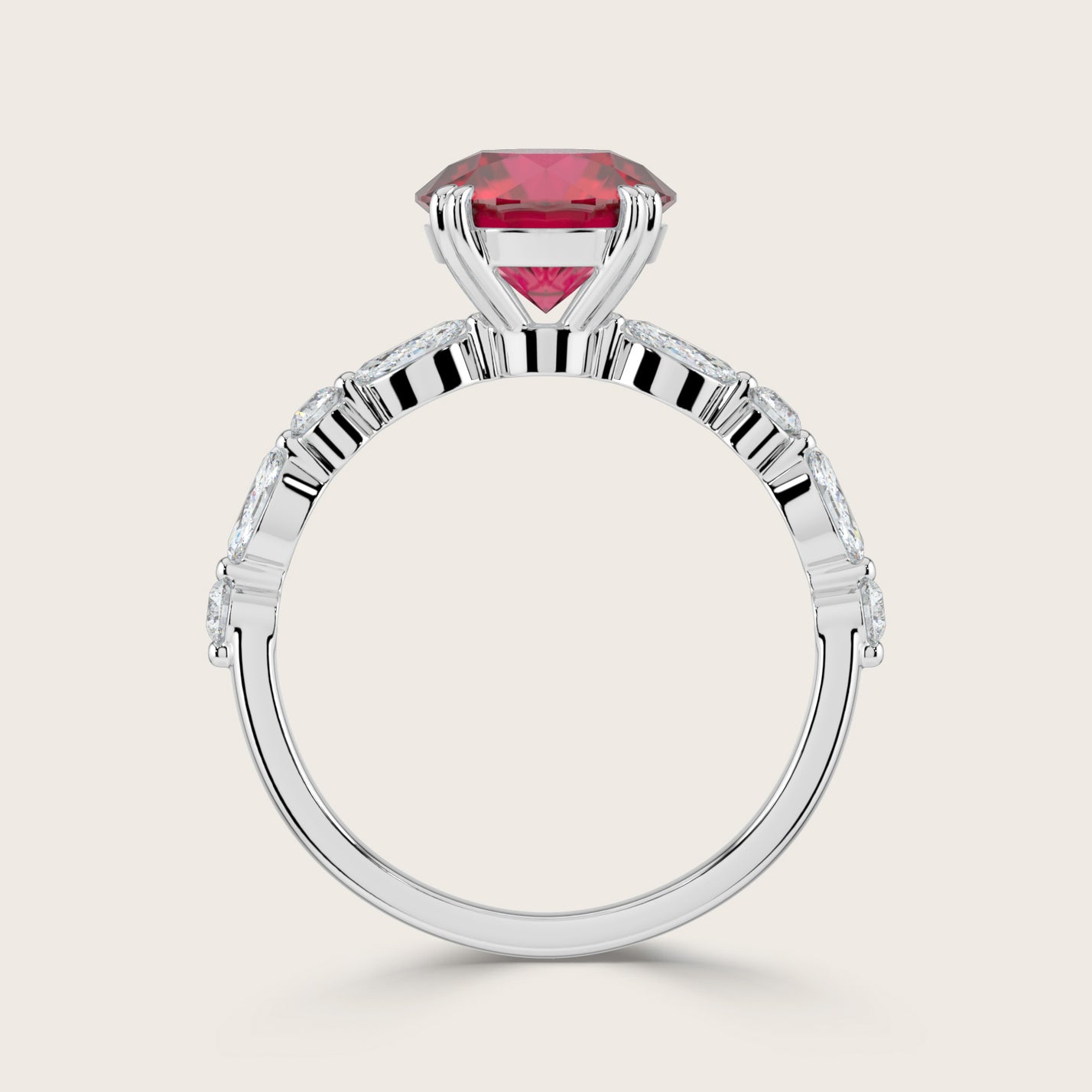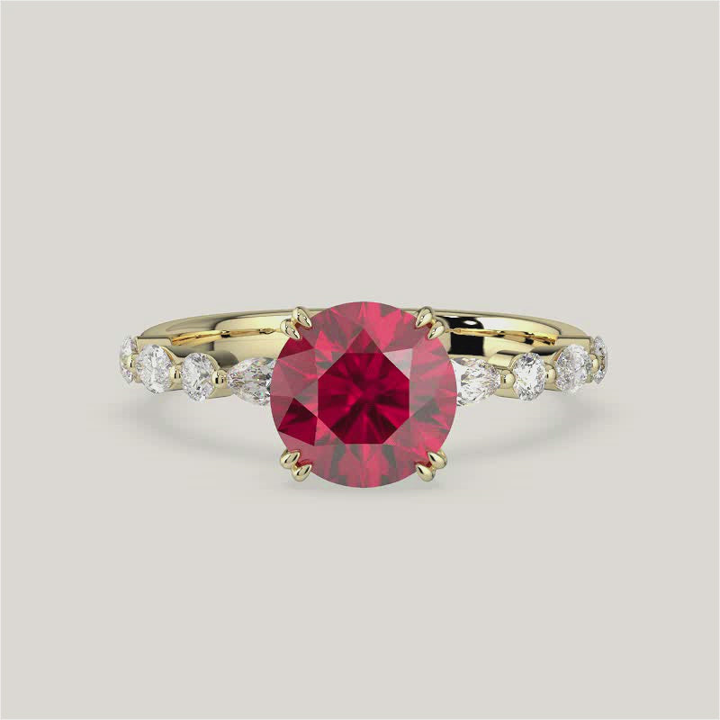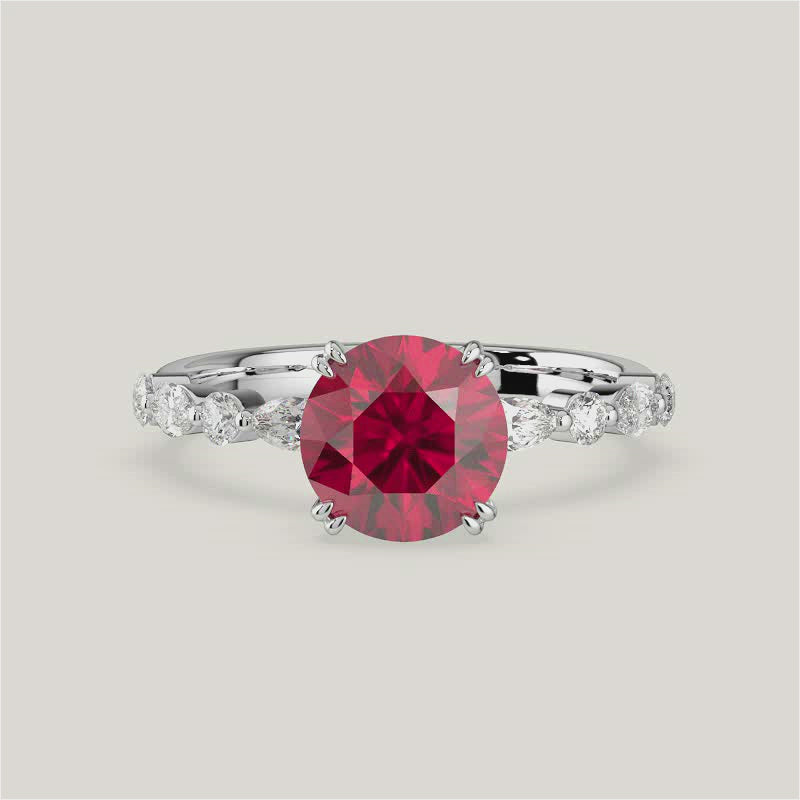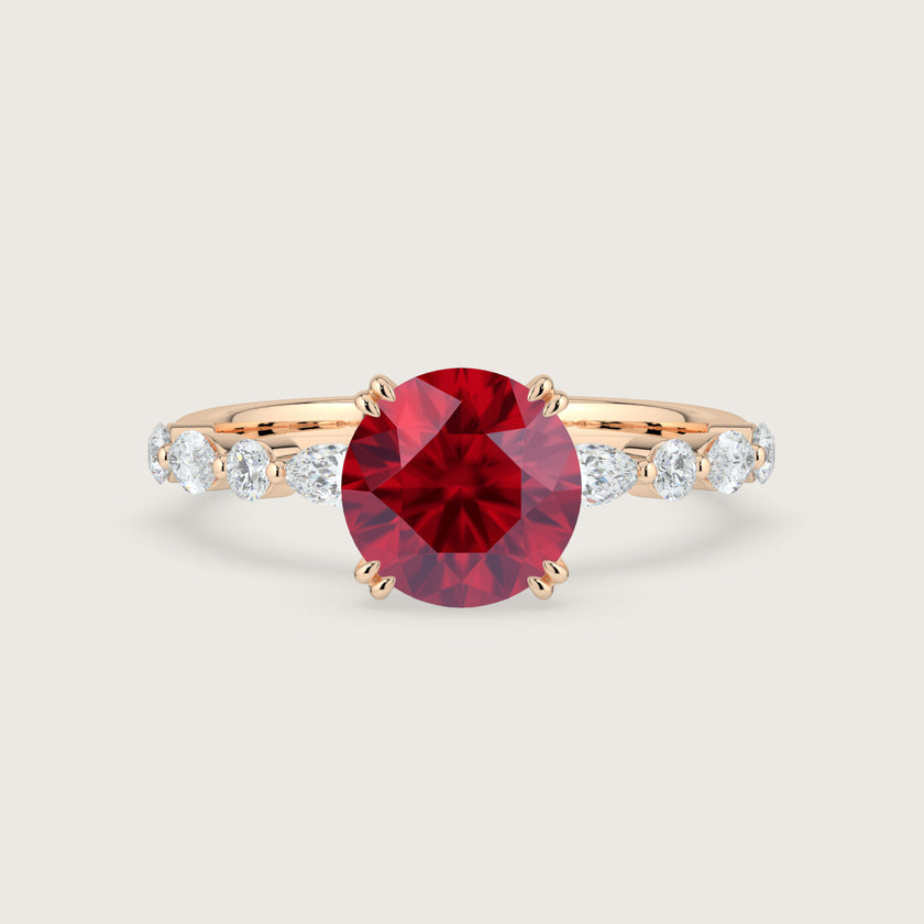 Chloe, Round Brilliant Ruby Pavé Ring
