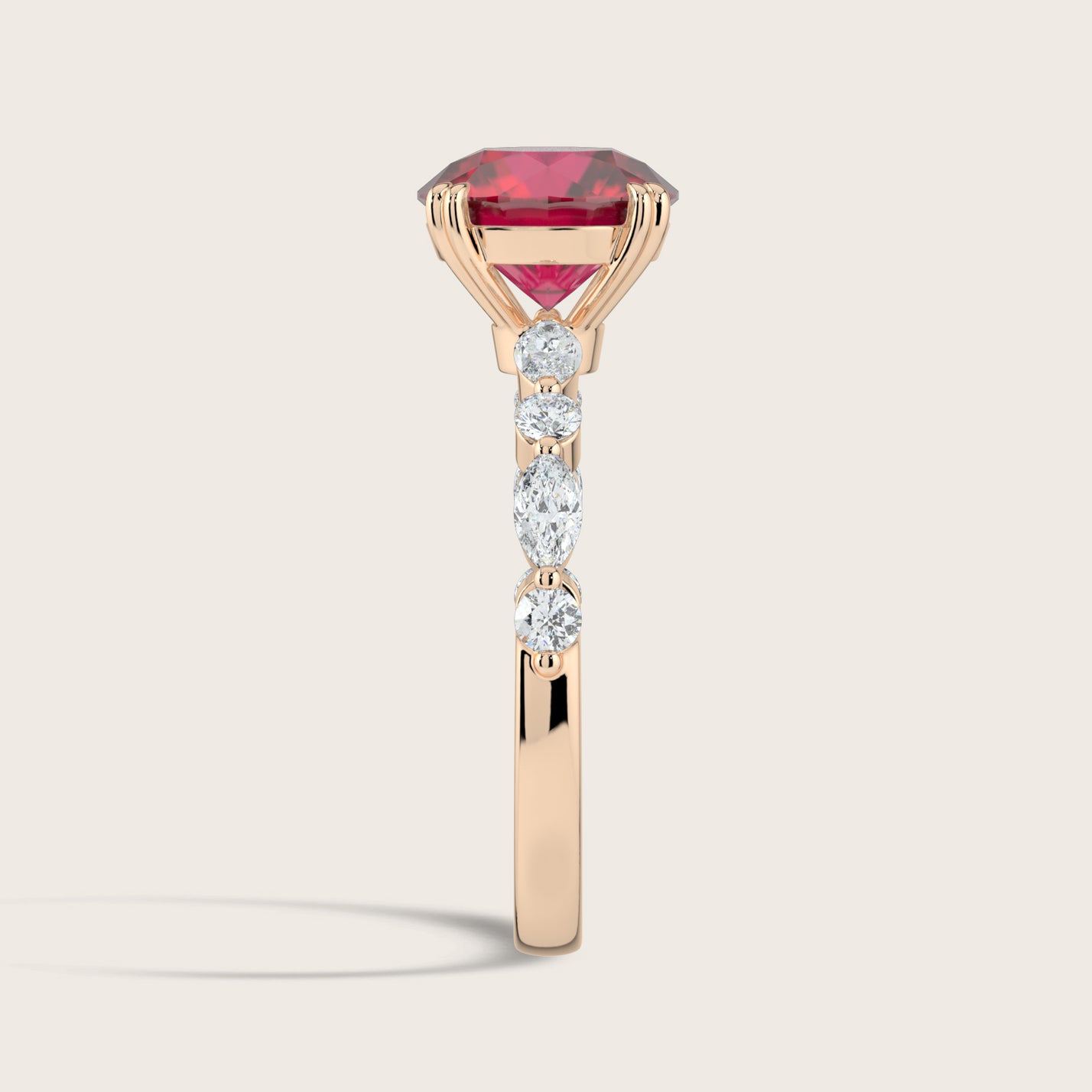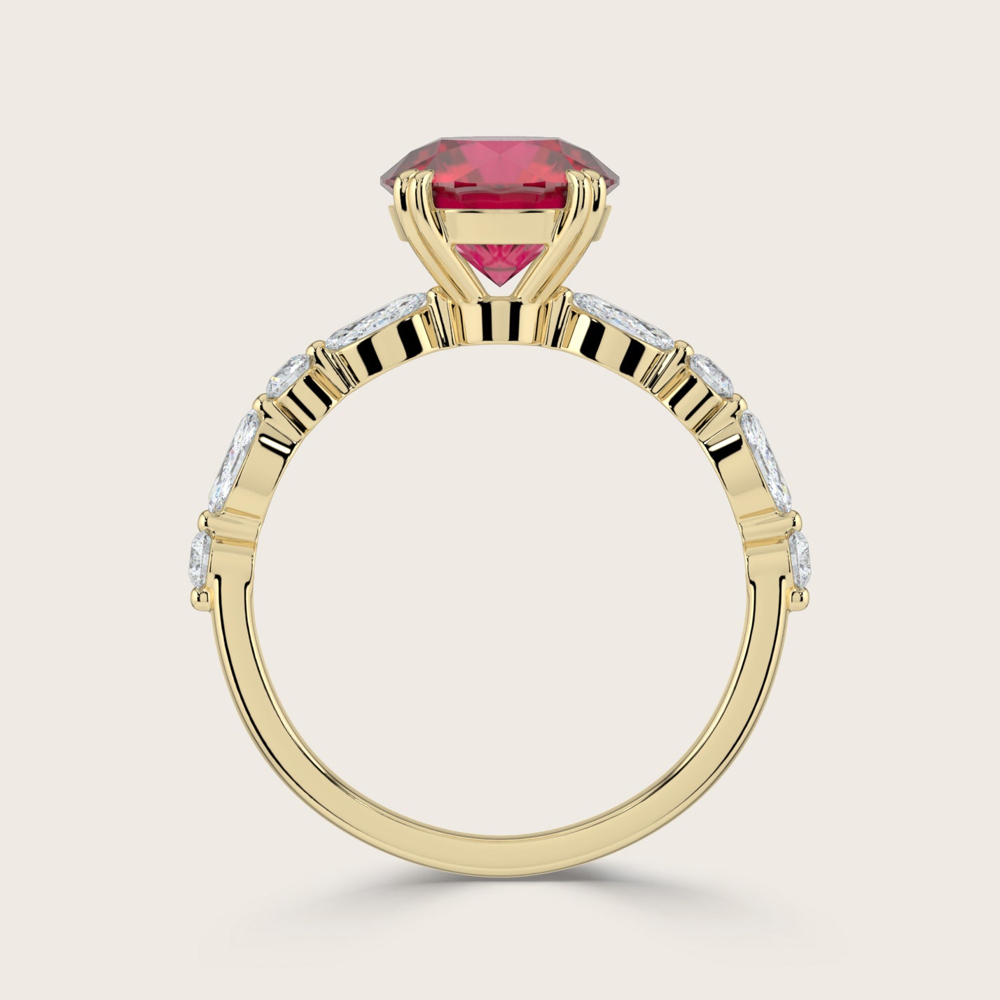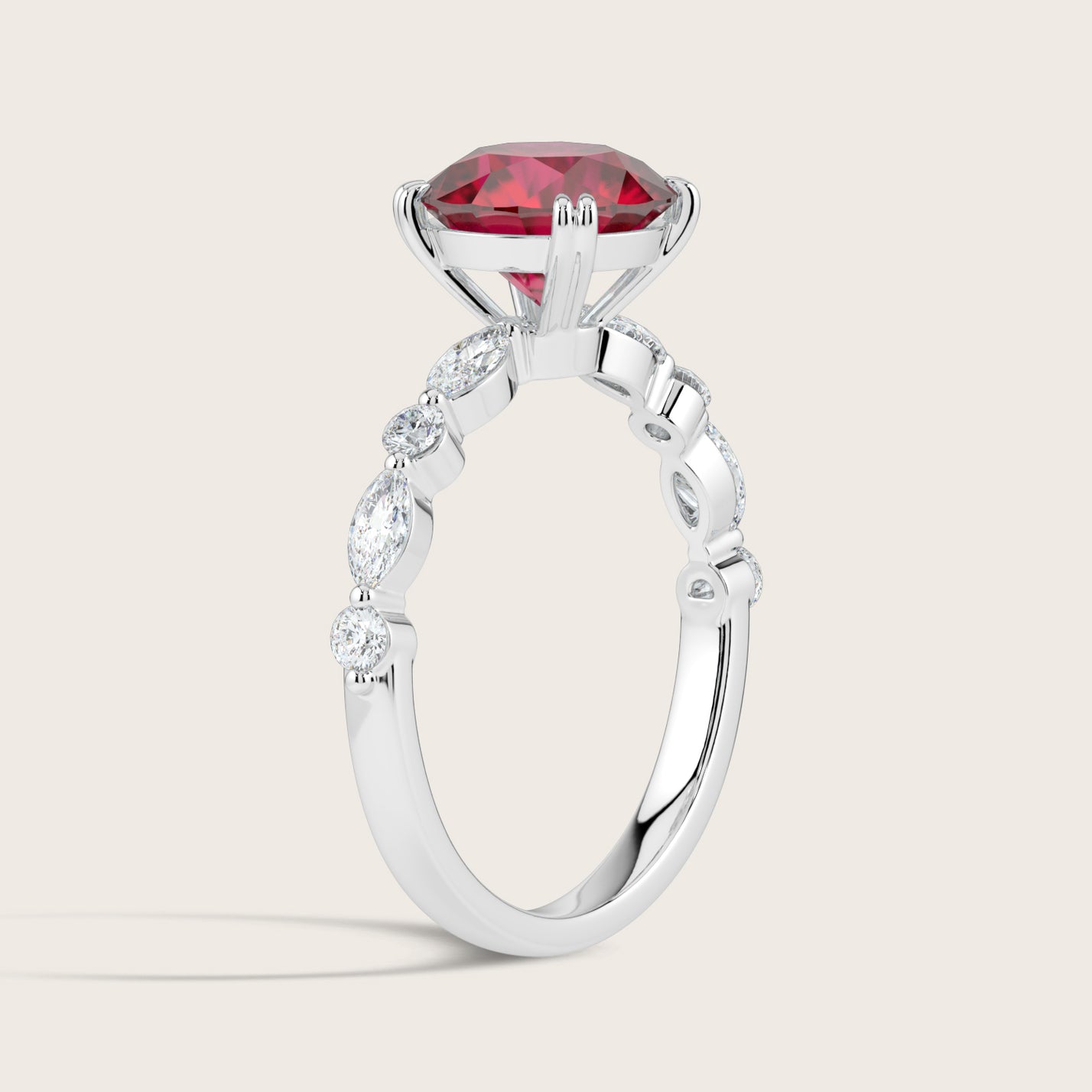 Chloe, Round Brilliant Ruby Pavé Ring