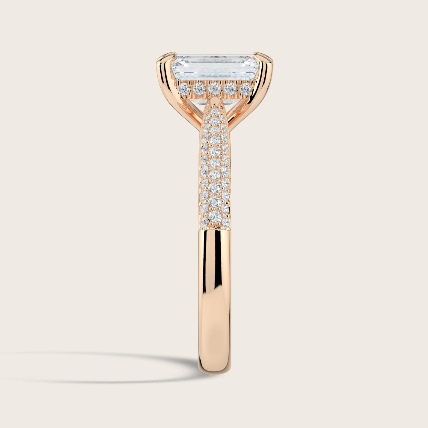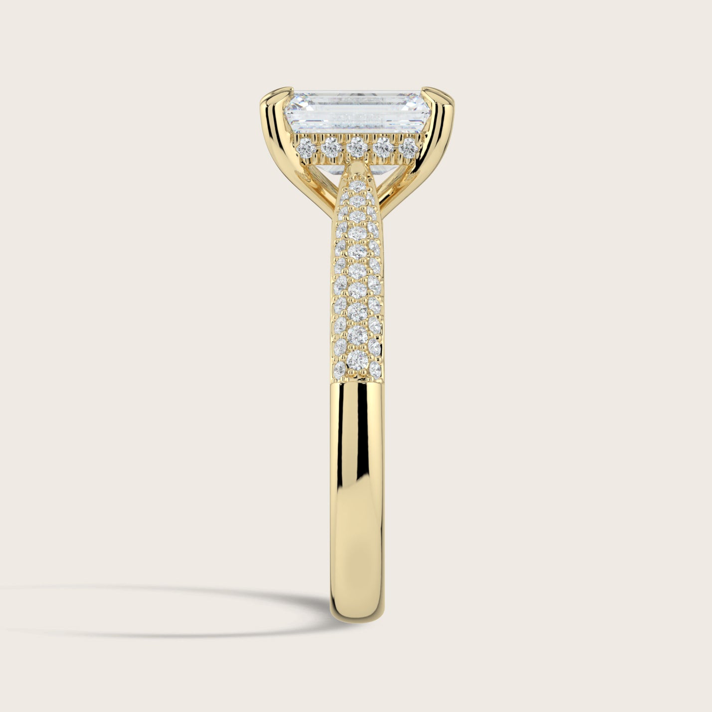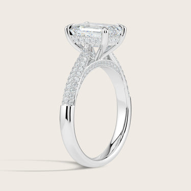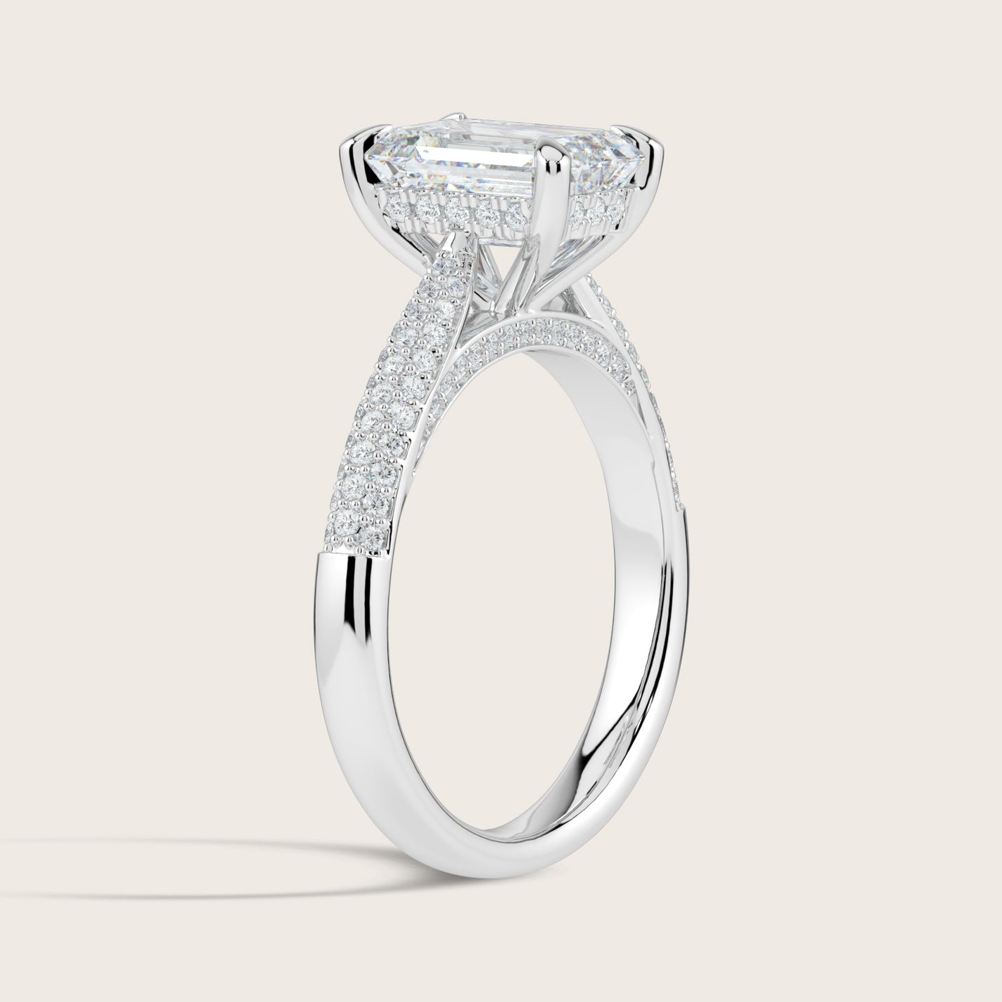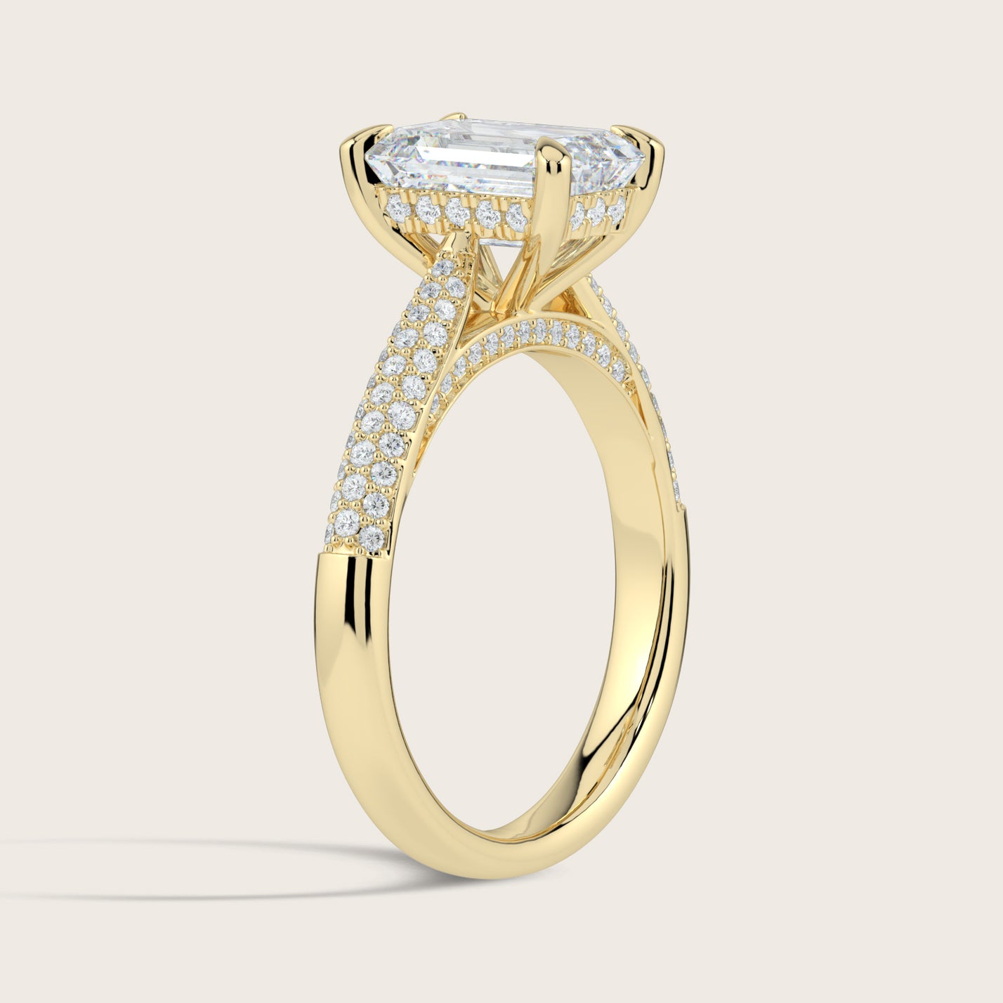 Clarisse, Emerald Cut Diamond Triple Pavé Ring with Hidden Halo