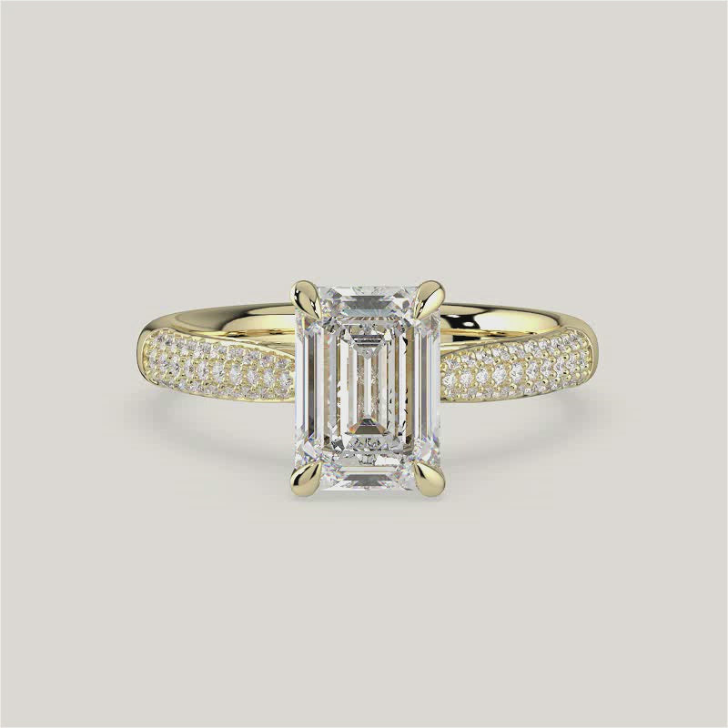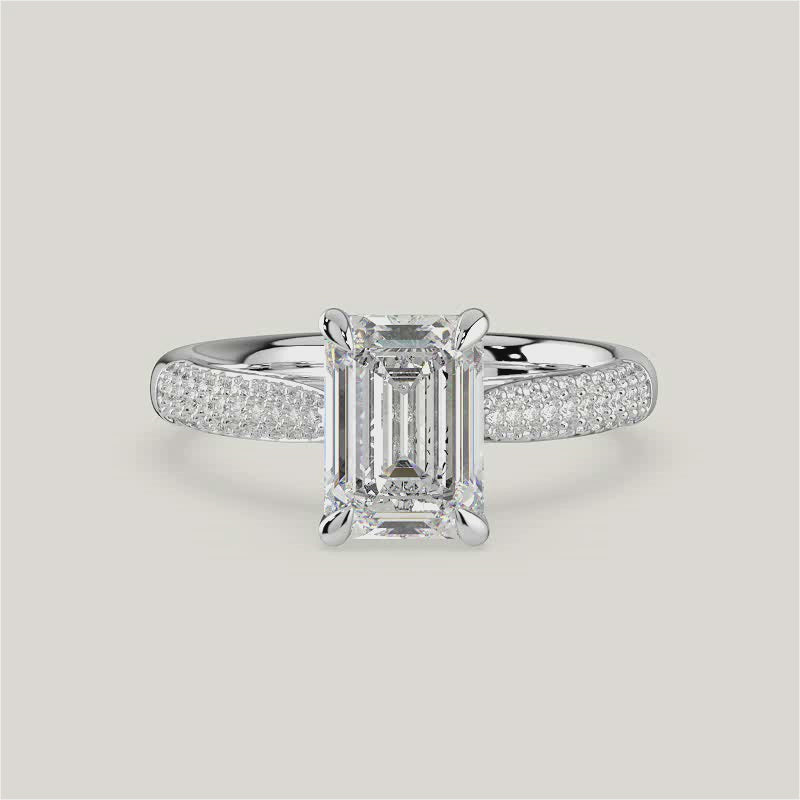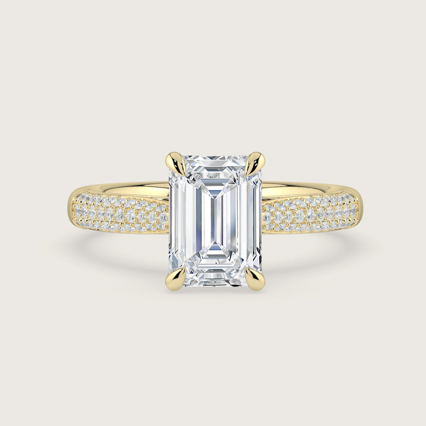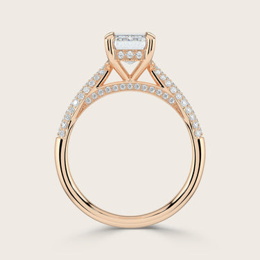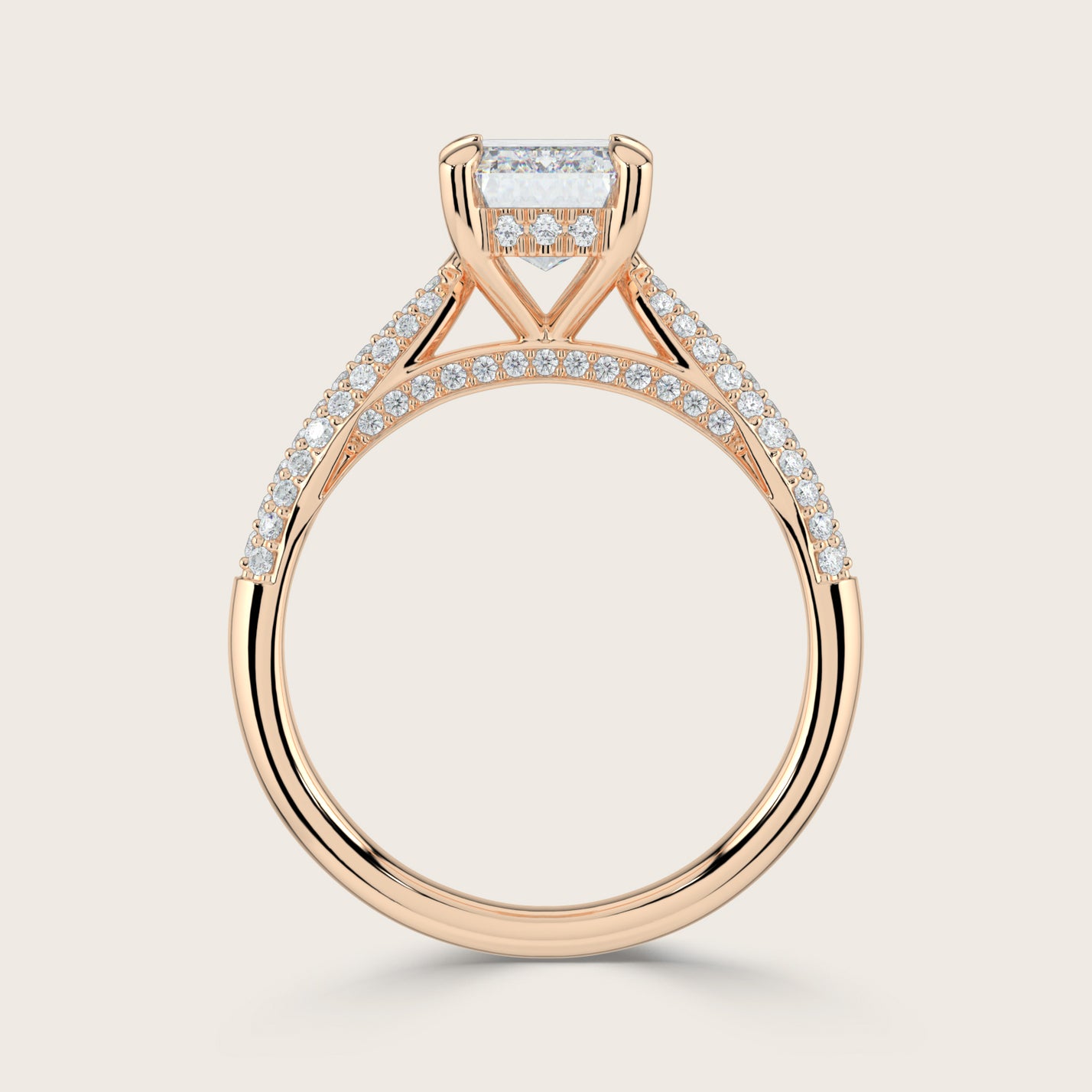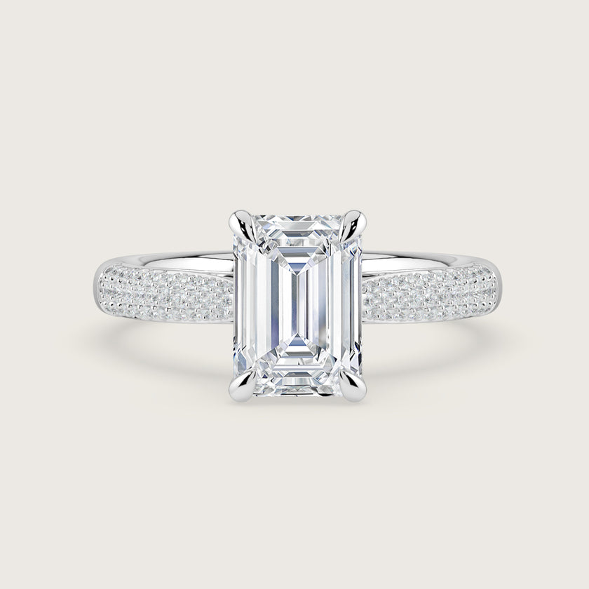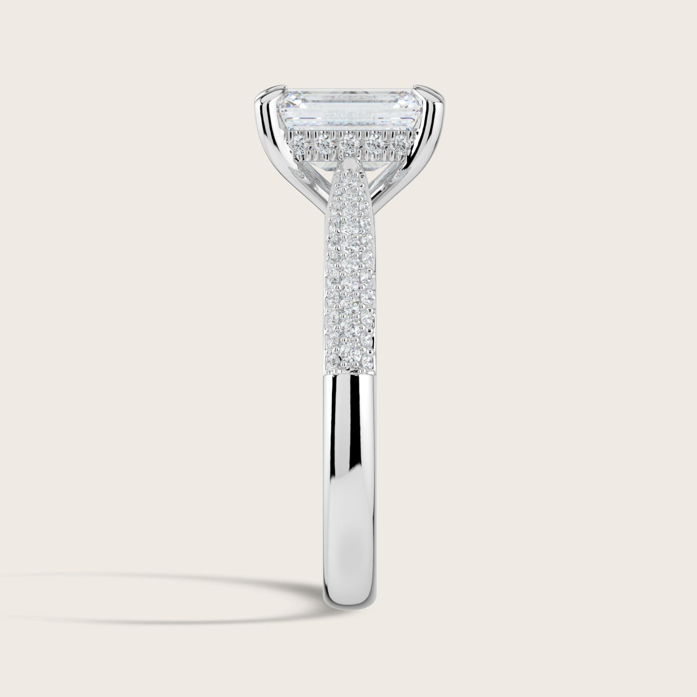 Clarisse, Emerald Cut Diamond Triple Pavé Ring with Hidden Halo