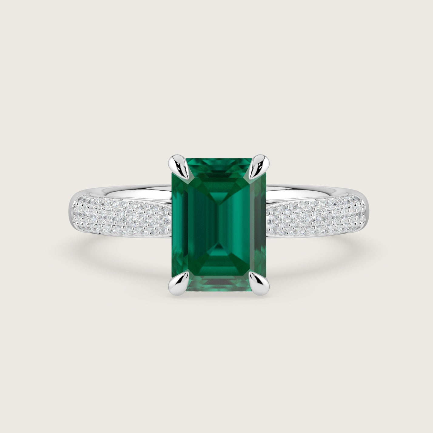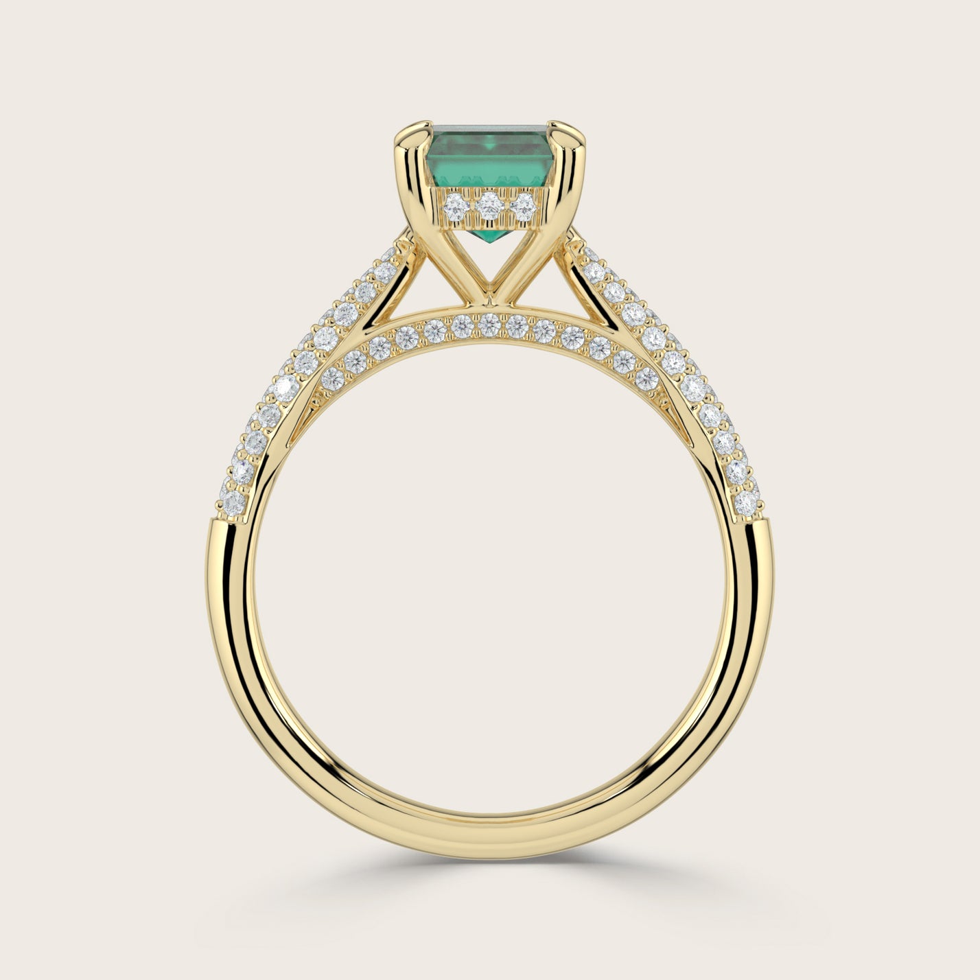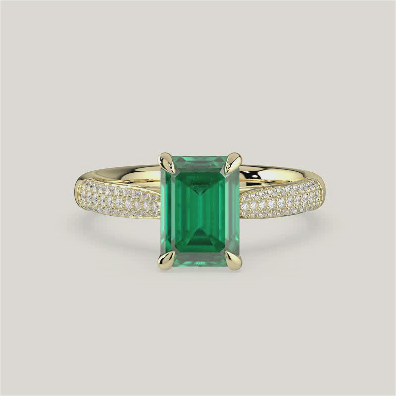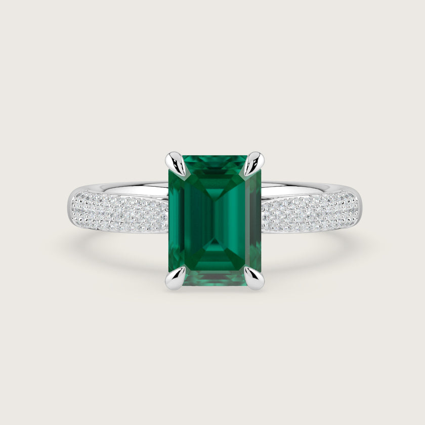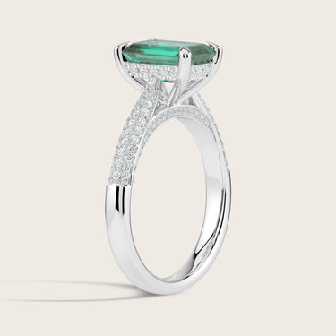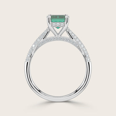 Clarisse, Emerald Cut Emerald Triple Pavé Ring with Hidden Halo