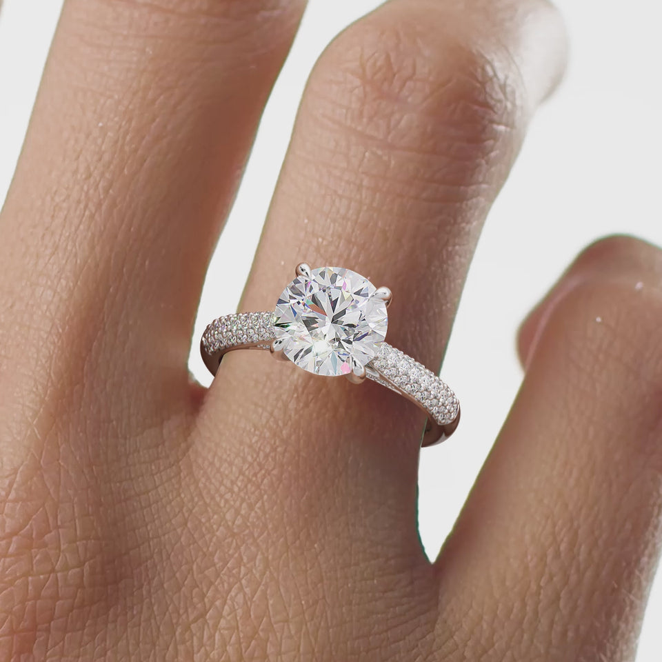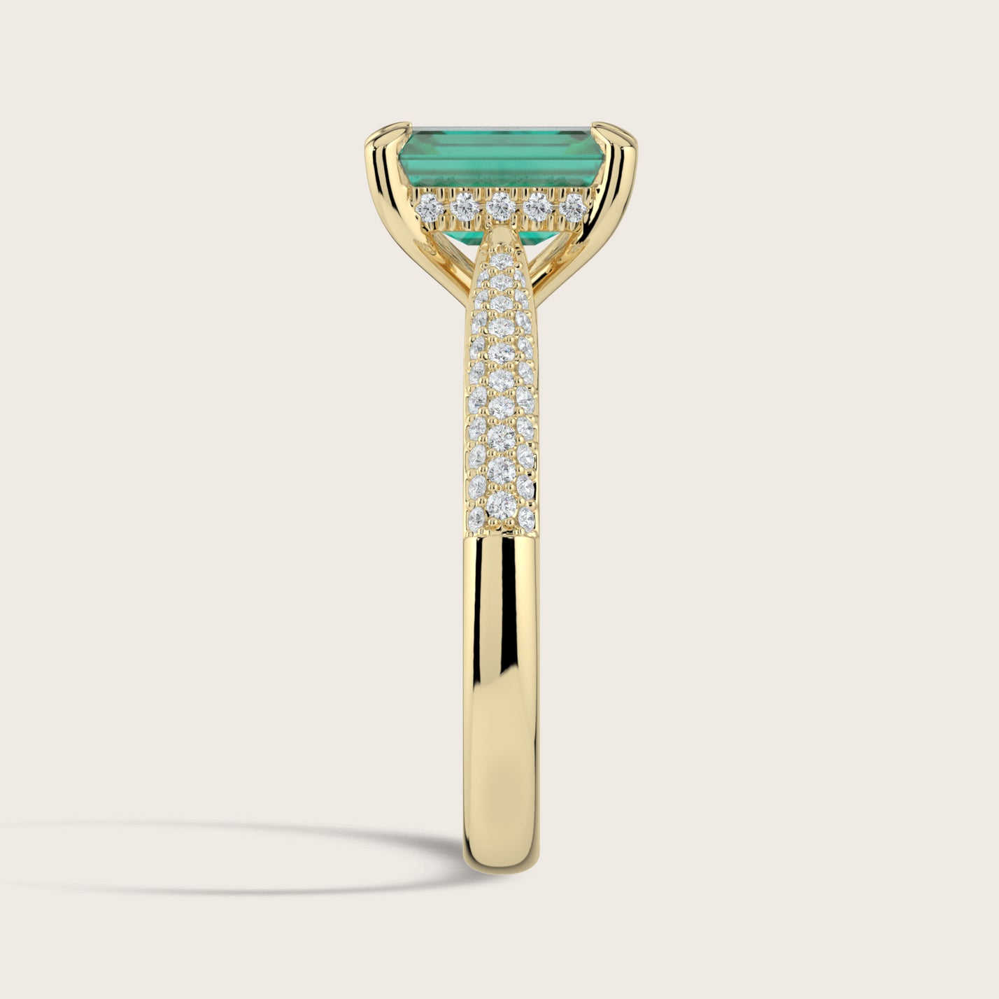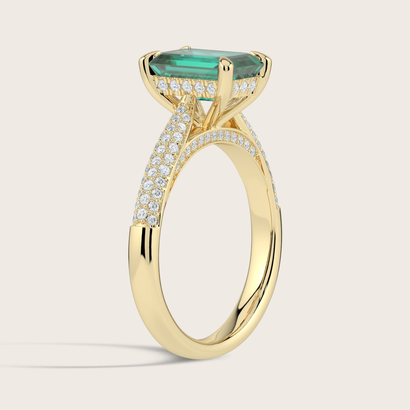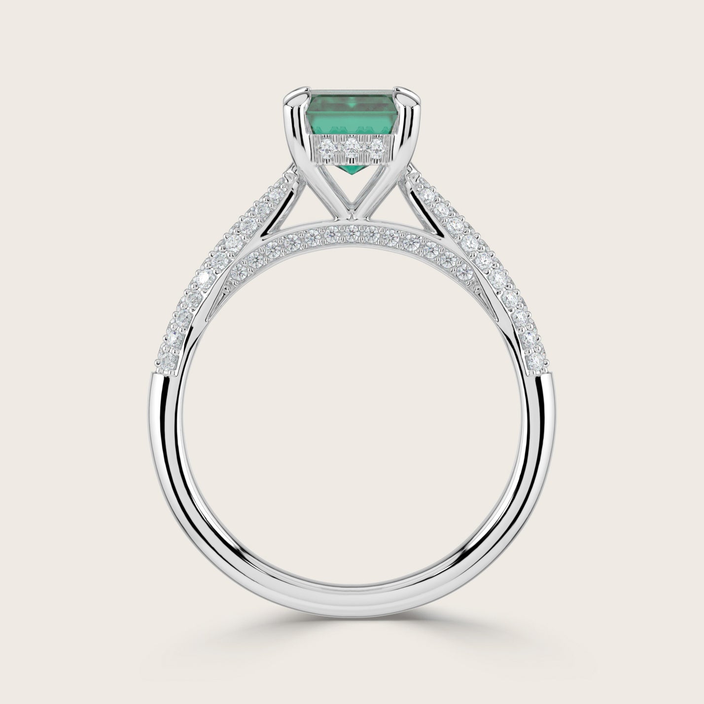 Clarisse, Emerald Cut Emerald Triple Pavé Ring with Hidden Halo