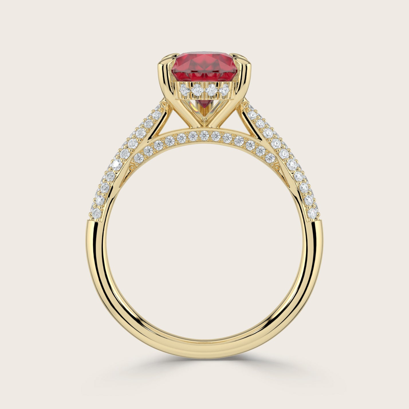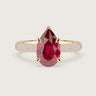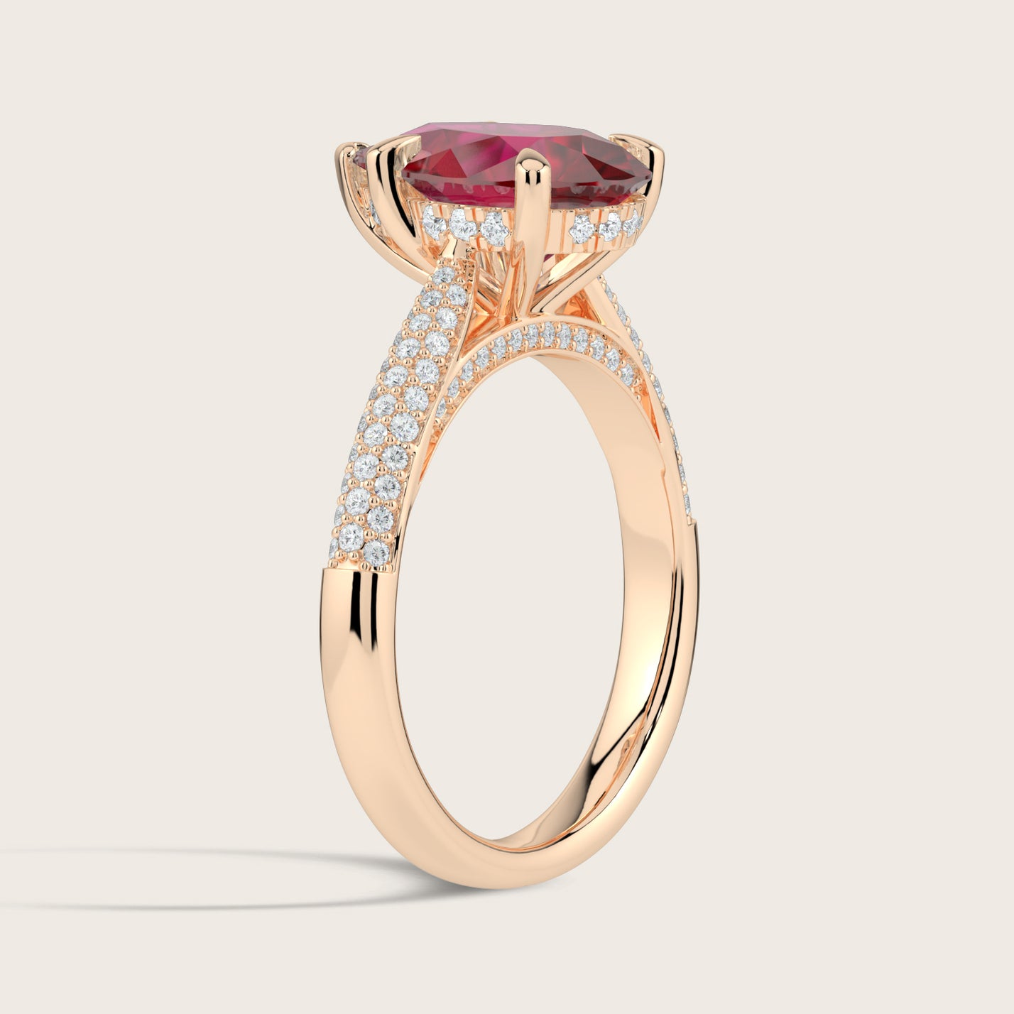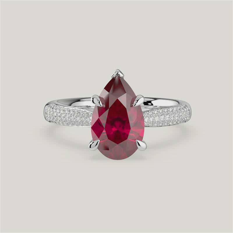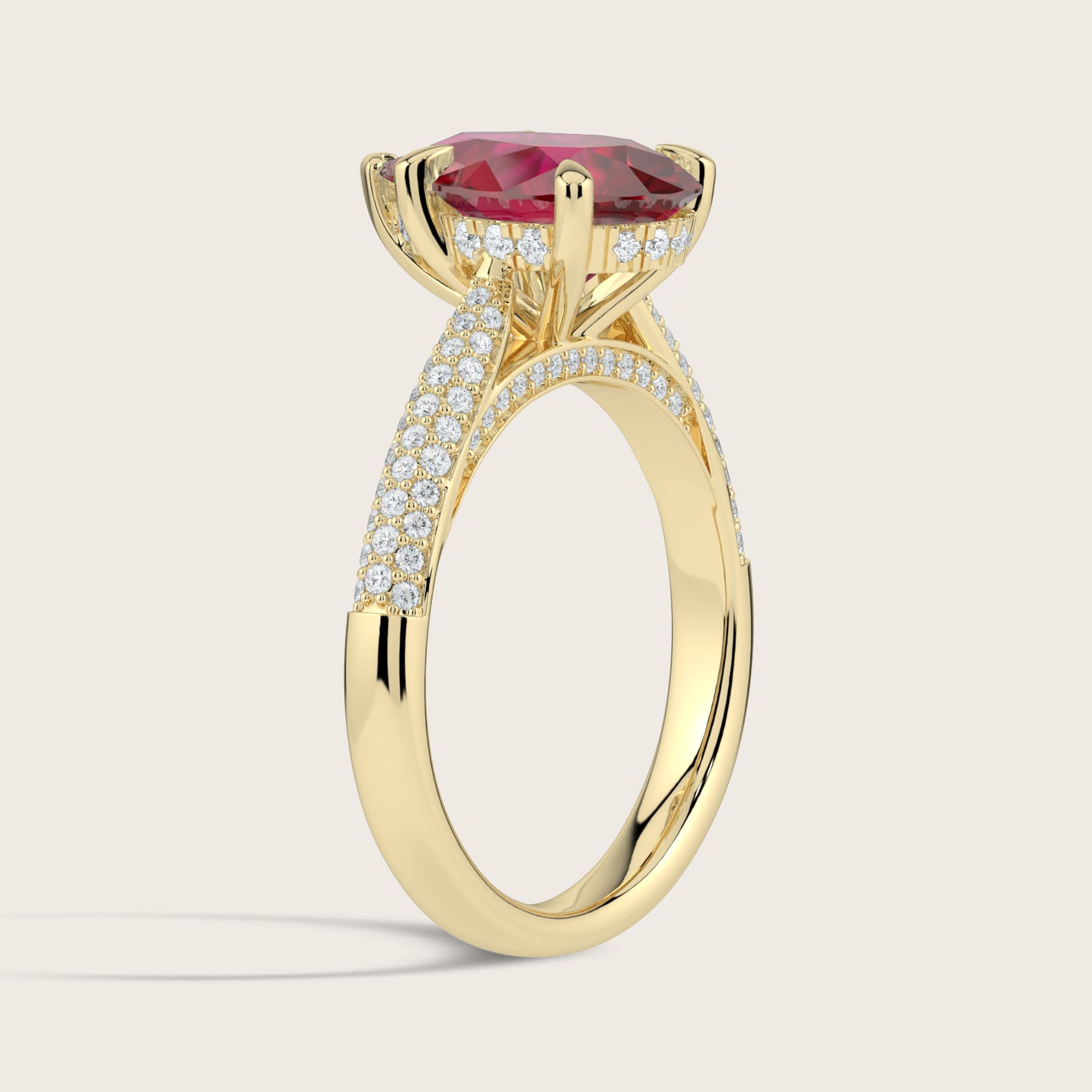Clarisse, Pear Cut Ruby Triple Pavé Ring with Hidden Halo