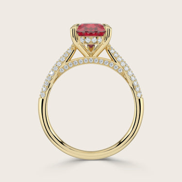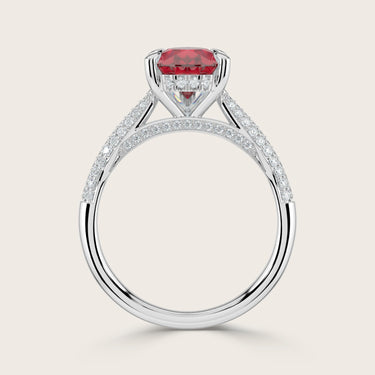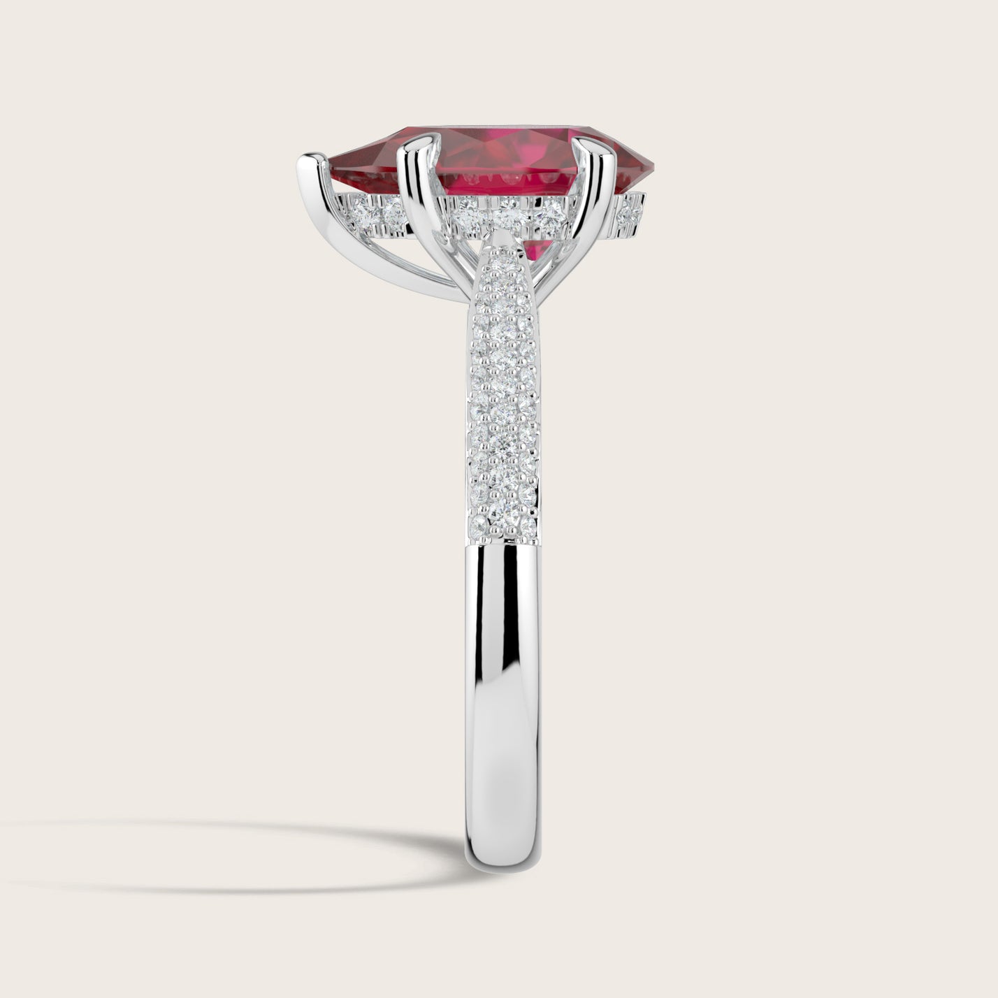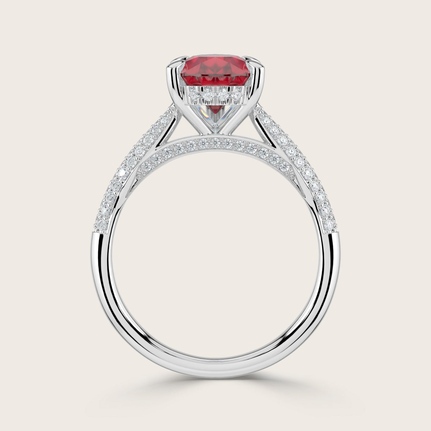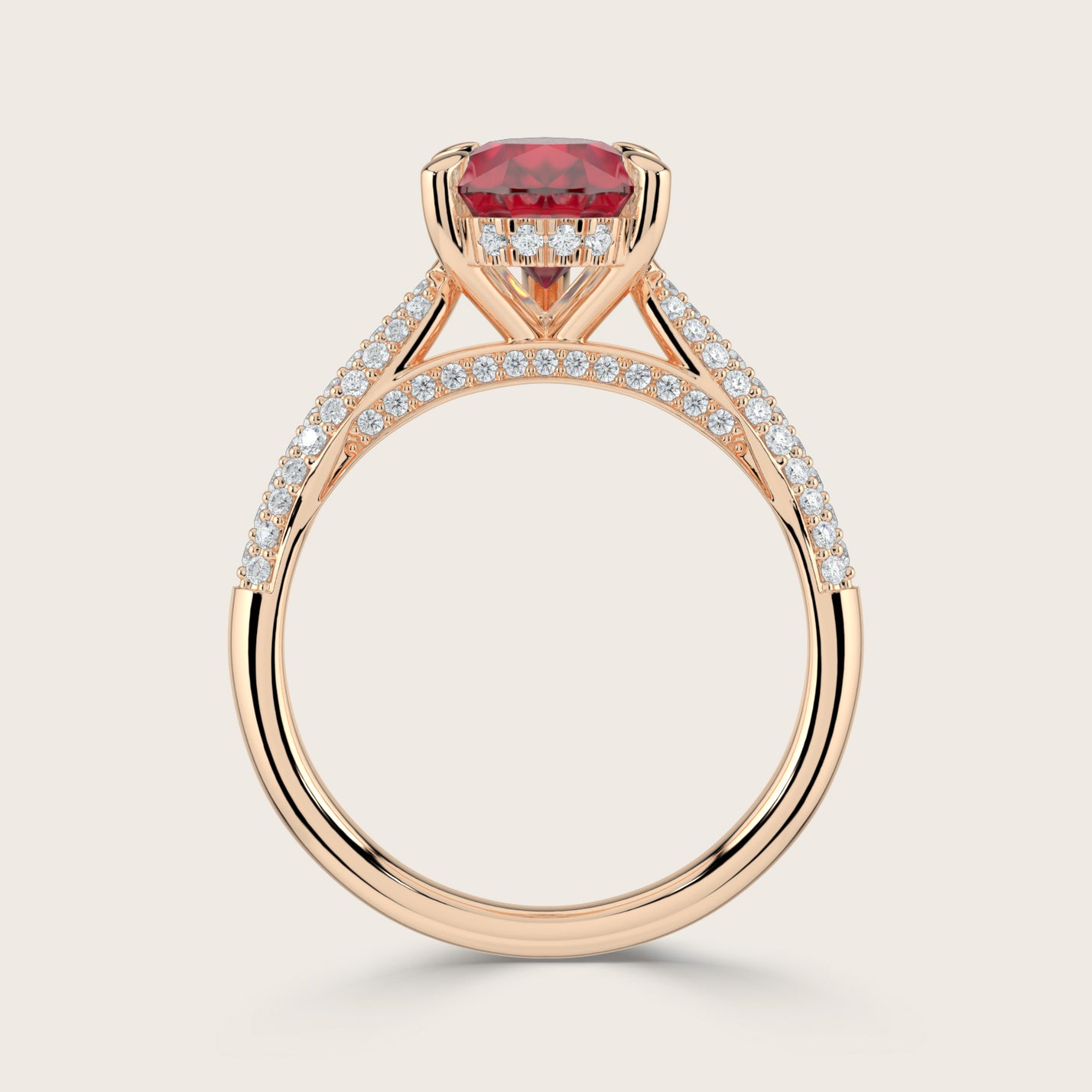 Clarisse, Pear Cut Ruby Triple Pavé Ring with Hidden Halo