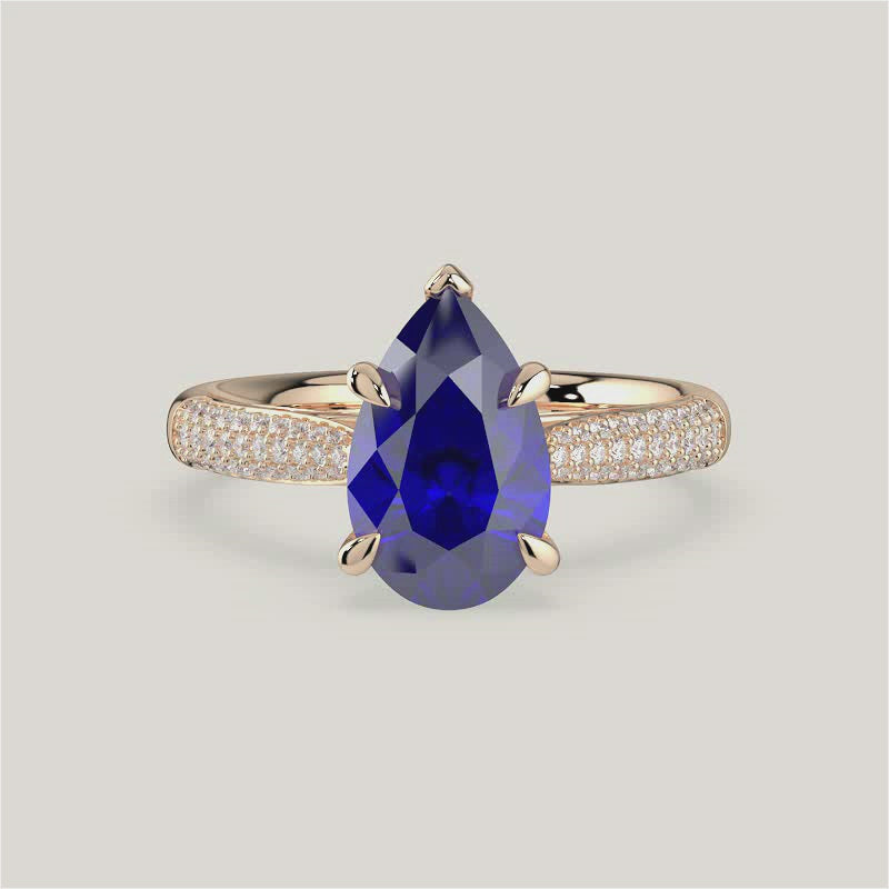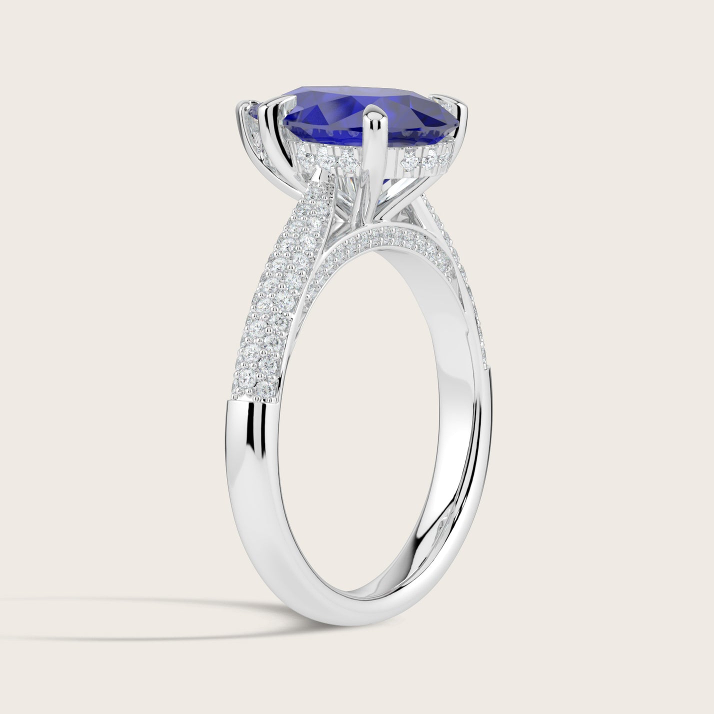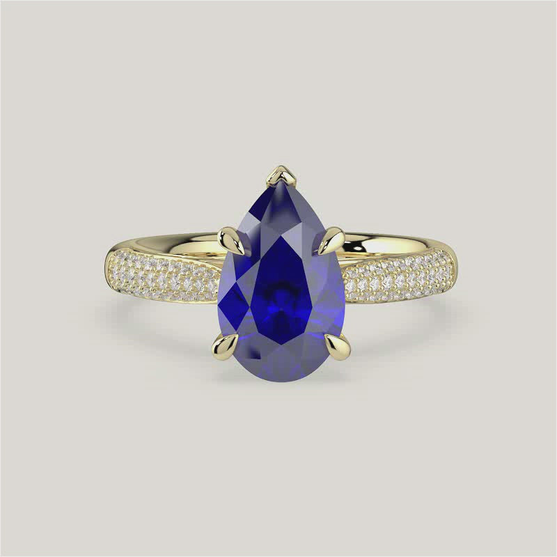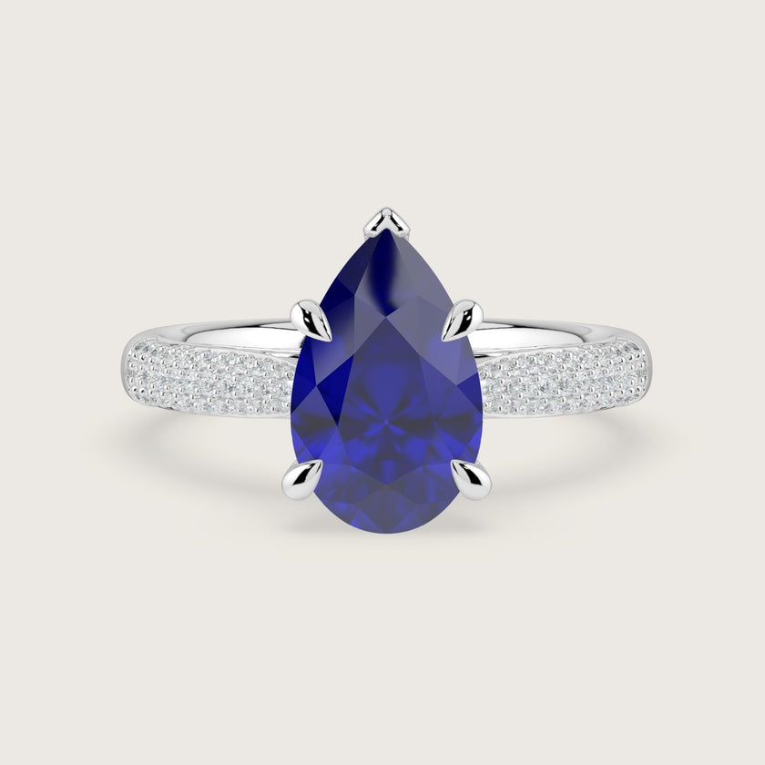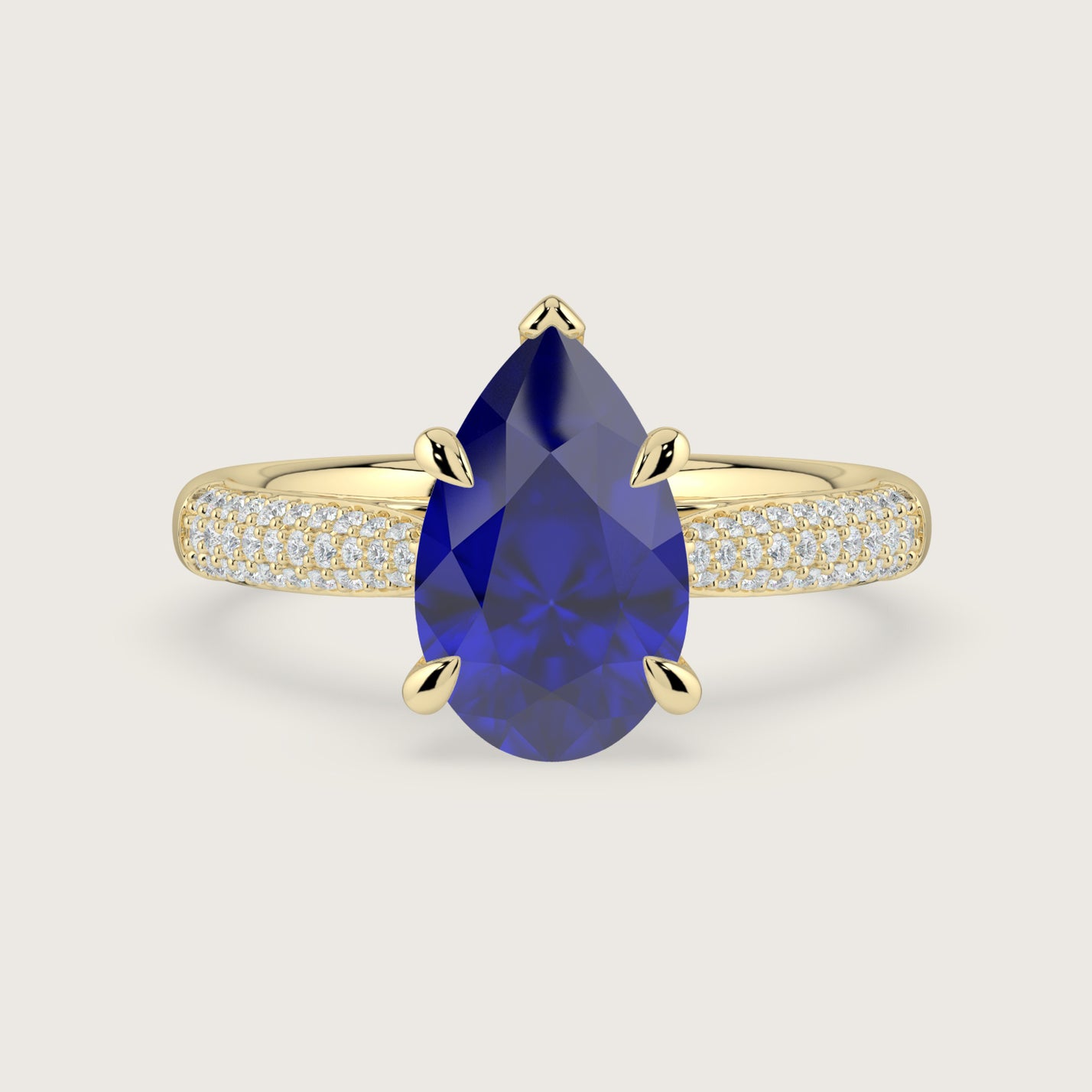 Clarisse, Pear Cut Sapphire Triple Pavé Ring with Hidden Halo
