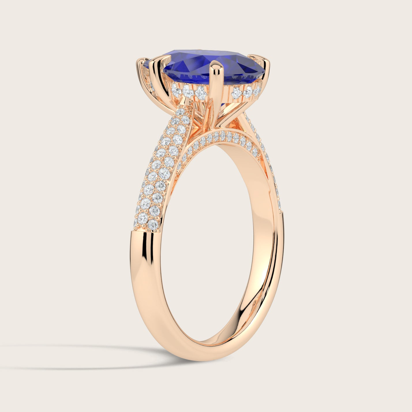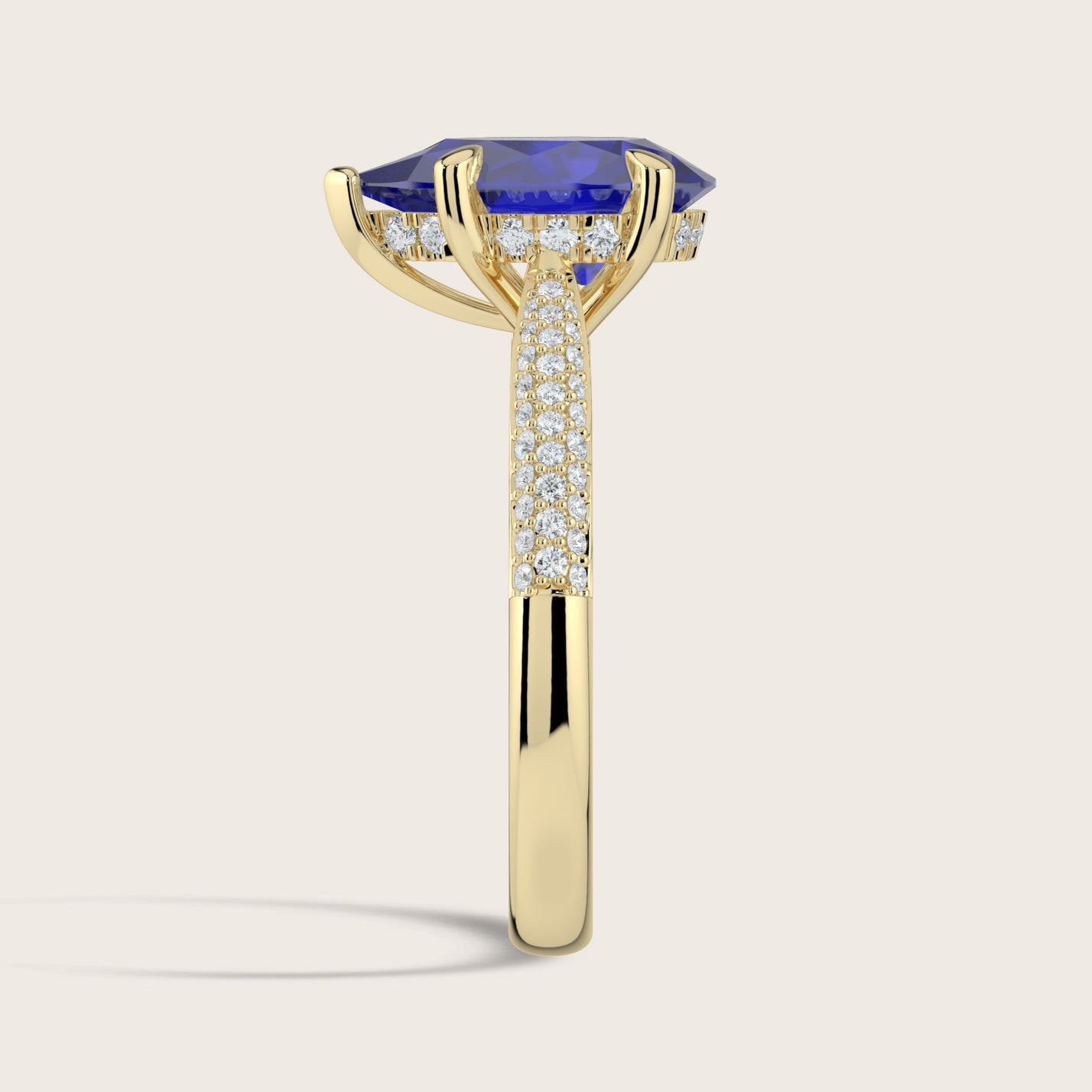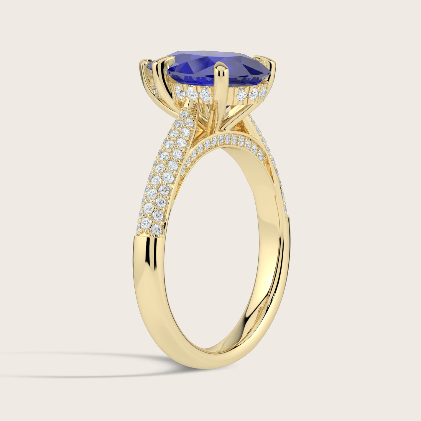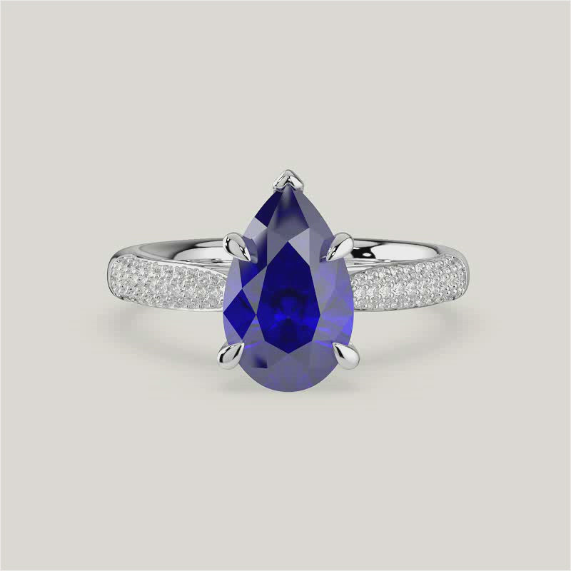 Clarisse, Pear Cut Sapphire Triple Pavé Ring with Hidden Halo