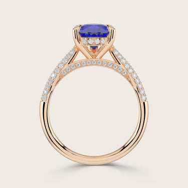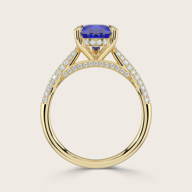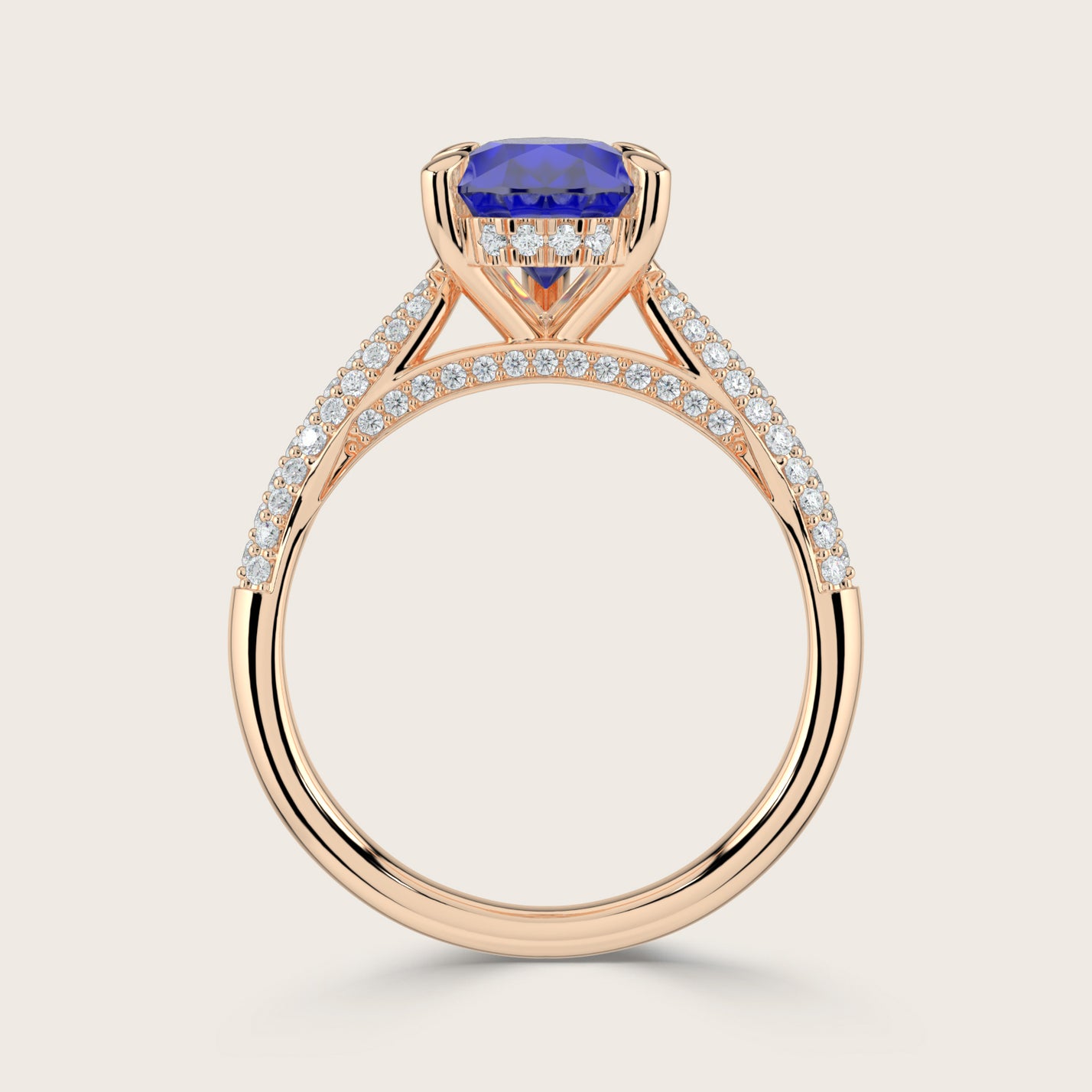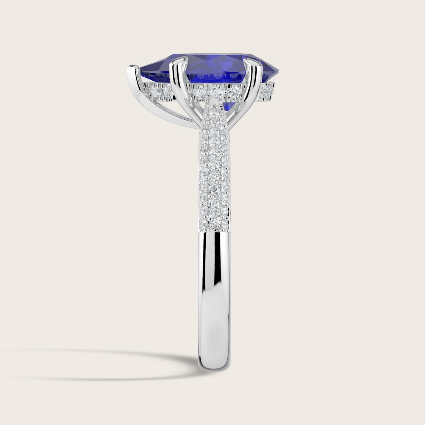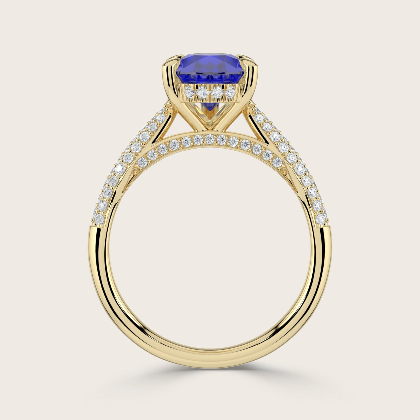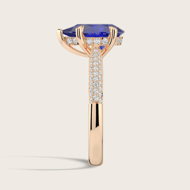 Clarisse, Pear Cut Sapphire Triple Pavé Ring with Hidden Halo