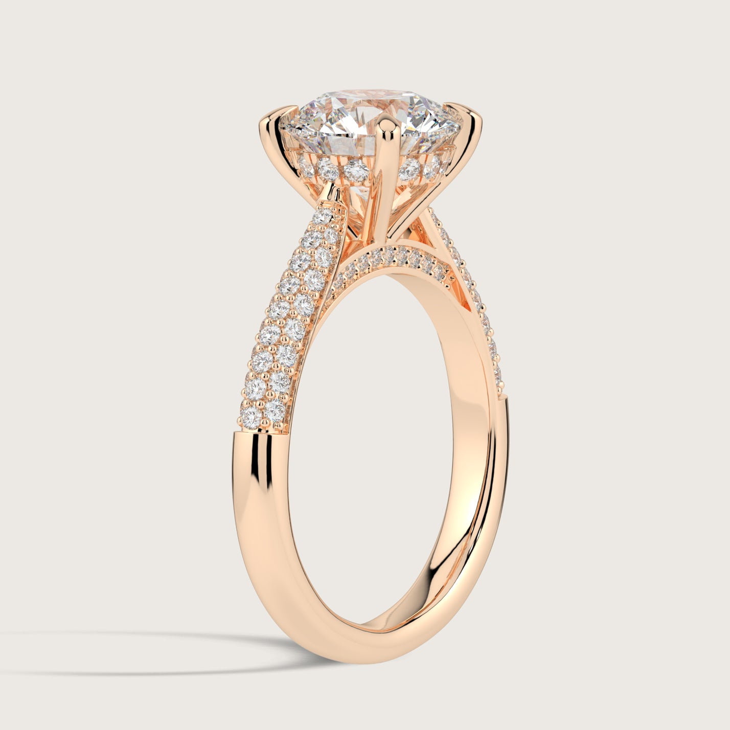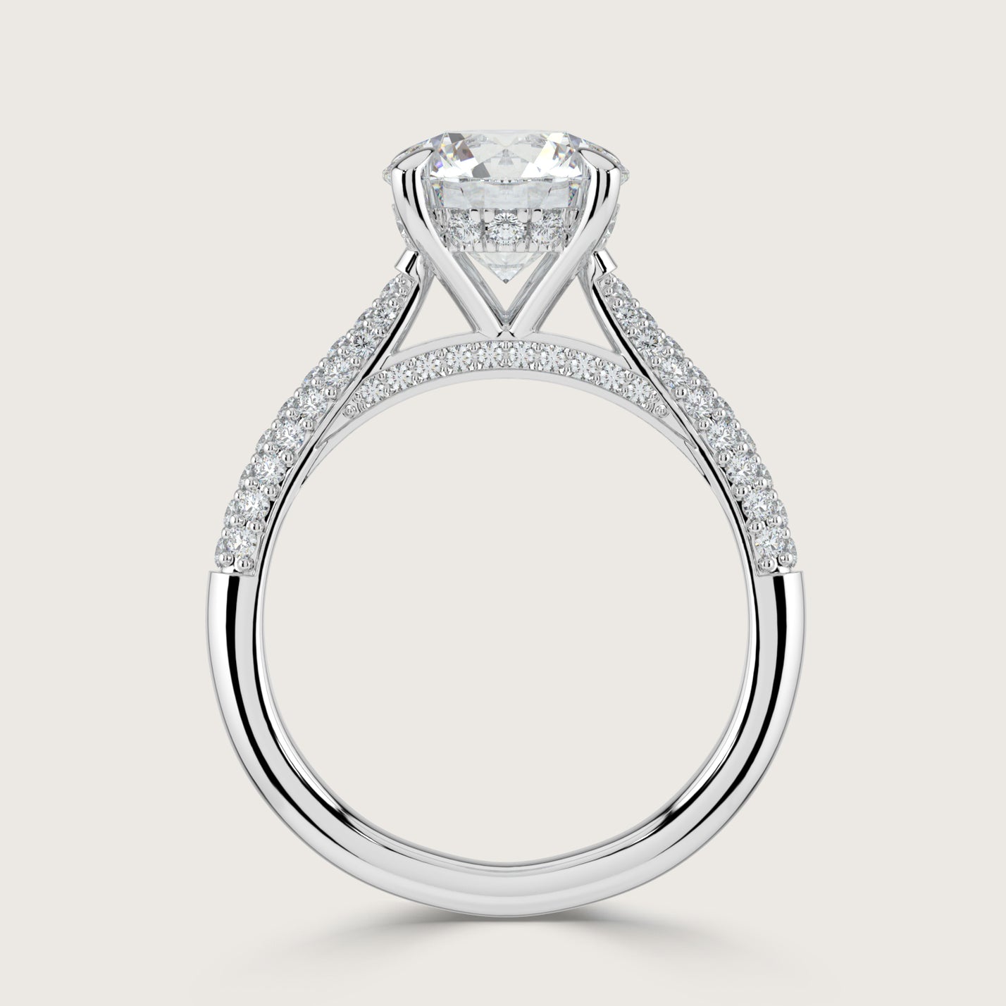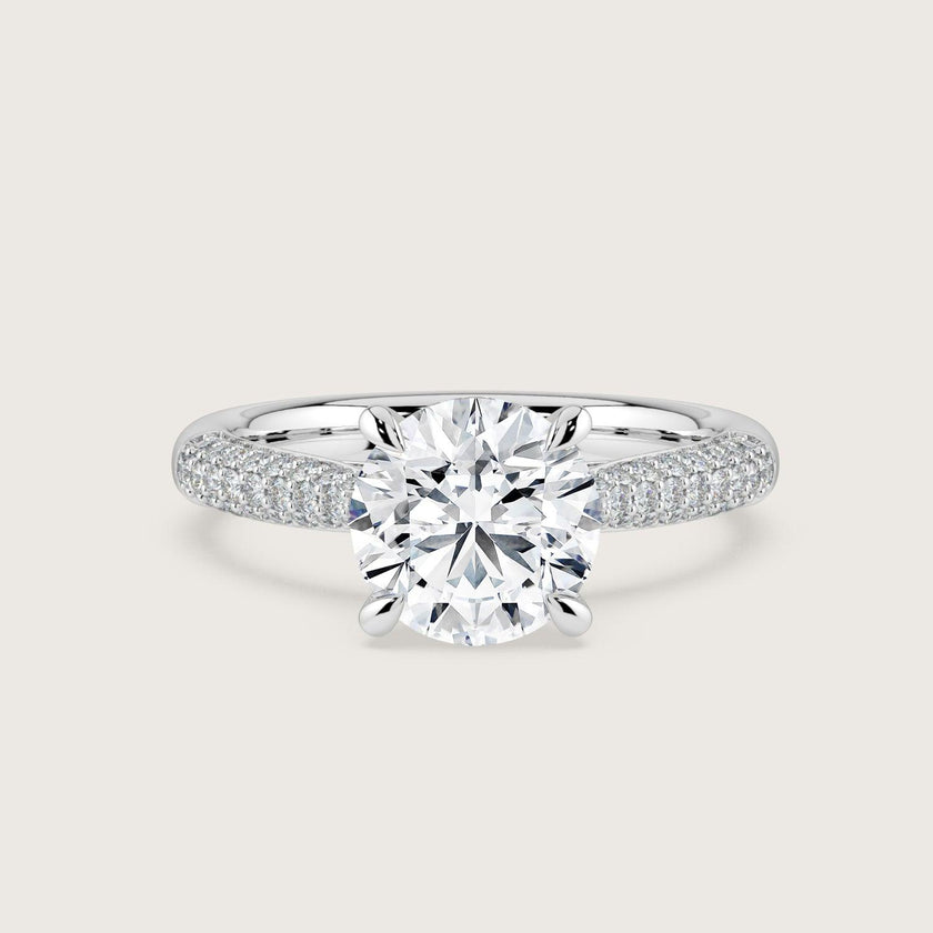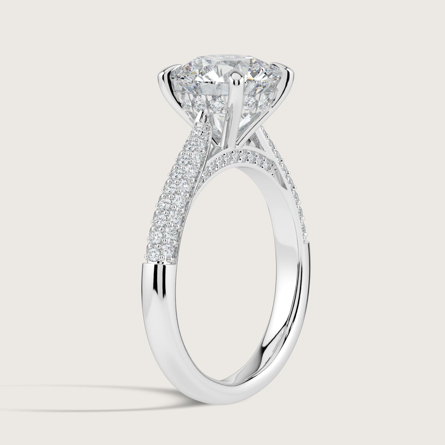 Clarisse, Round Brilliant Diamond Triple Pavé Ring with Hidden Halo