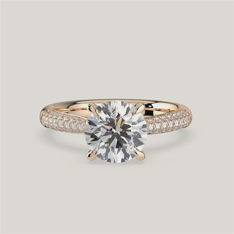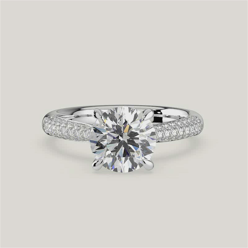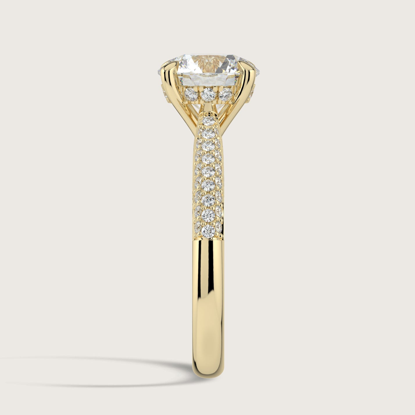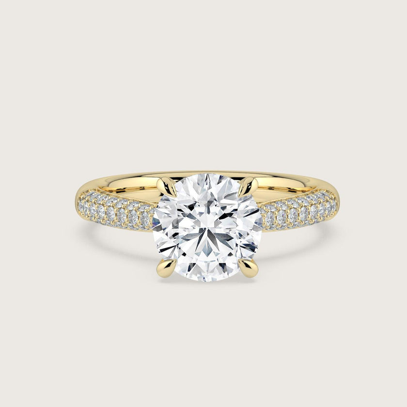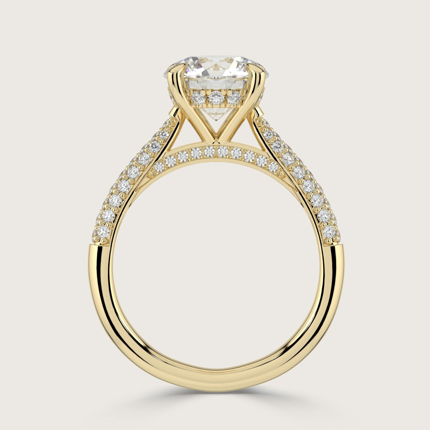 Clarisse, Round Brilliant Diamond Triple Pavé Ring with Hidden Halo