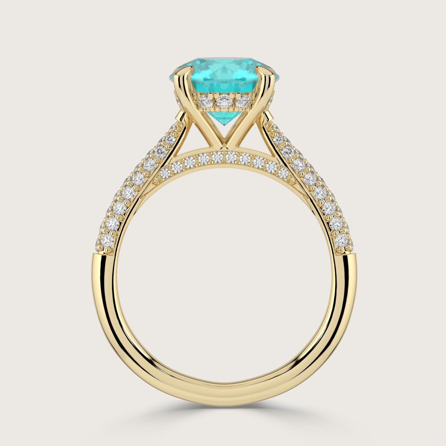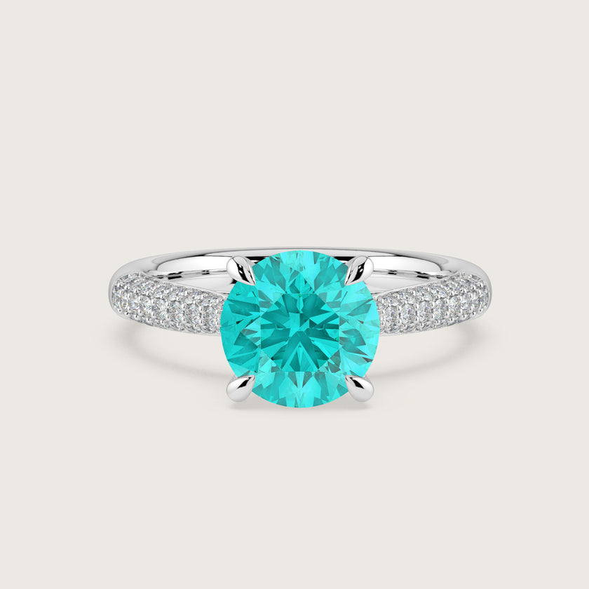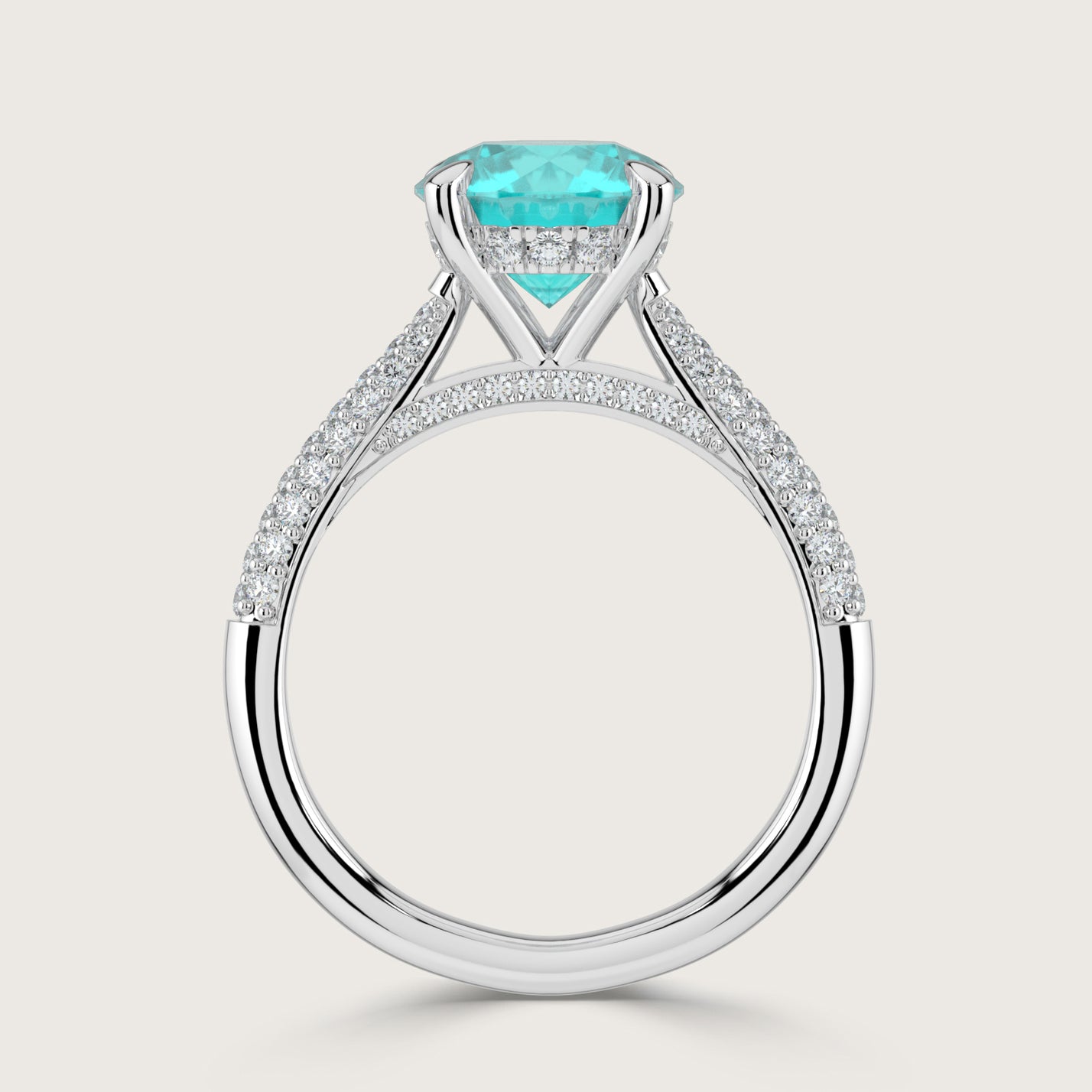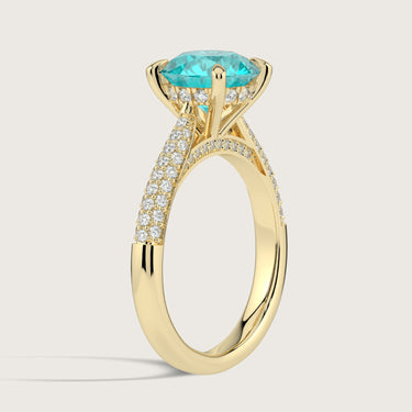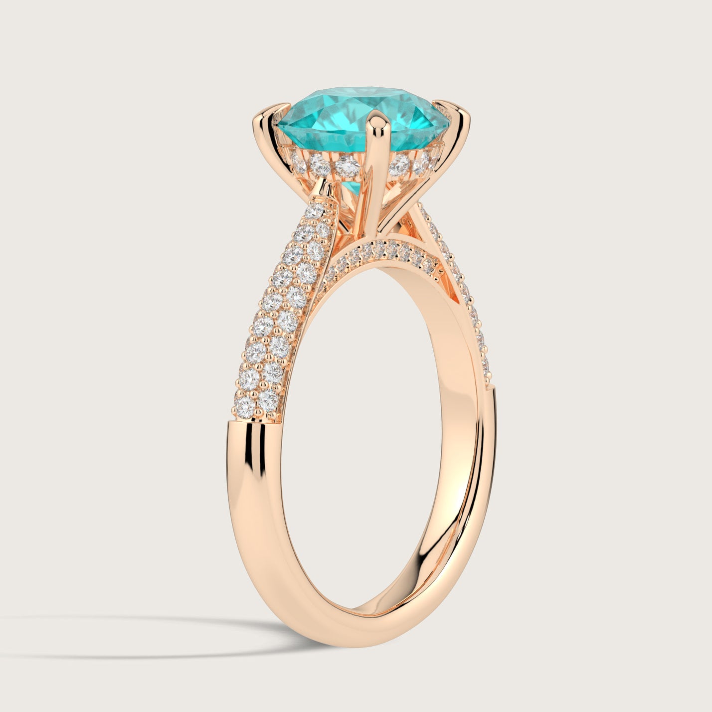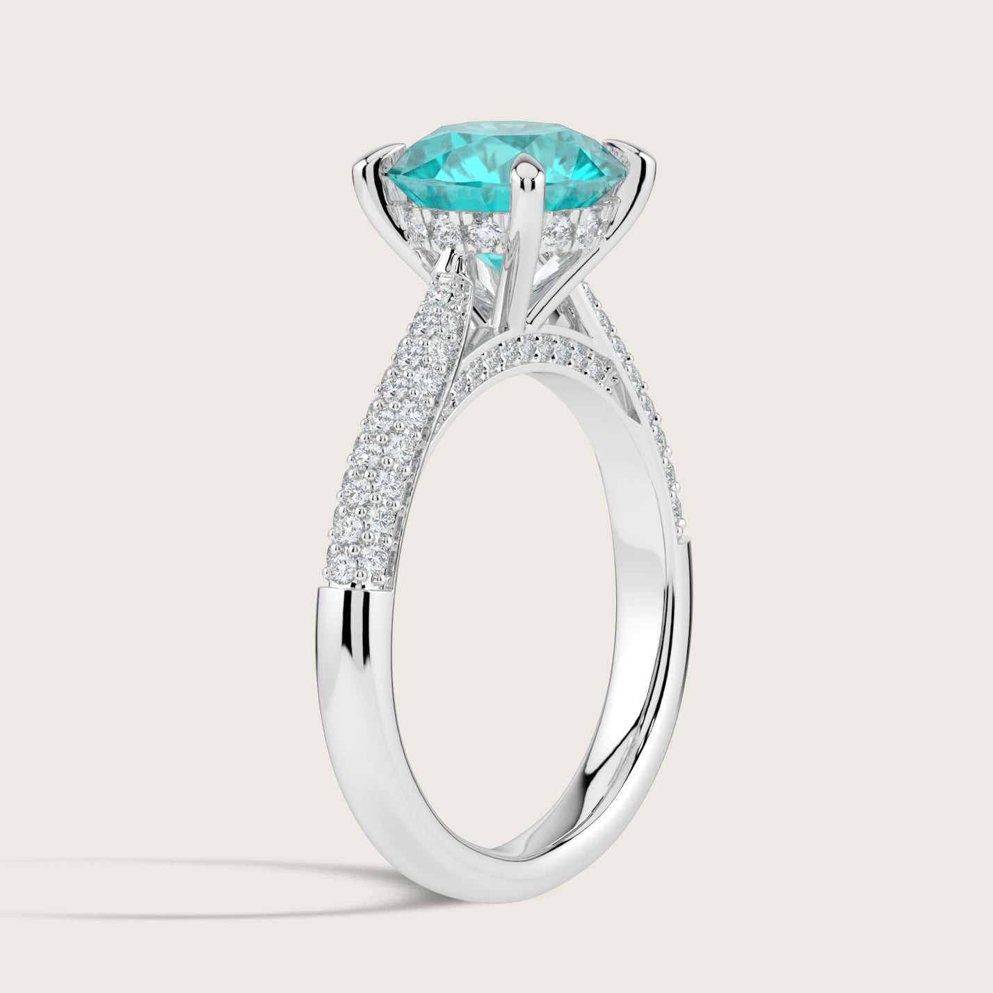 Clarisse, Round Brilliant Paraiba Triple Pavé Ring with Hidden Halo