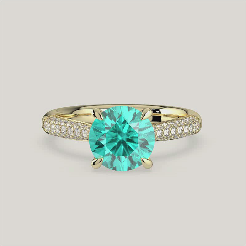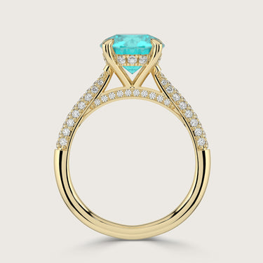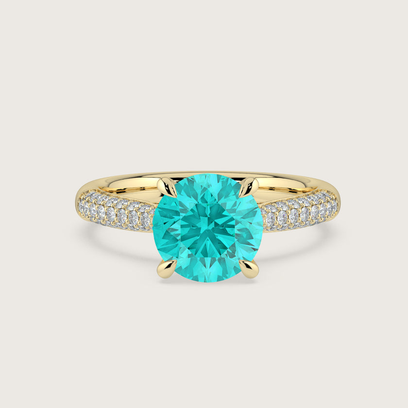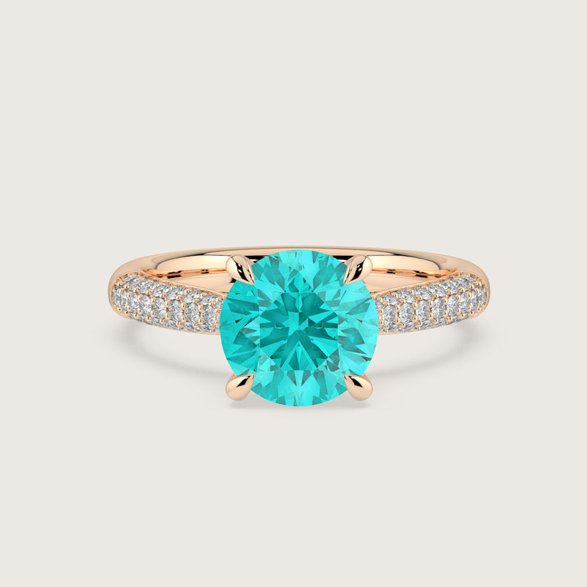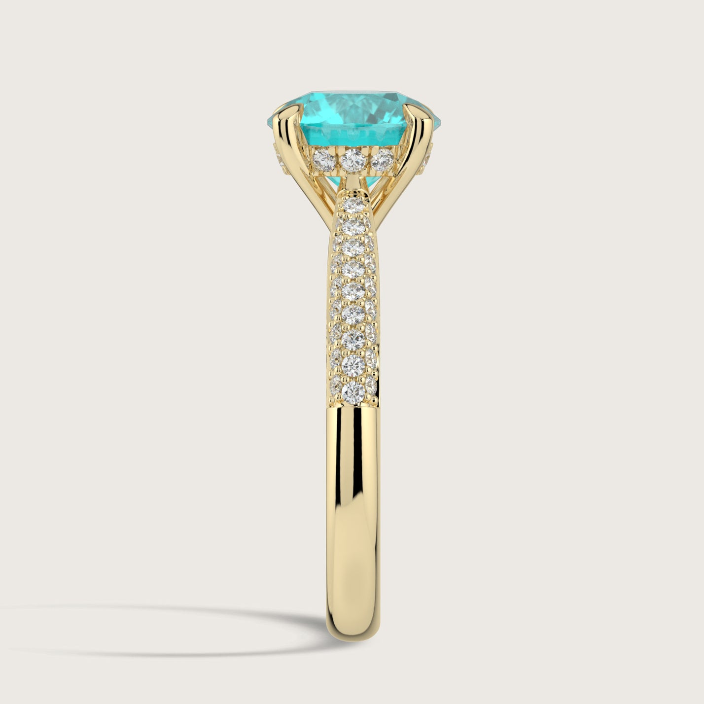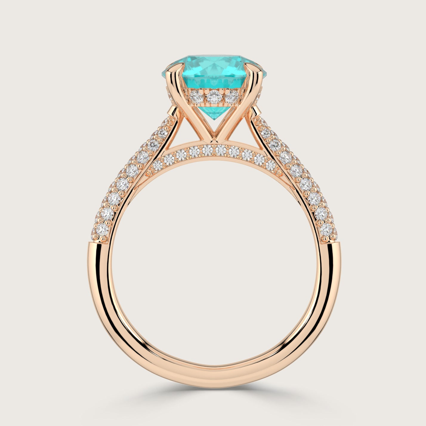 Clarisse, Round Brilliant Paraiba Triple Pavé Ring with Hidden Halo