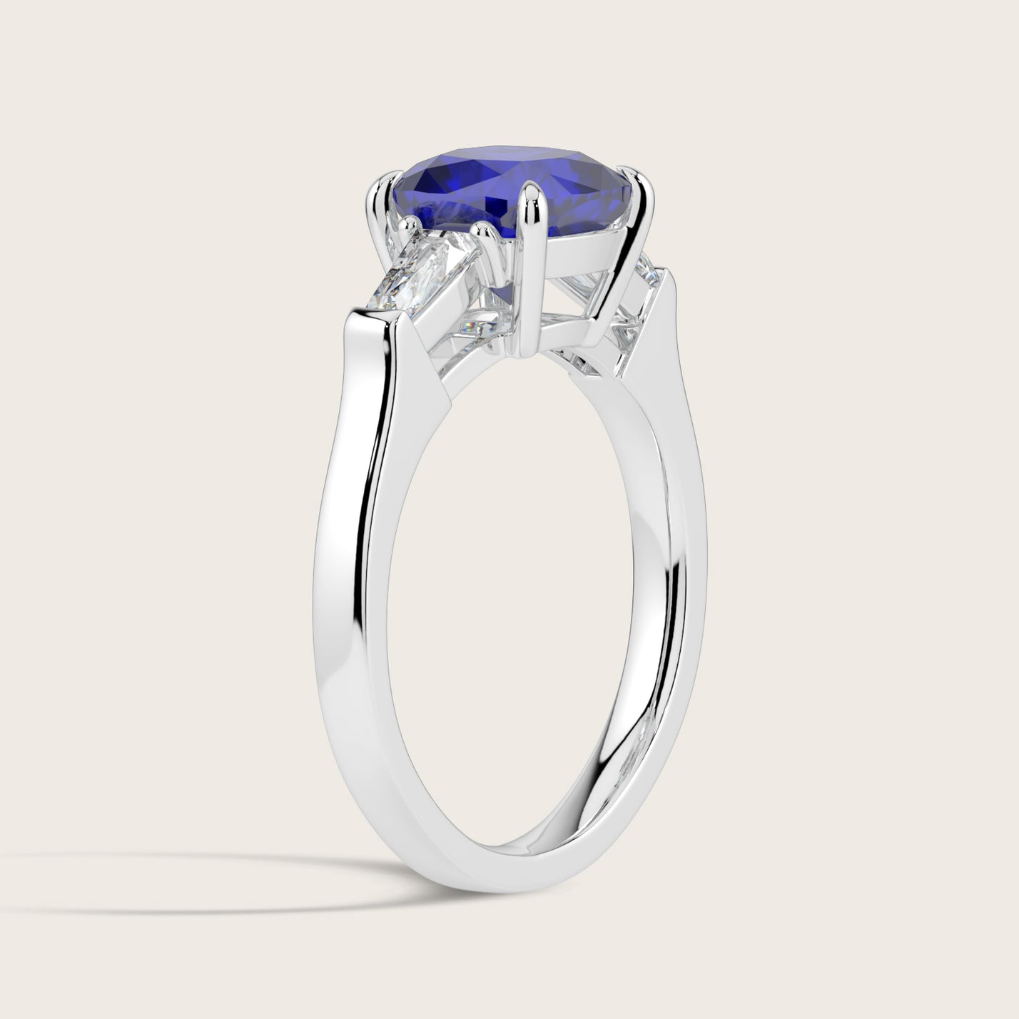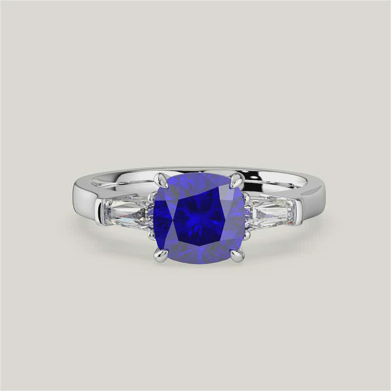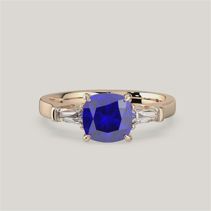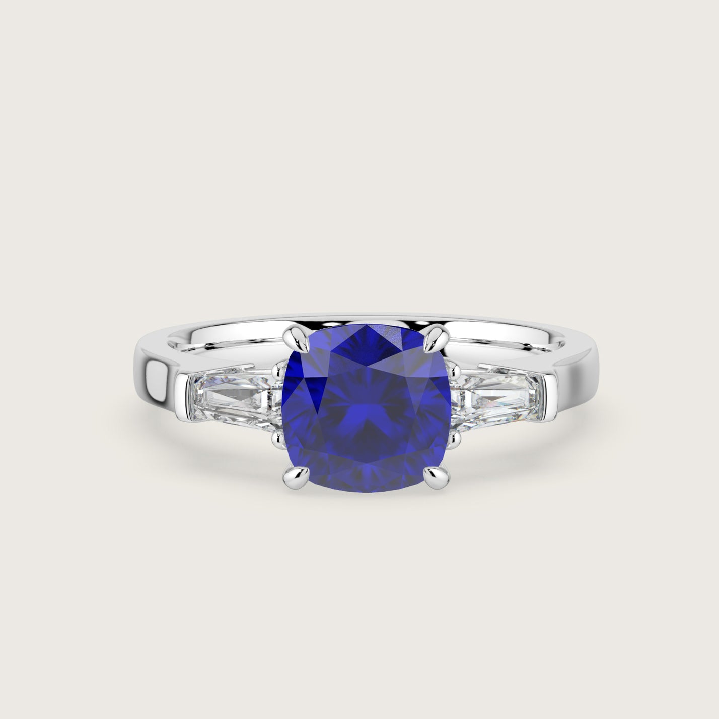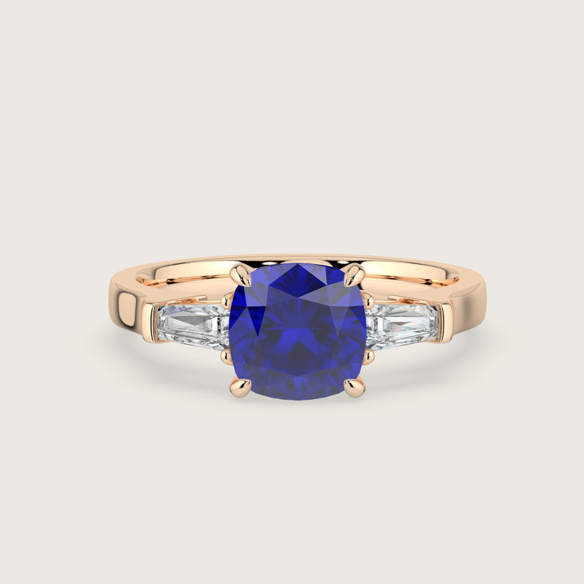 Colette, Cushion Cut Sapphire Trilogy Ring