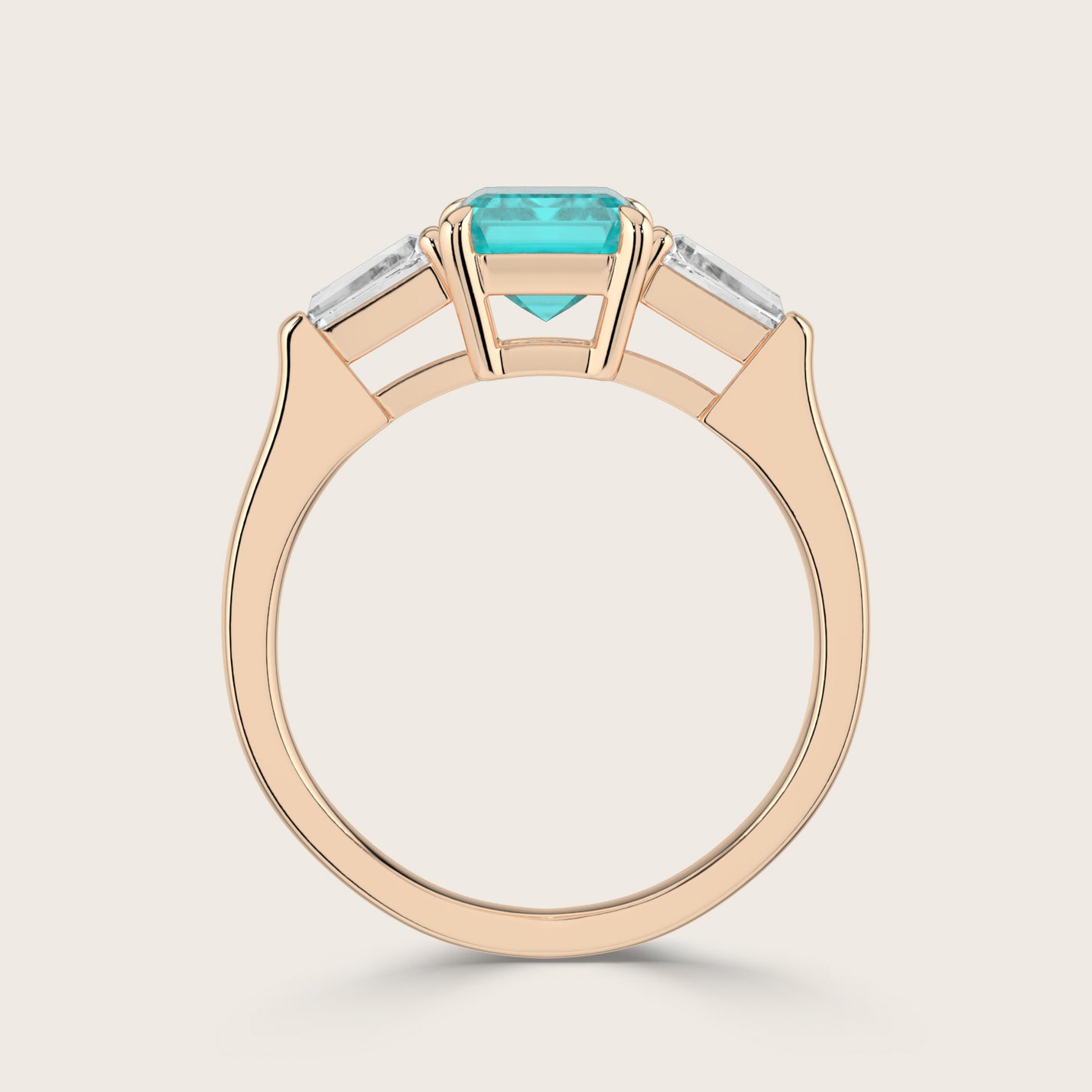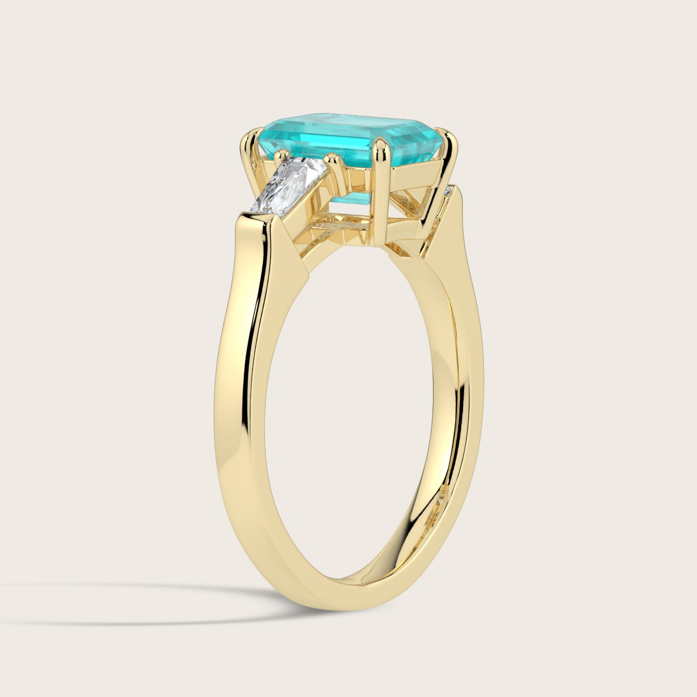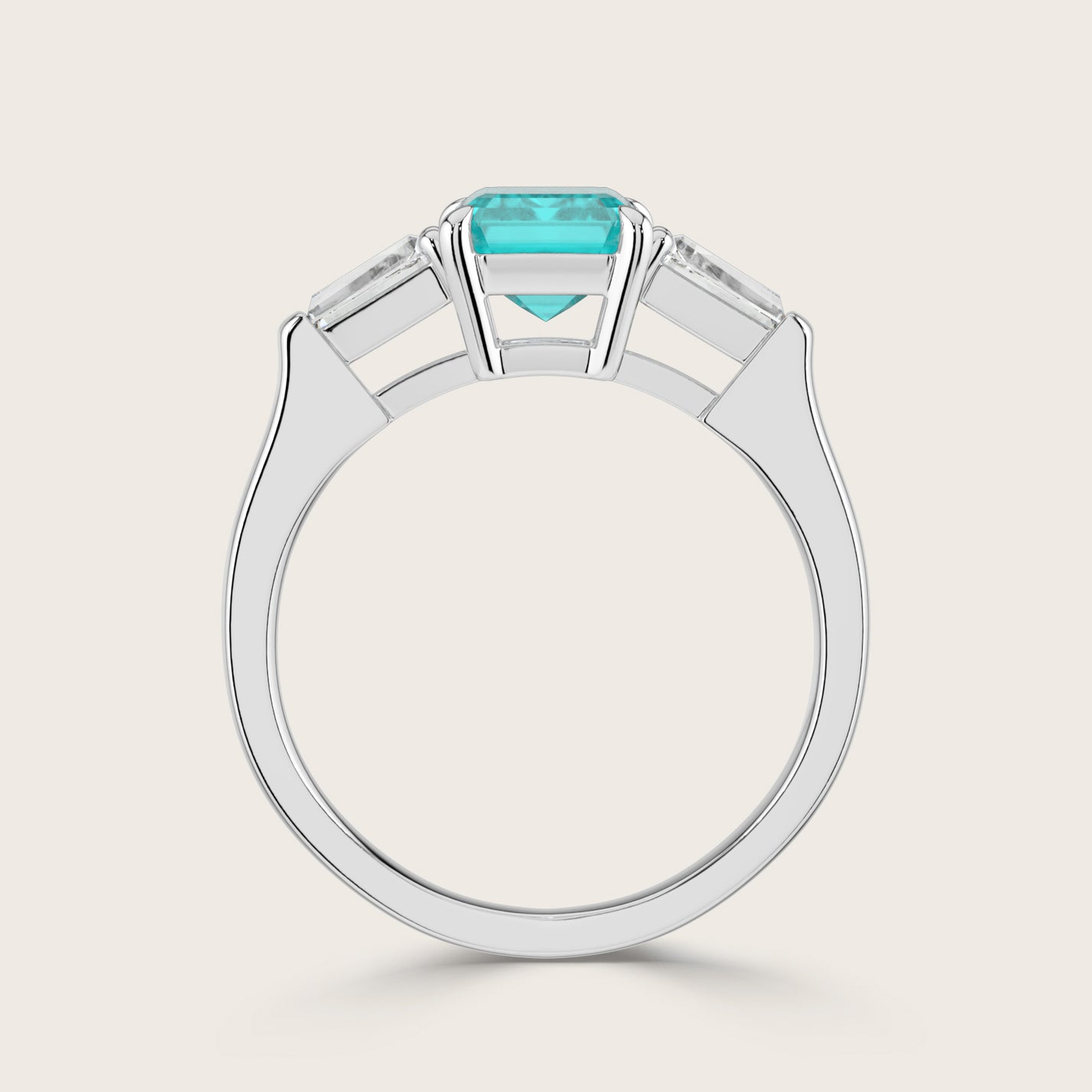 Colette, Emerald Cut Paraiba Trilogy Ring