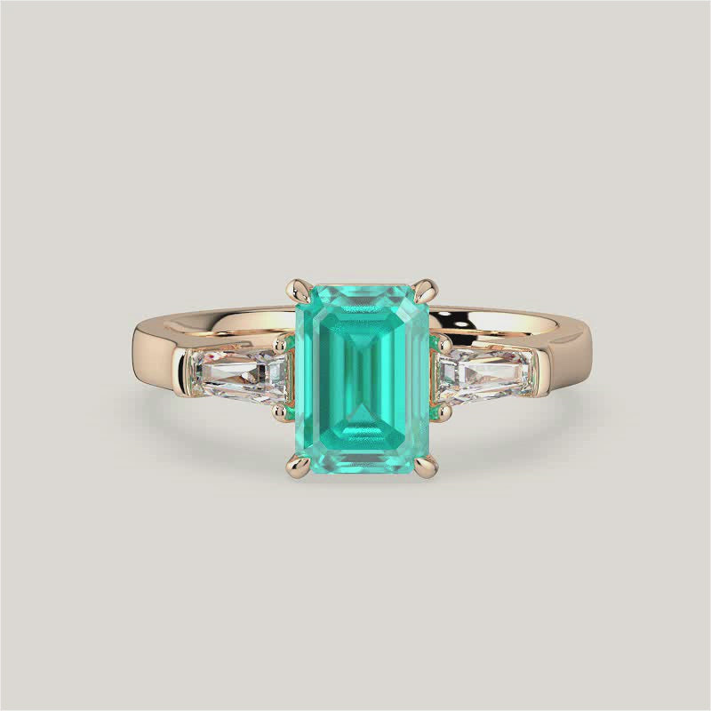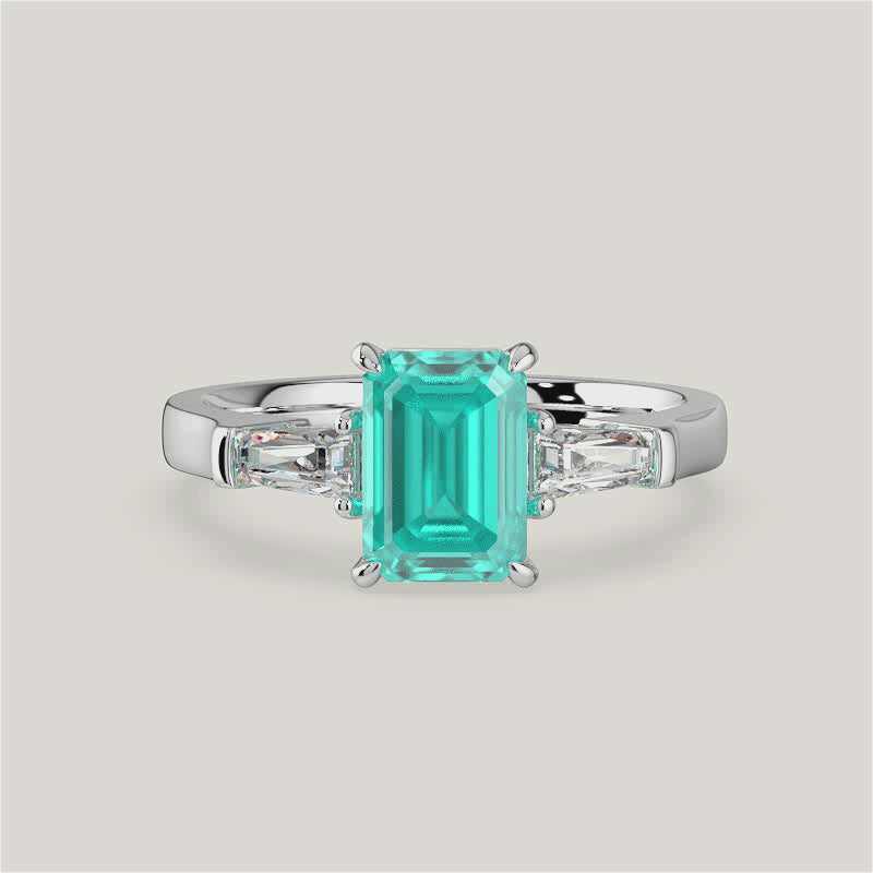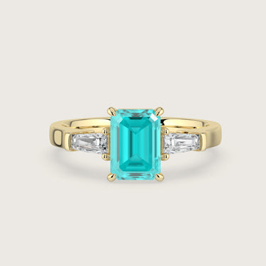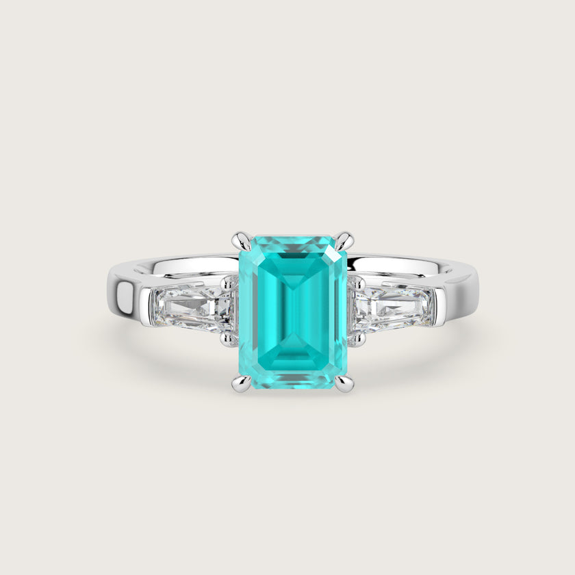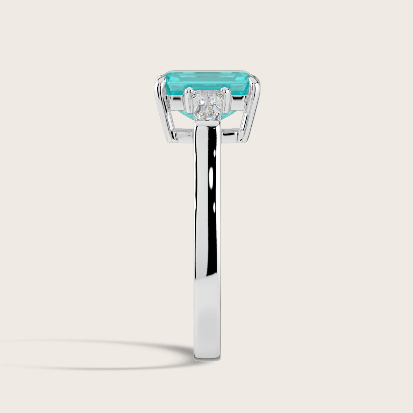 Colette, Emerald Cut Paraiba Trilogy Ring