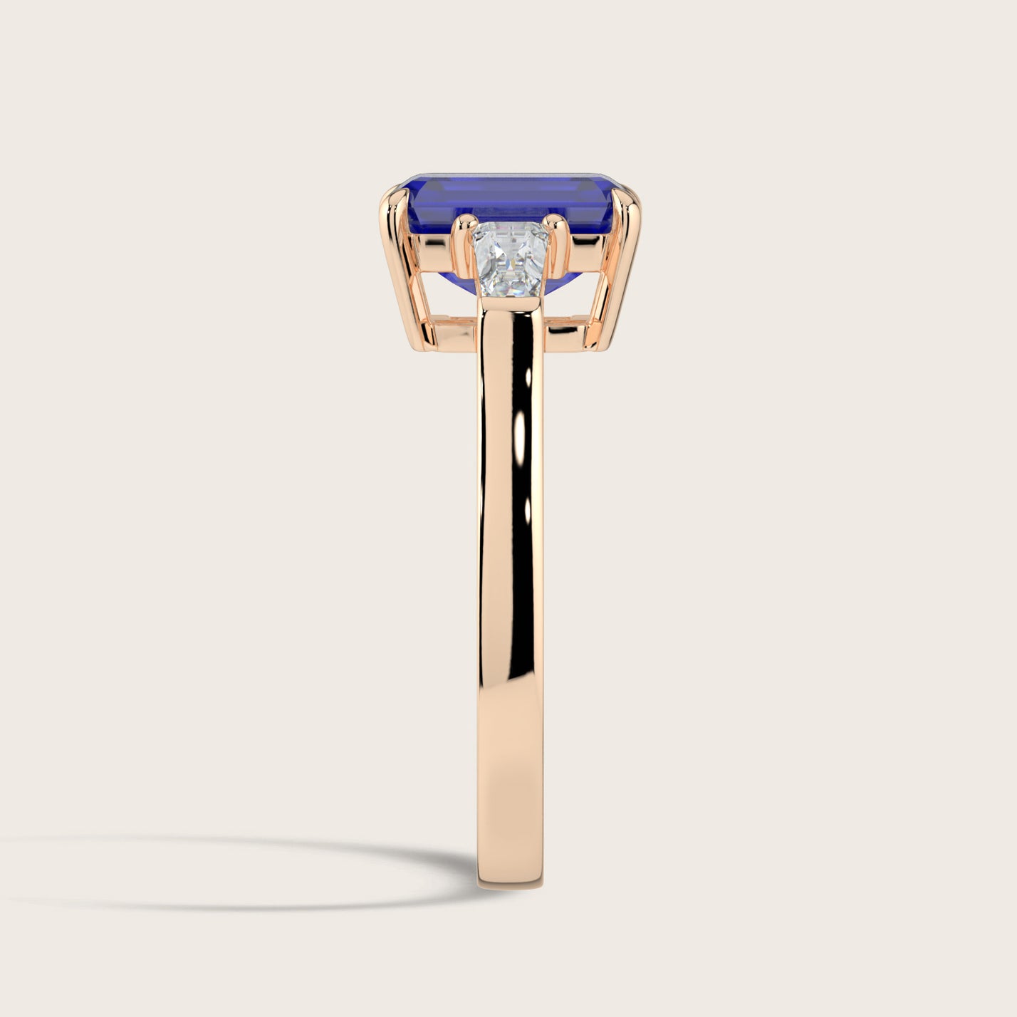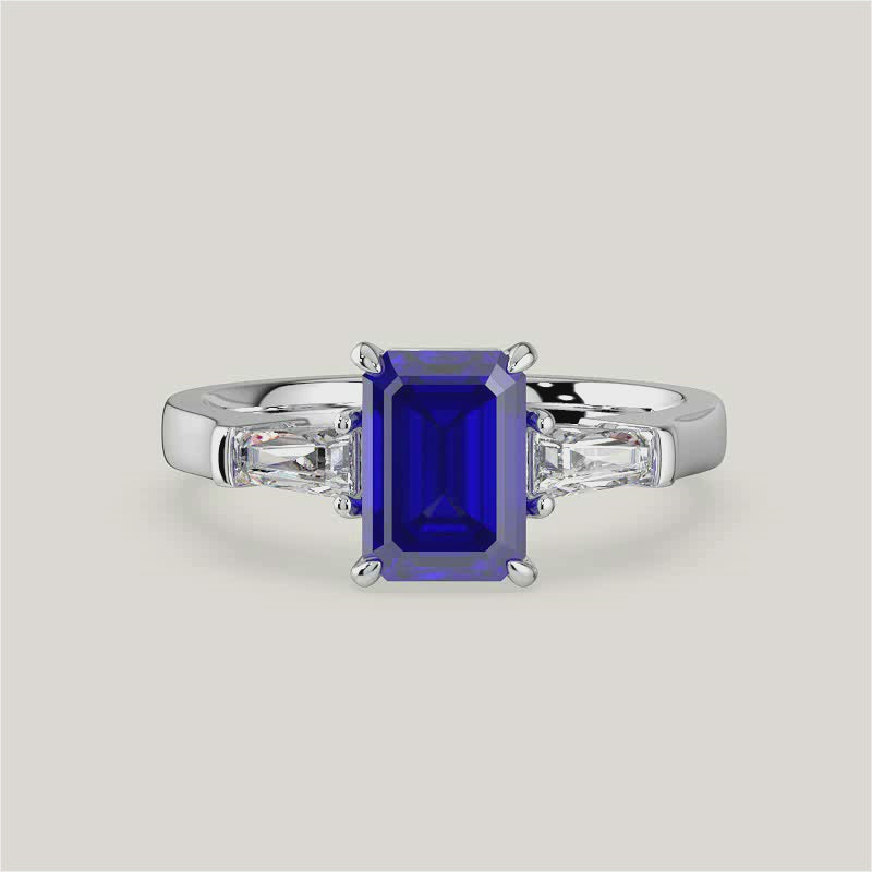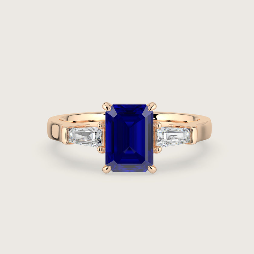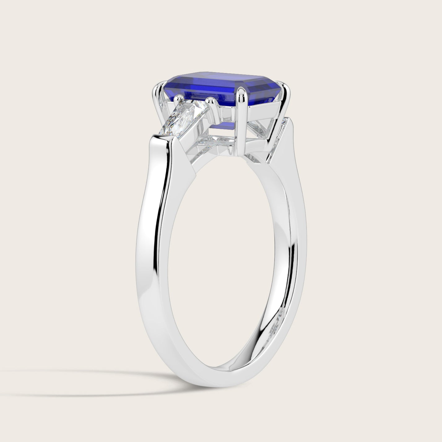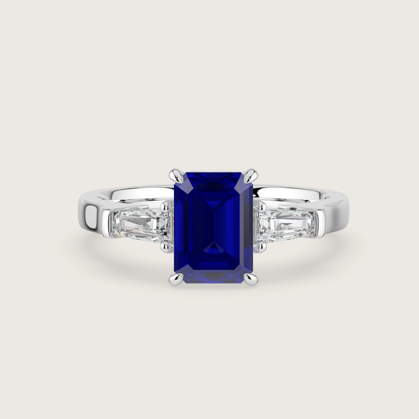 Colette, Emerald Cut Sapphire Trilogy Ring