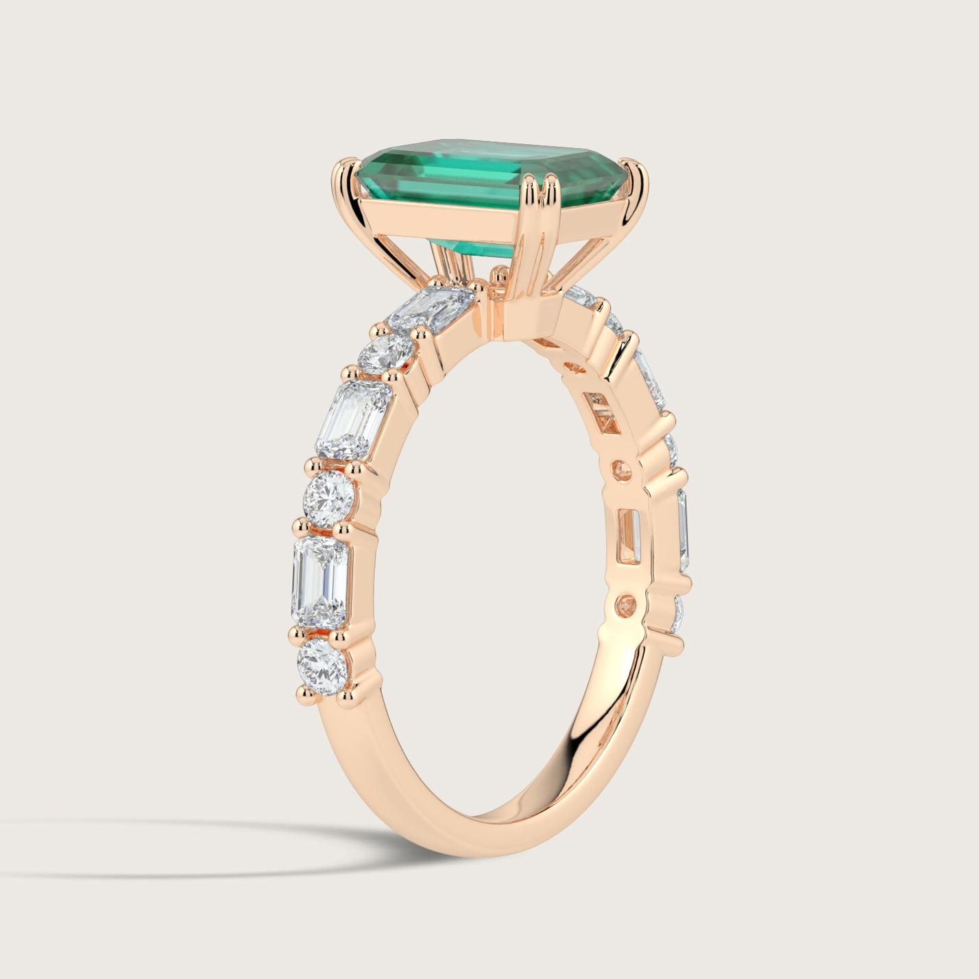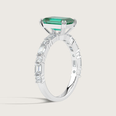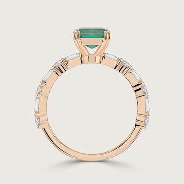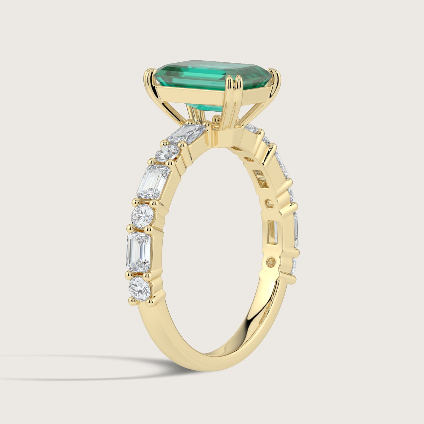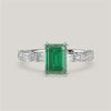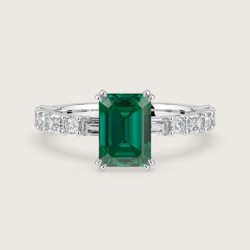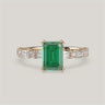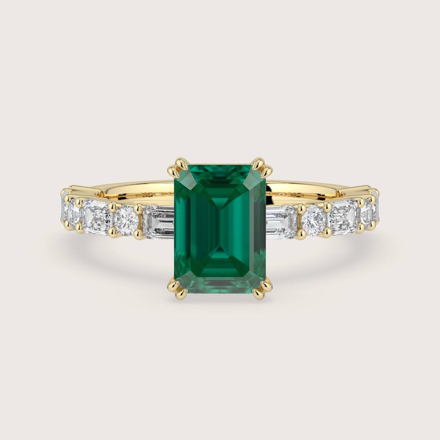 Edith, Emerald Cut Emerald Ring with Round & Baguette Pavé