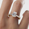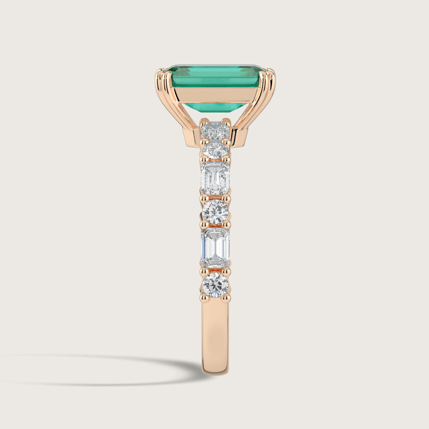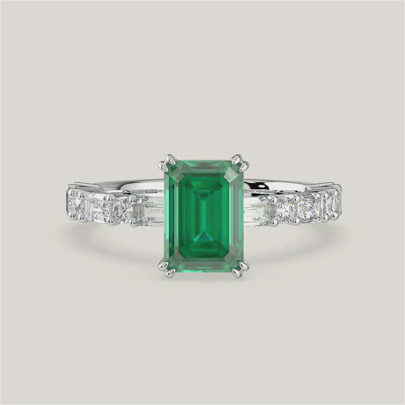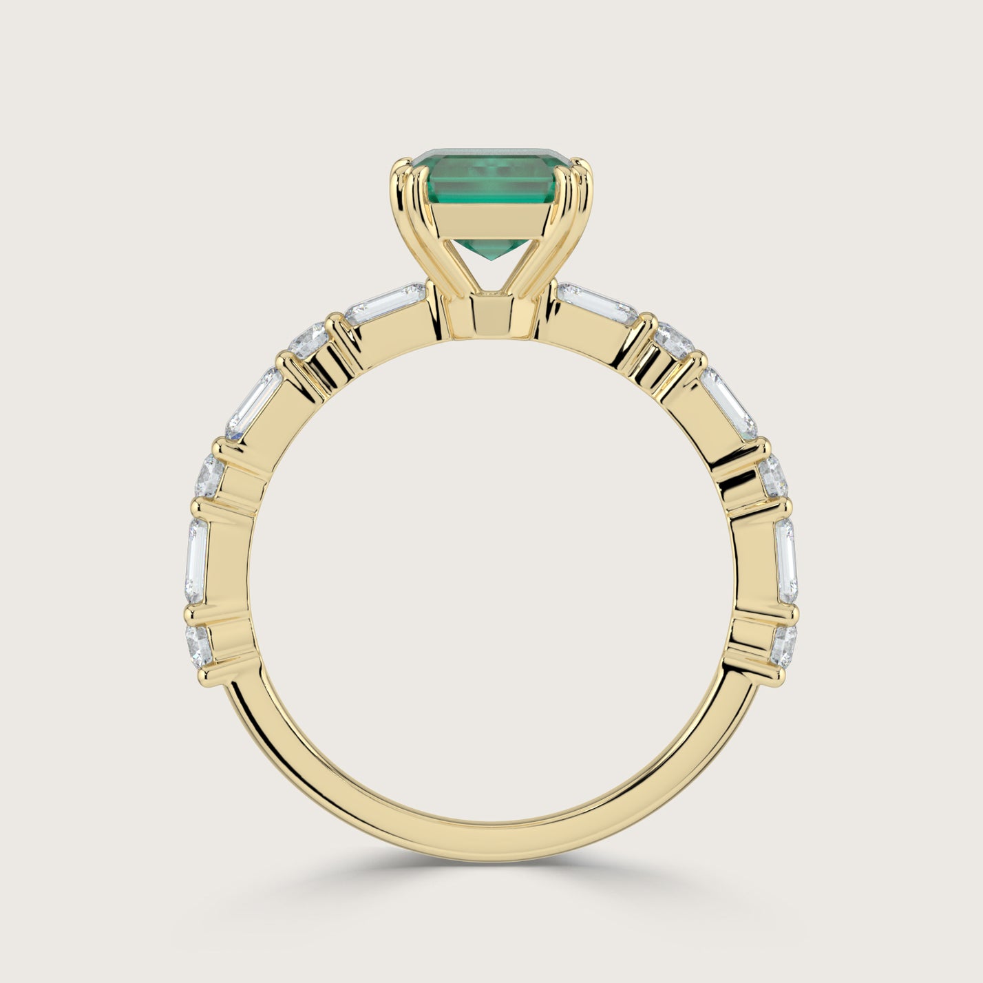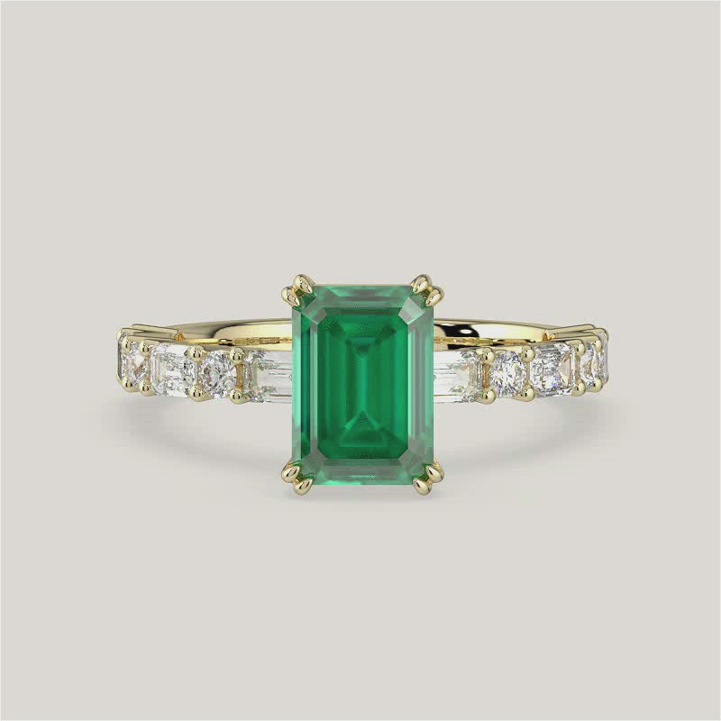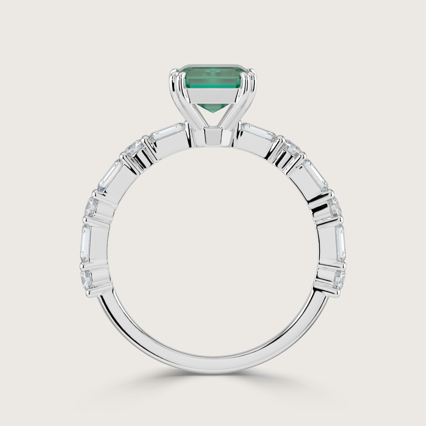 Edith, Emerald Cut Emerald Ring with Round & Baguette Pavé