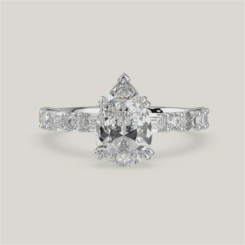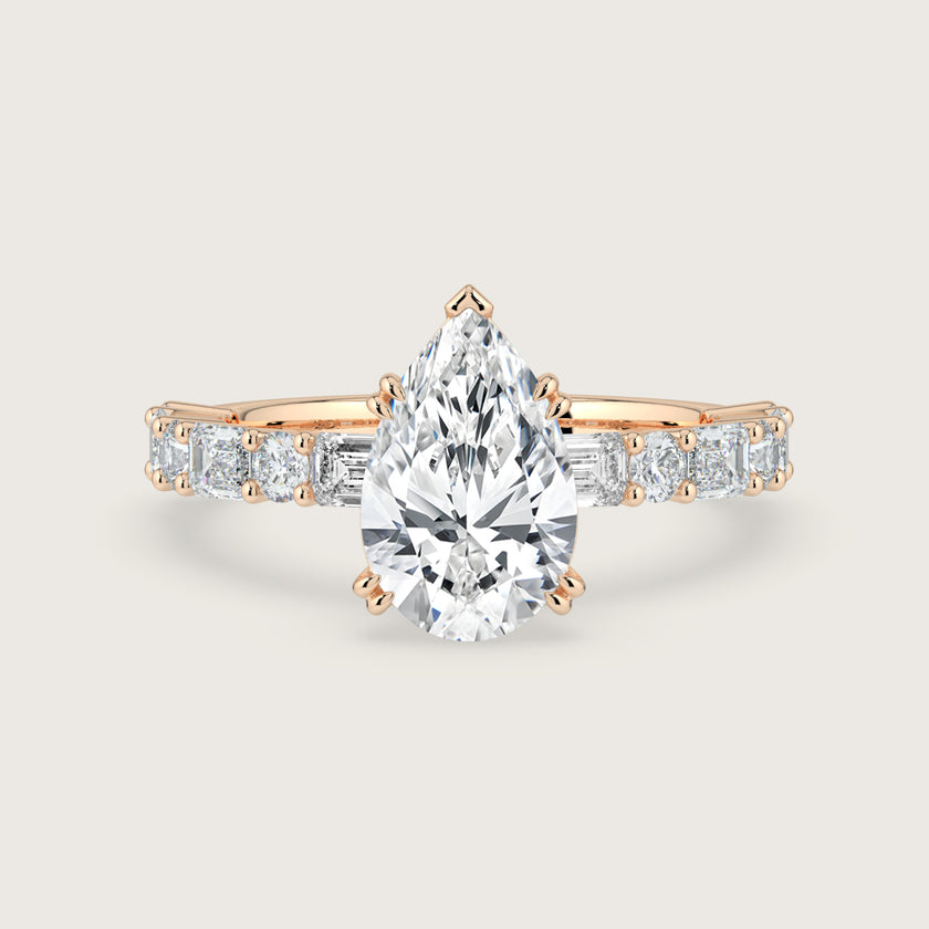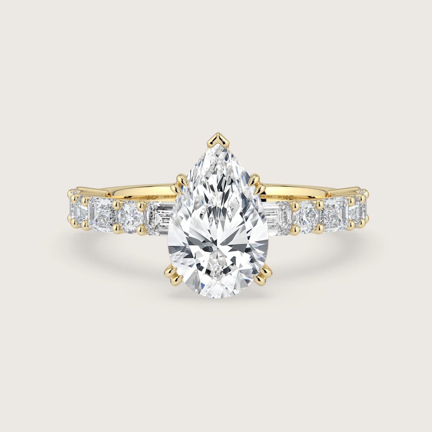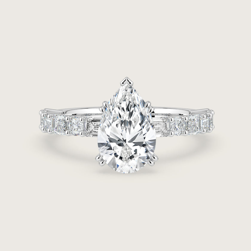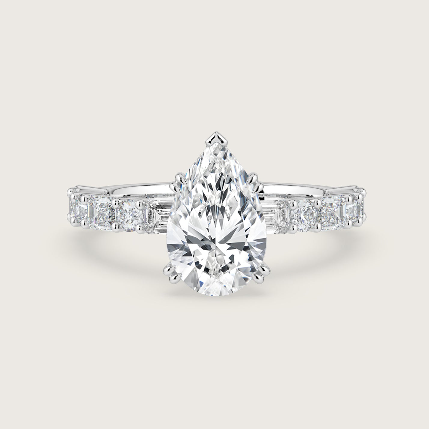 Edith, Pear Cut Diamond Ring with Round & Baguette Pavé