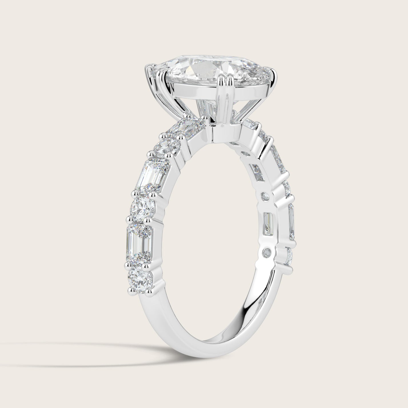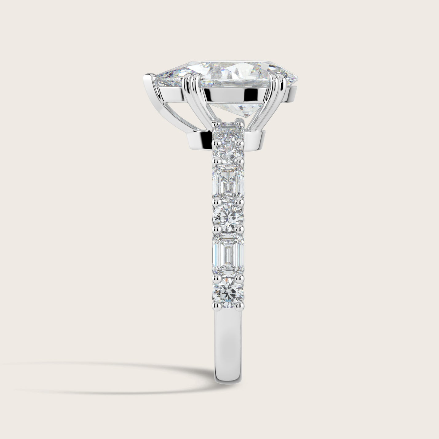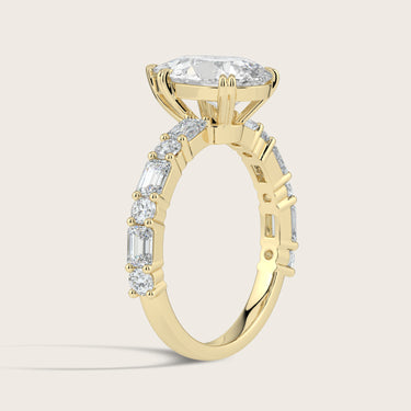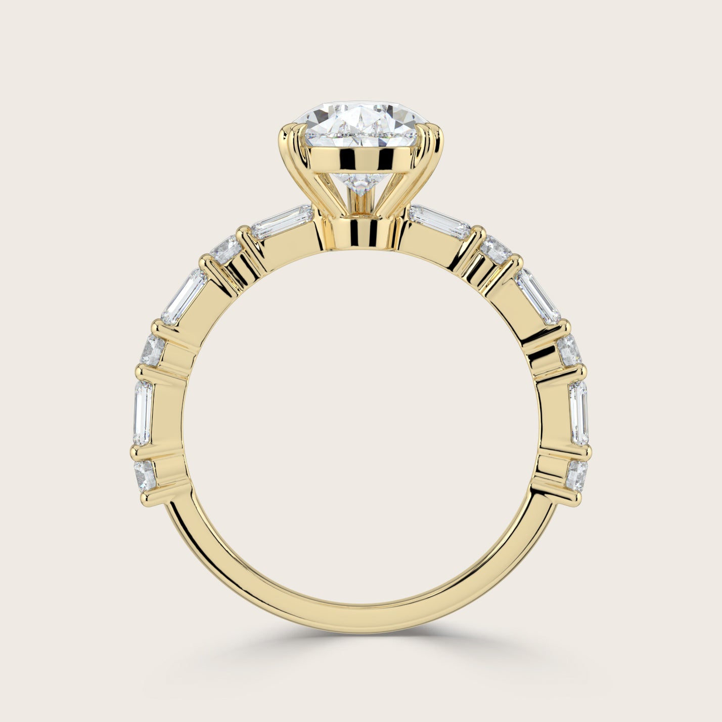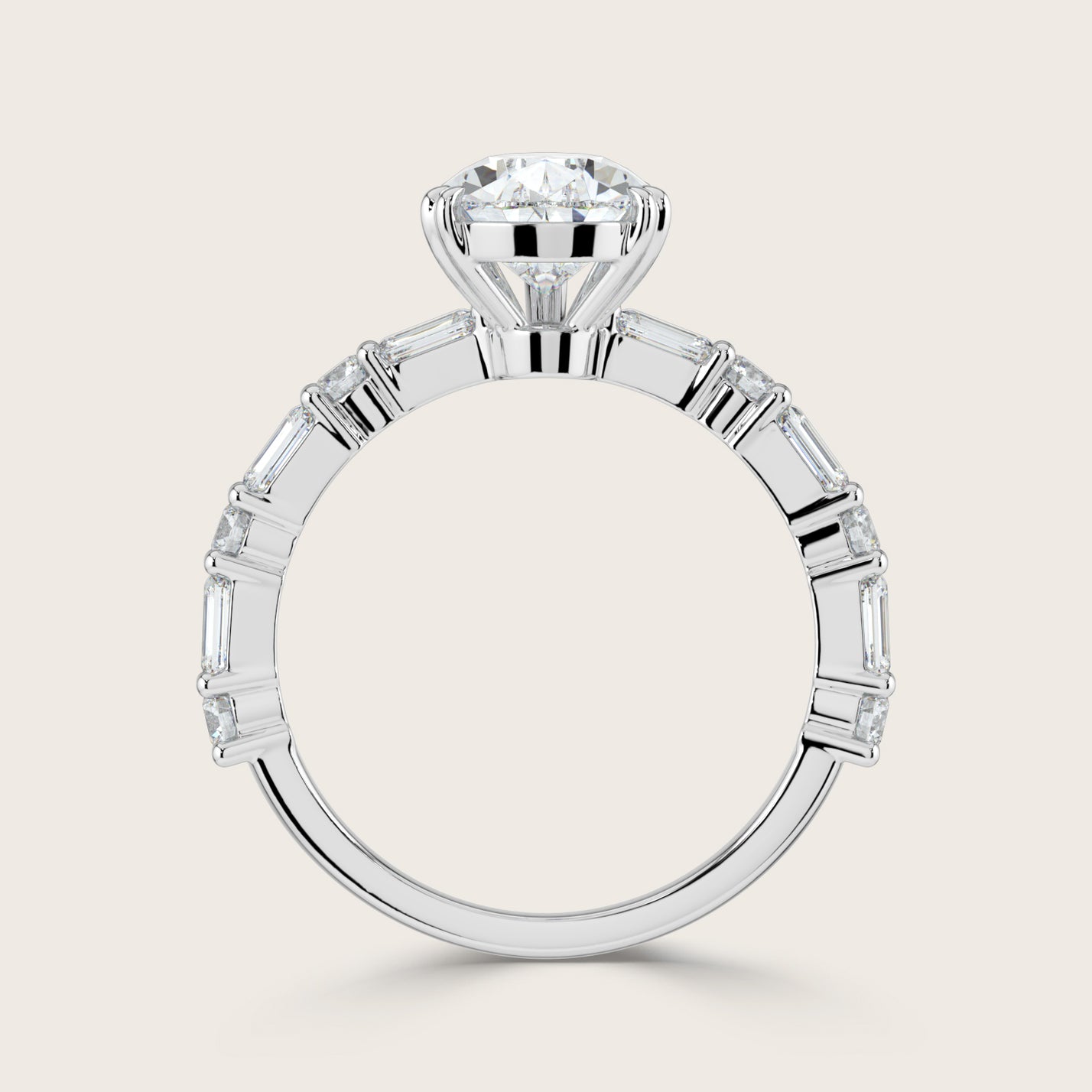 Edith, Pear Cut Diamond Ring with Round & Baguette Pavé