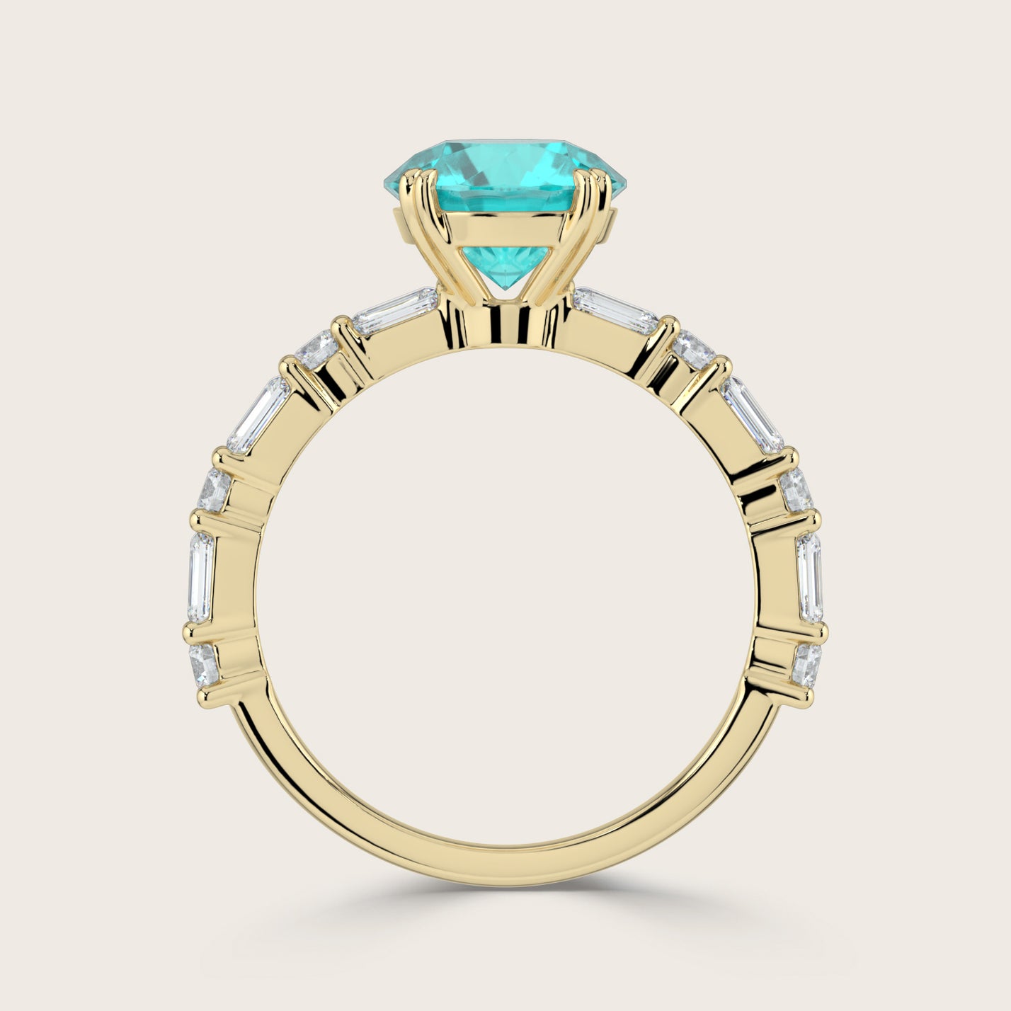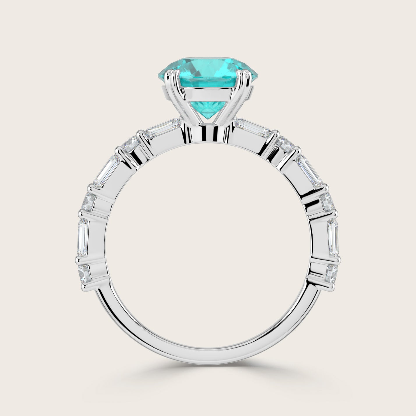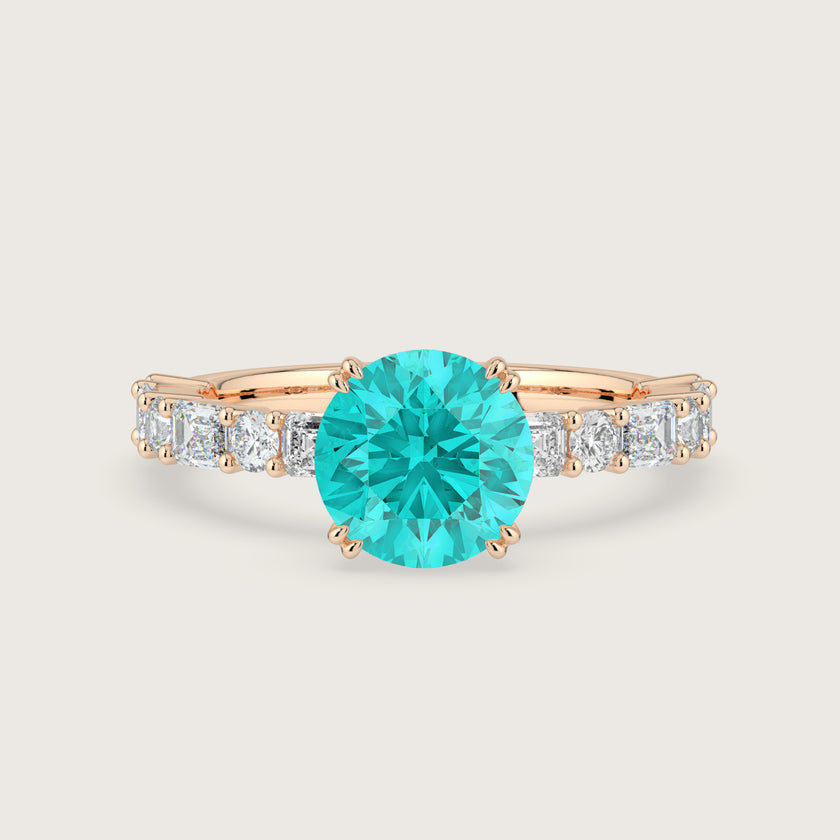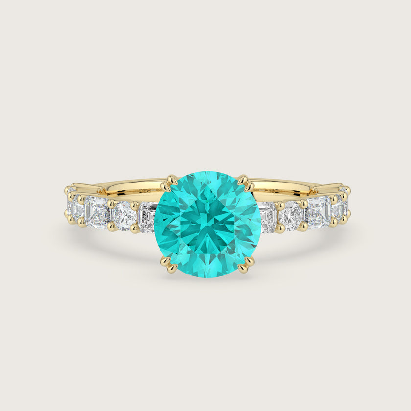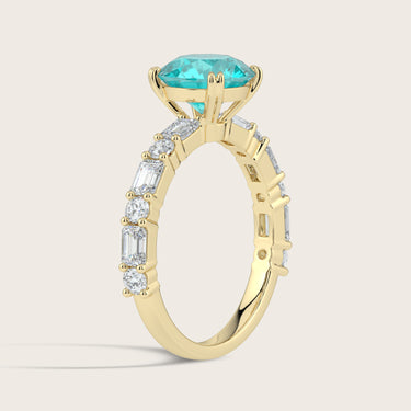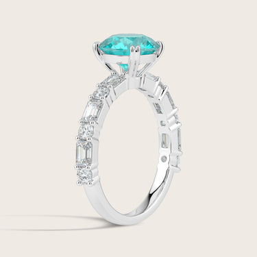 Edith, Round Brilliant Paraiba Ring with Round & Baguette Pavé