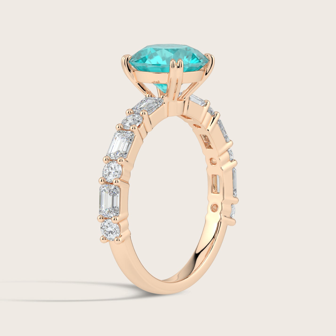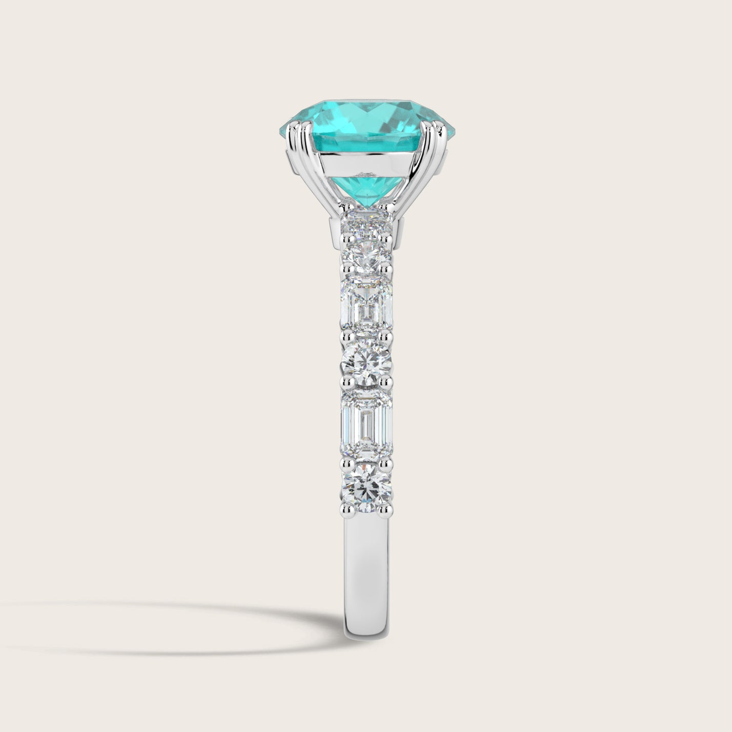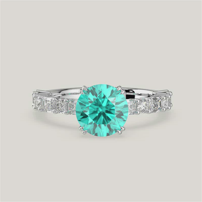 Edith, Round Brilliant Paraiba Ring with Round & Baguette Pavé