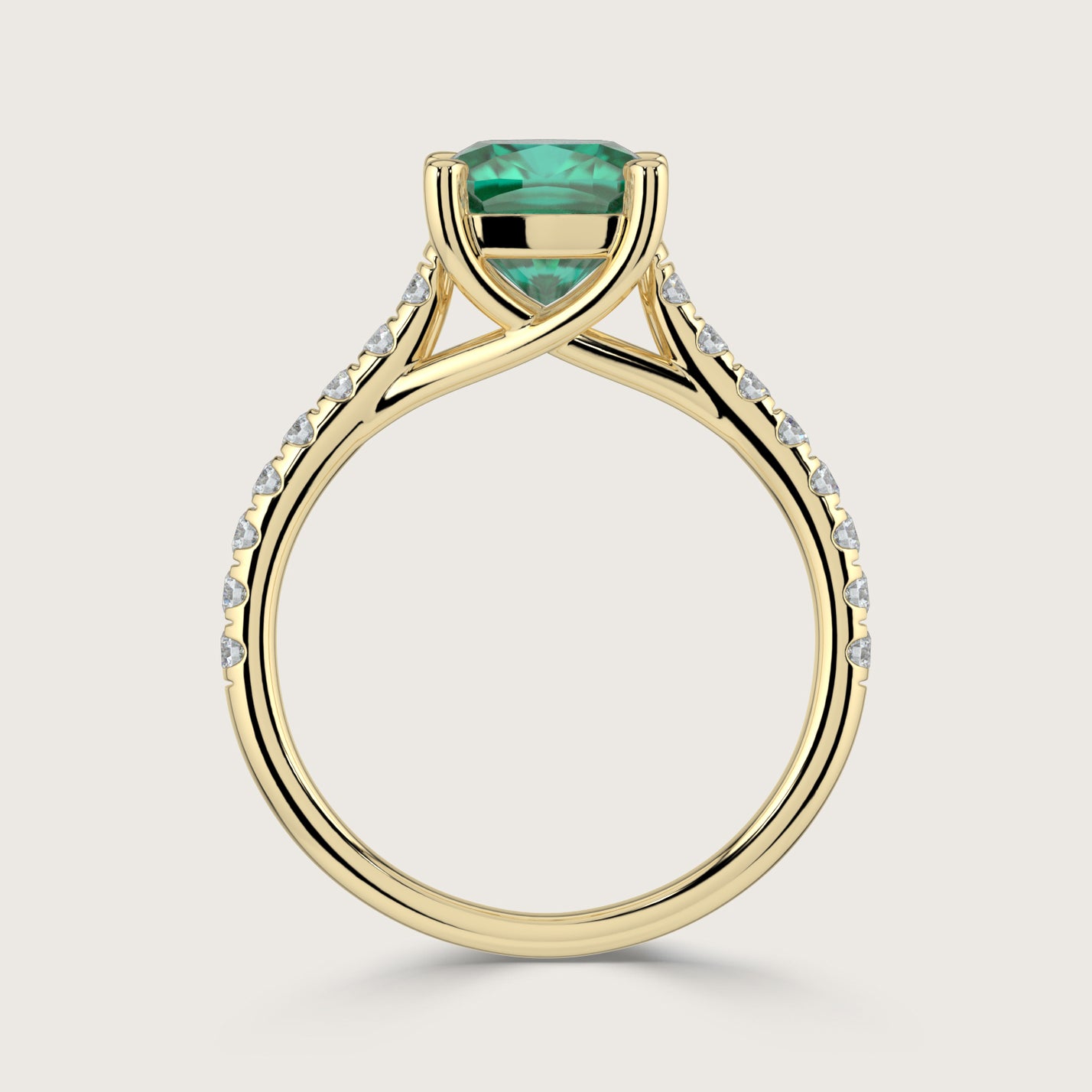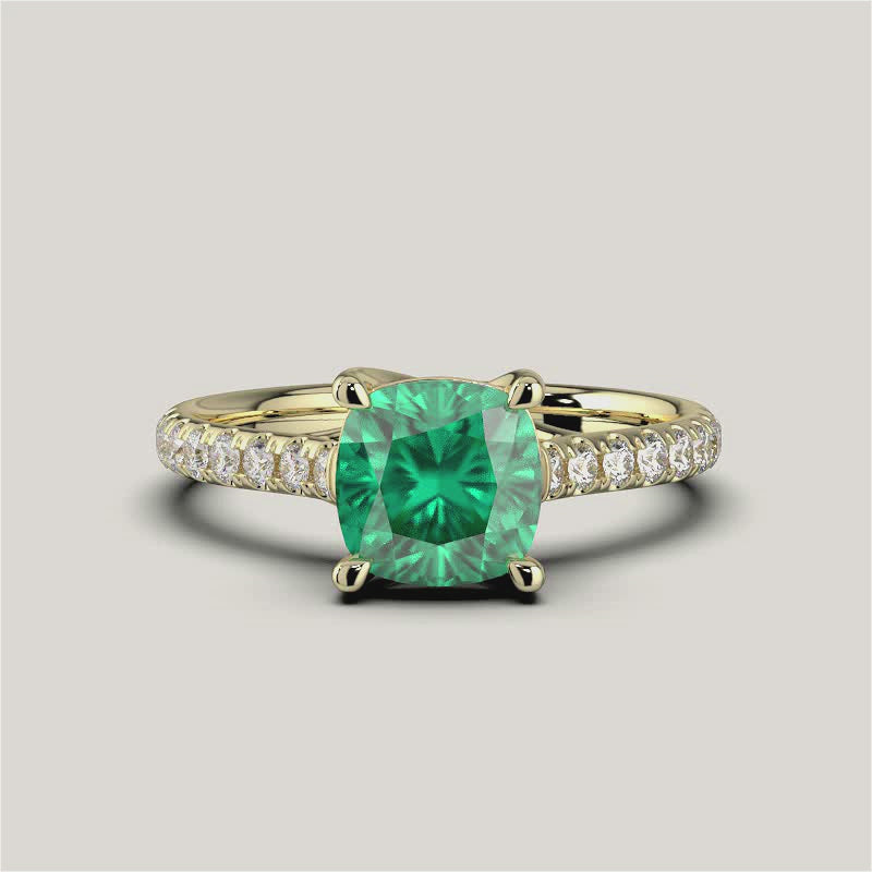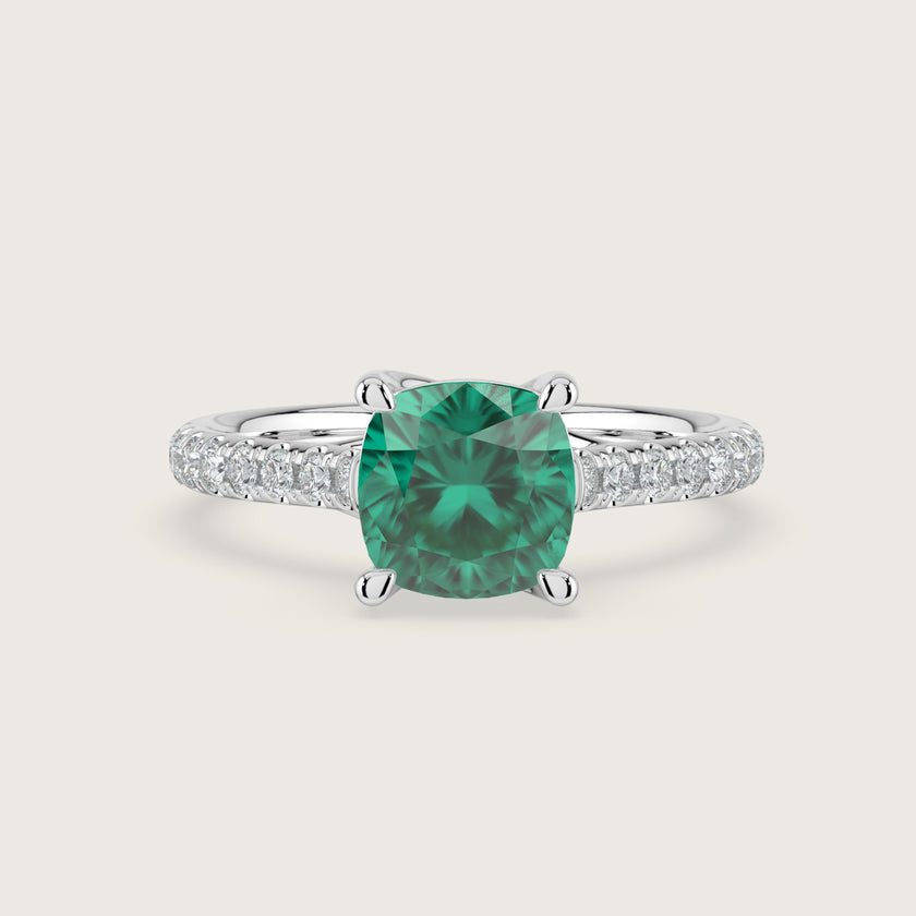 Elizabeth, Cushion Cut Emerald Pavé Ring