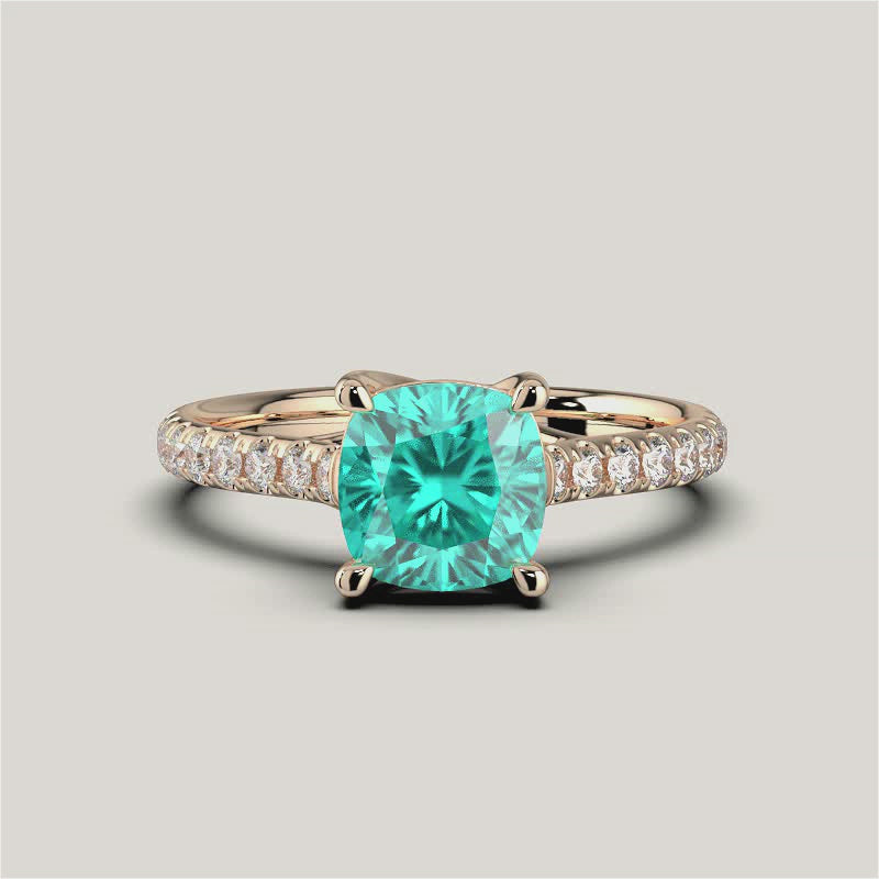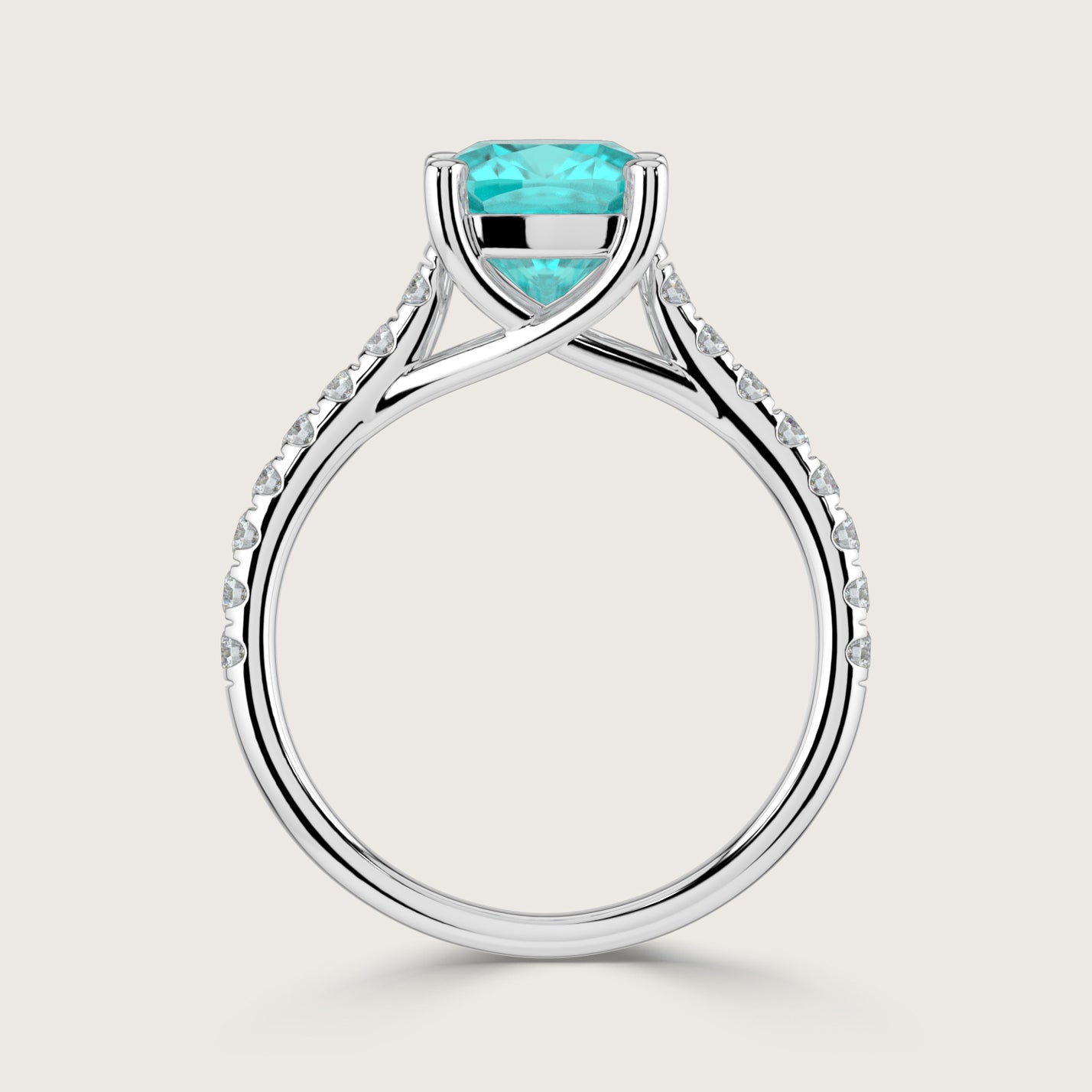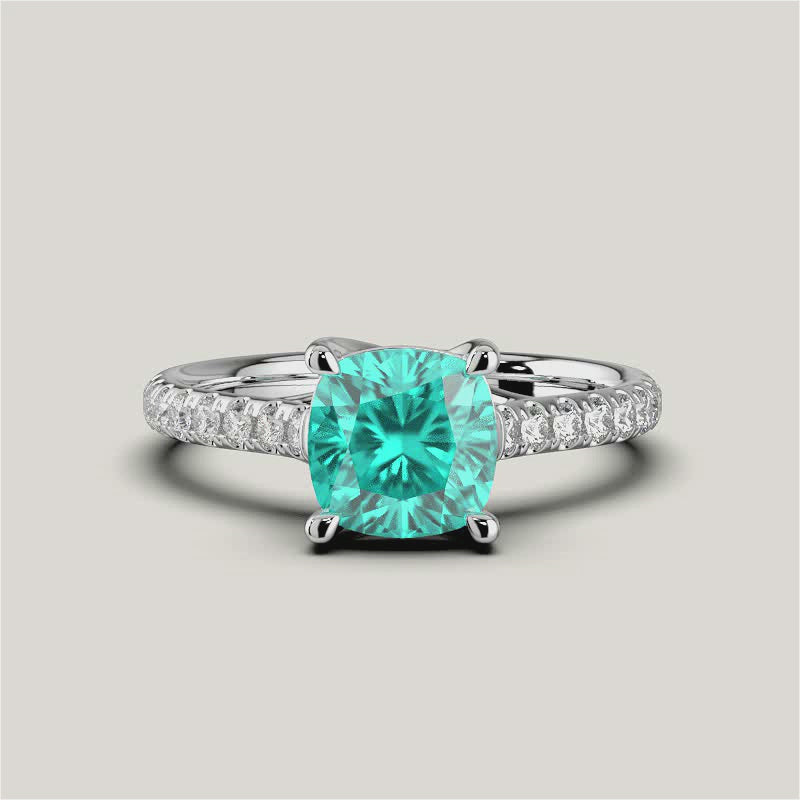 Elizabeth, Cushion Cut Paraiba Pavé Ring